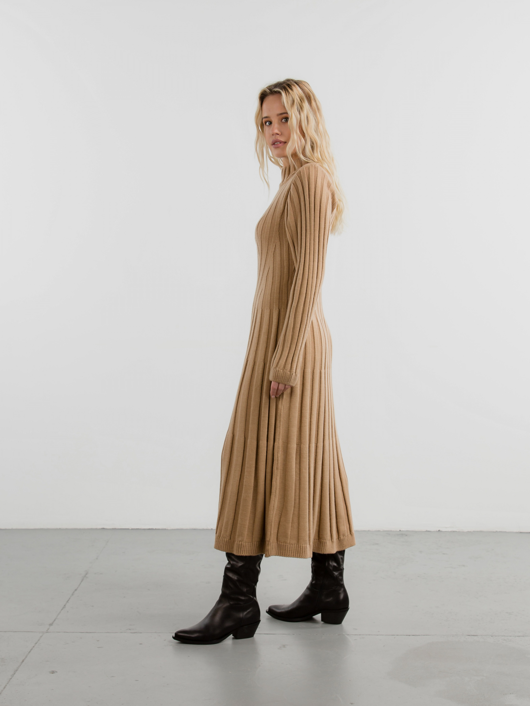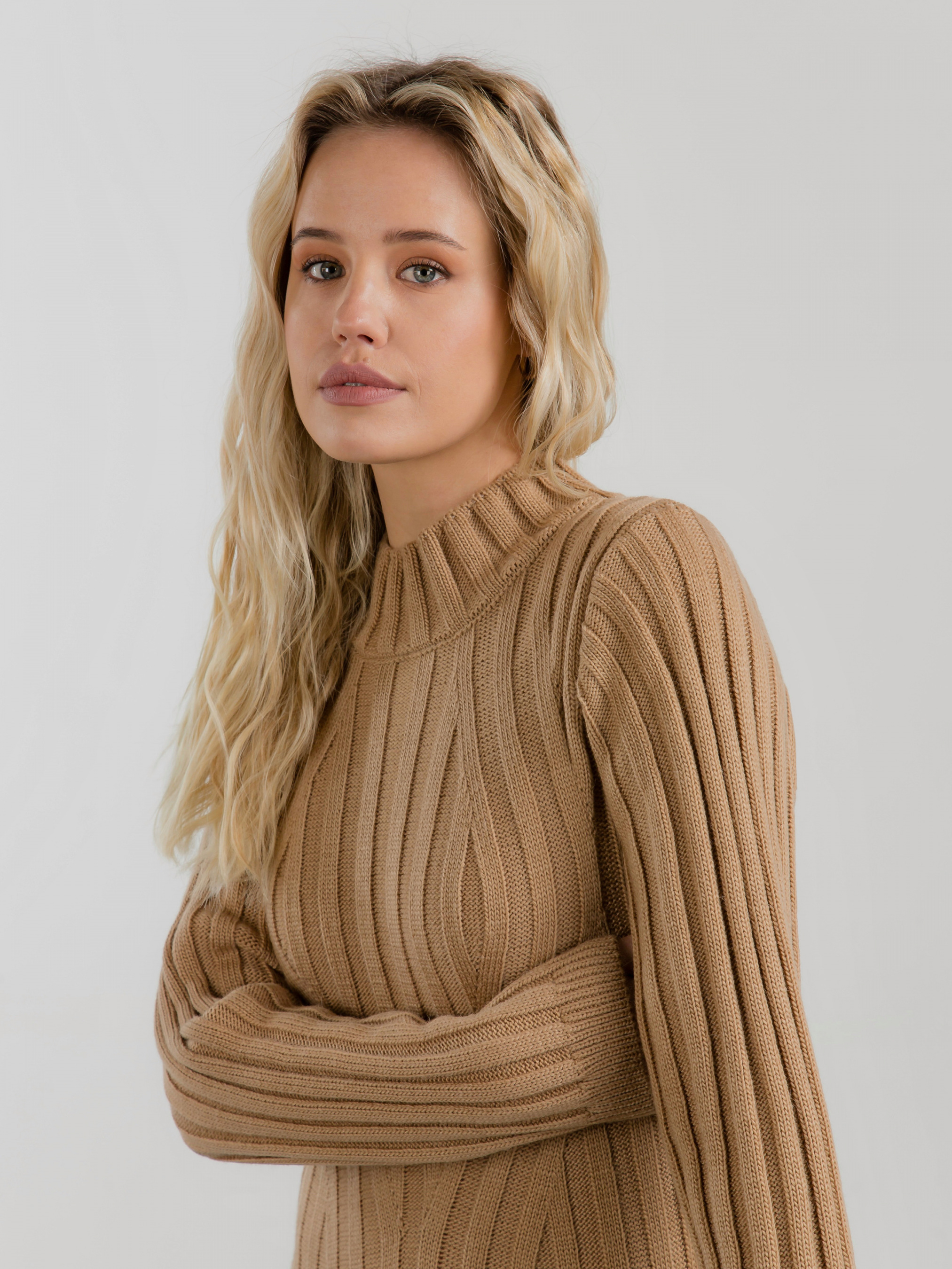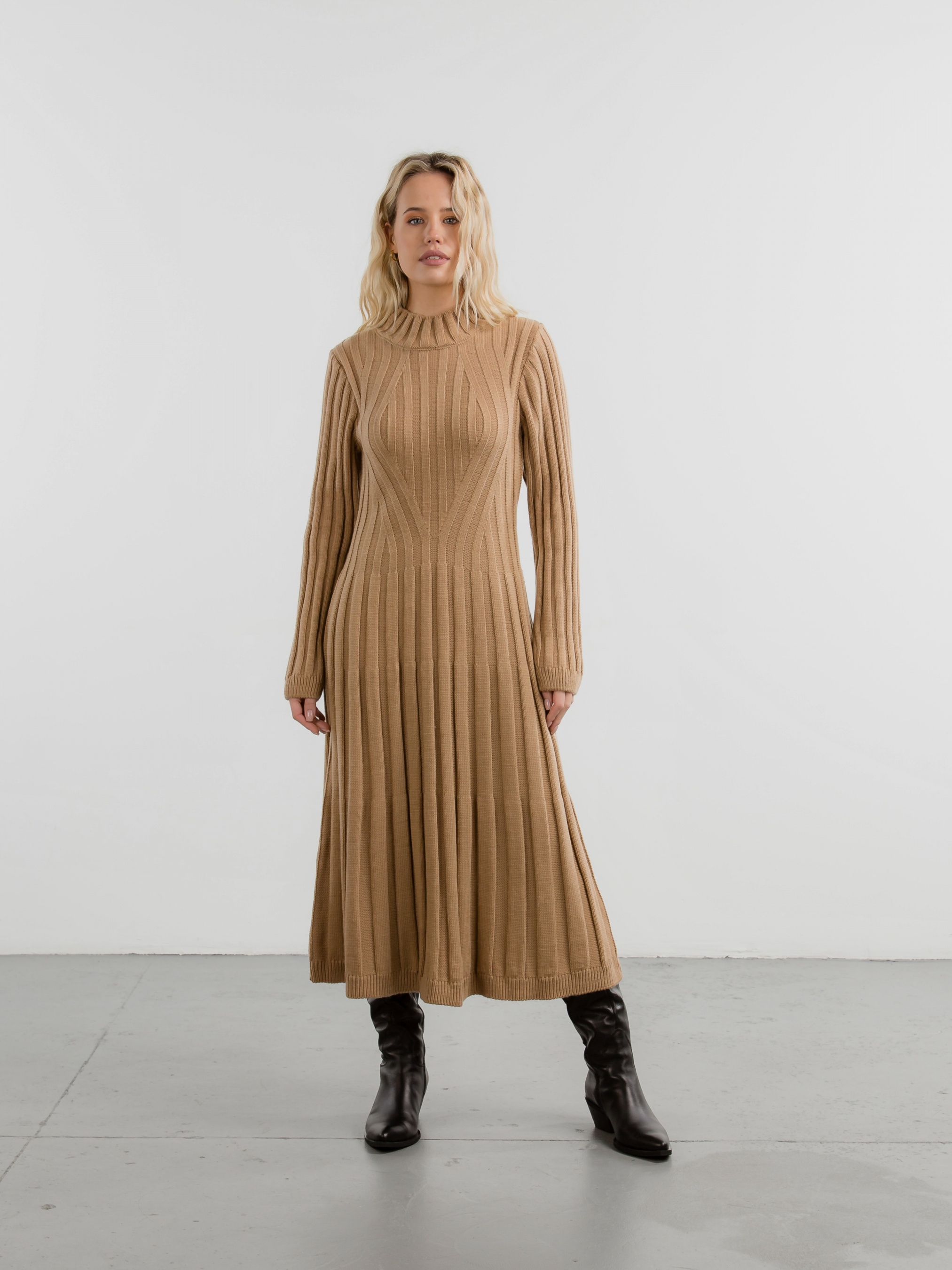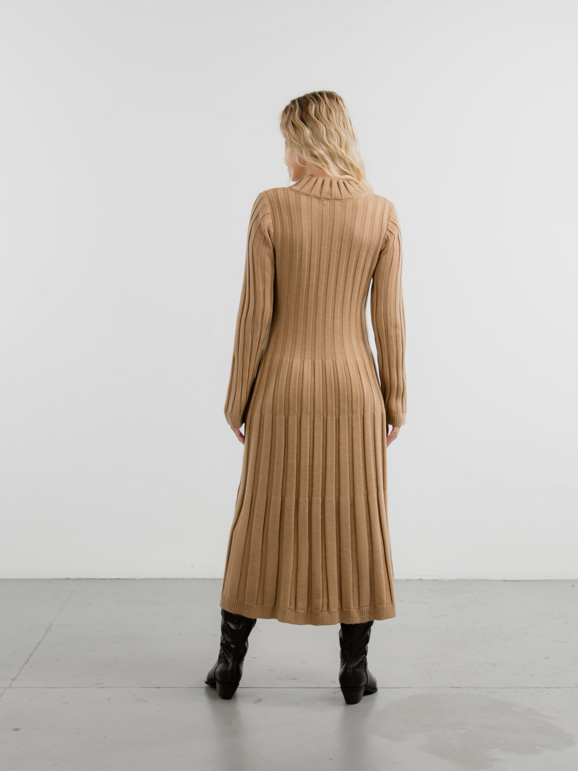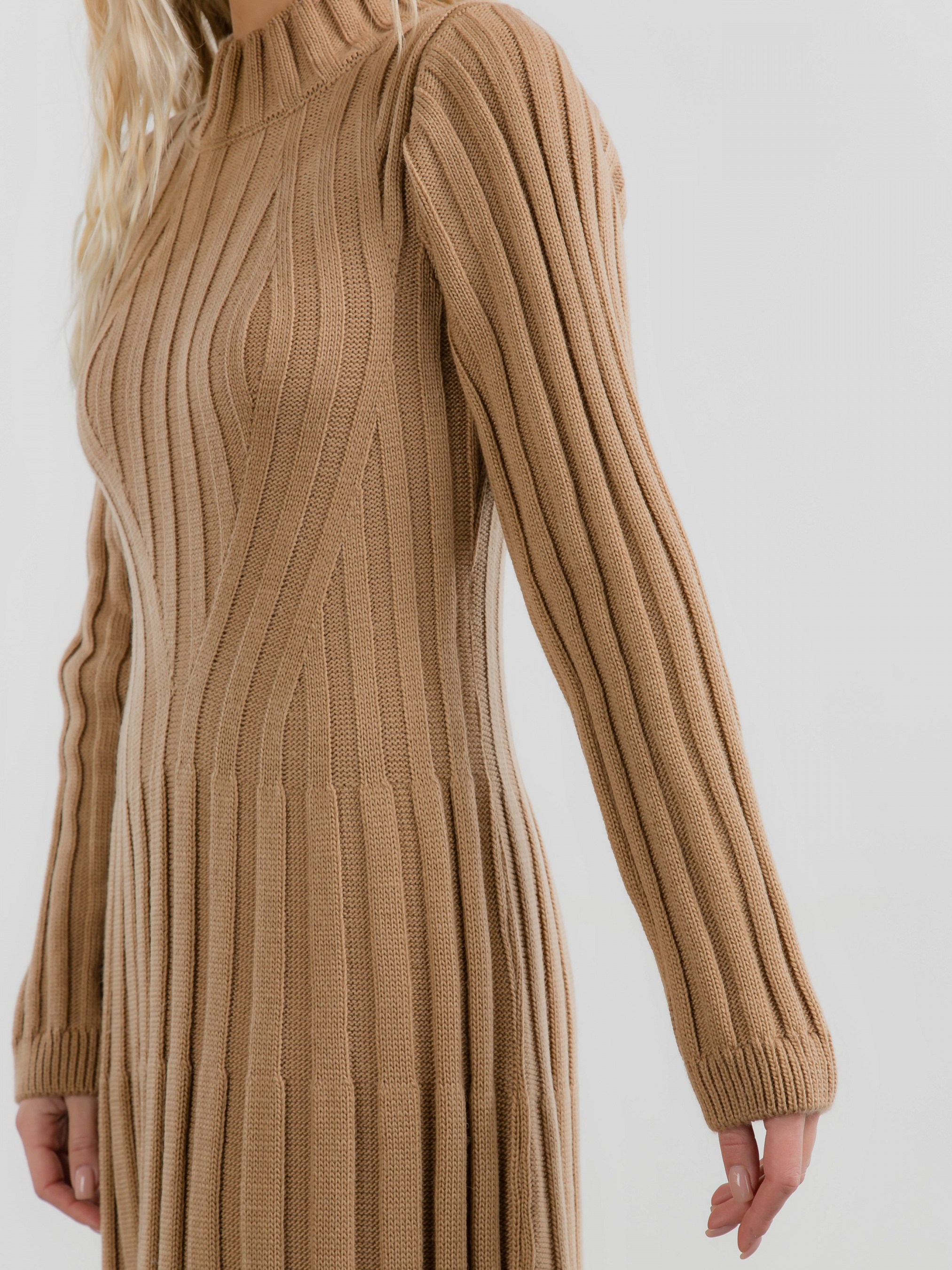 Сукня довжиною нижче коліна. Незвичайний дизайн крупного рубчика додає виробу ізюминки. Комфортна та тепла для холодної пори року. XS-S : Довжина по спині : 112 см Довжина рукава : від спущеного шва 64 см Напівобхват грудей : 37 см Плечі : 37 см M-L : Довжина по спині : 116 см Довжина рукава : від спущеного шва 66 см Напівобхват грудей : 45 см Плечі : 41 см