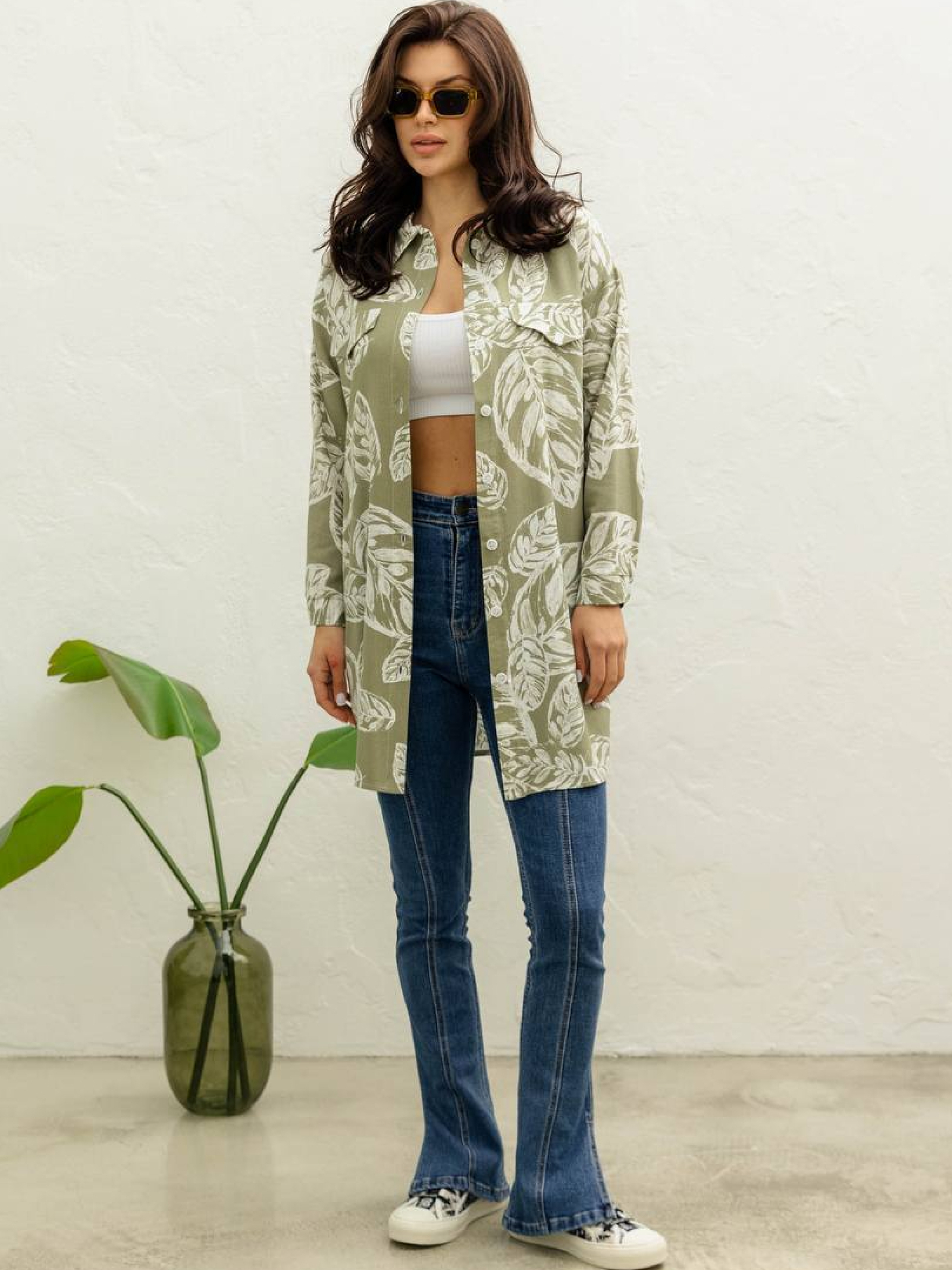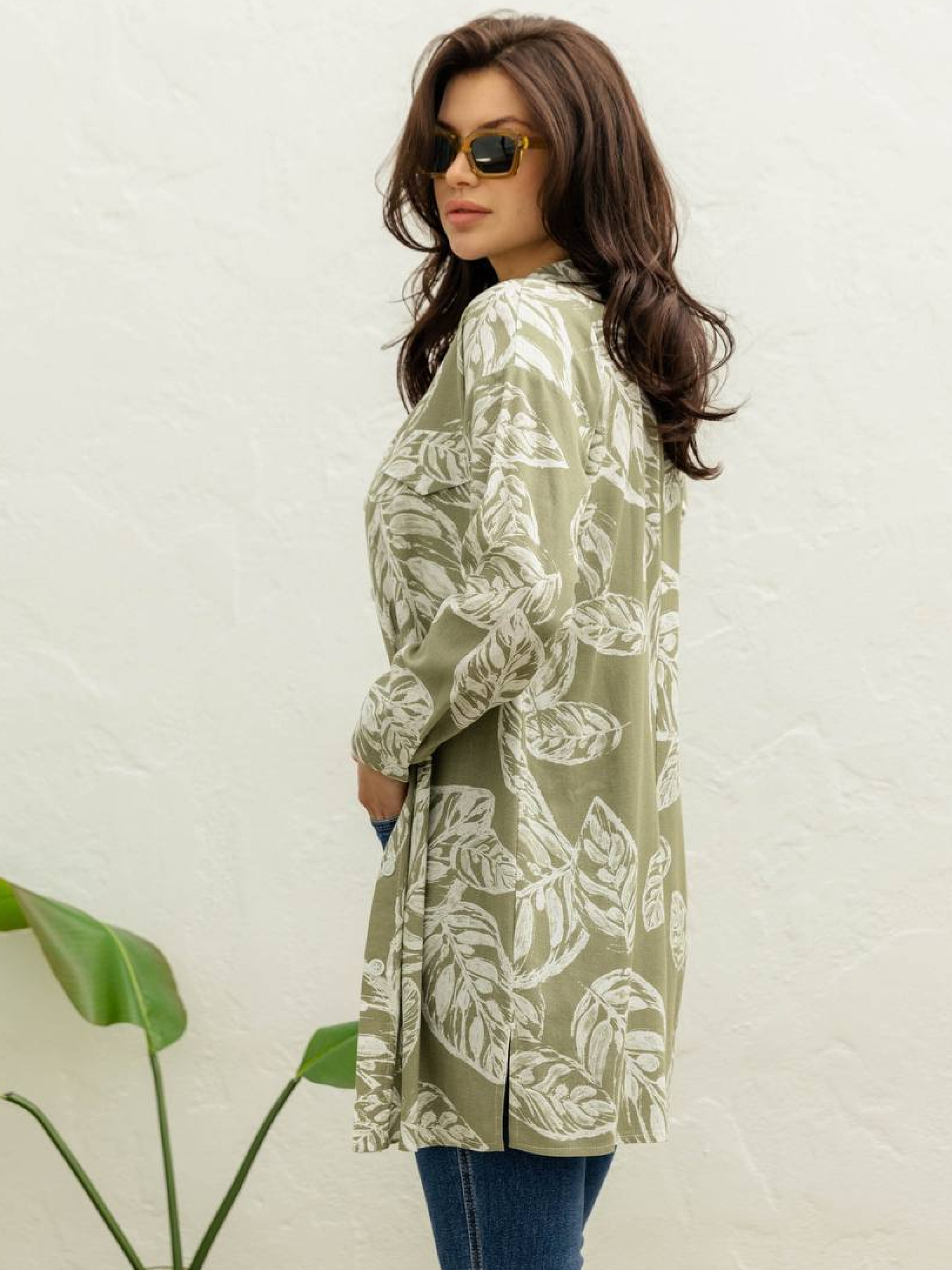 Сукня-сорочка з принтованого льону Ця сукня-сорочка — втілення легкості та стилю для весняно-літнього сезону. Виконана з принтованого льону, вона поєднує в собі комфорт натуральної тканини та сучасний дизайн. Фасон: • Вільний, прямий, трапецеподібний силует забезпечує свободу рухів та підходить для різних типів фігур. • Спущене плече додає невимушеності образу. • Довгий рукав із манжетом та планка на ґудзиках створюють класичний вигляд. • Декоративні елементи у вигляді клапанів надають сукні особливого шарму. Матеріал: • Принтований льон — натуральна, дихаюча тканина, ідеальна для теплої пори року. • Рекомендується ручне прання при температурі до 30°C для збереження якості тканини. Розмірна сітка: • S-M: o Обхват грудей: 84–80 см o Обхват талії: 68–72 см o Обхват стегон: 92–96 см o Довжина виробу: 88 см o Довжина рукава: 48 см • L-XL: o Обхват грудей: 92–96 см o Обхват талії: 76–81 см o Обхват стегон: 100–105 см o Довжина виробу: 90 см o Довжина рукава: 48 см • XXL-3XL: o Обхват грудей: 100–105 см o Обхват талії: 86–91 см o Обхват стегон: 110–115 см o Довжина виробу: 91 см o Довжина рукава: 48 см Ця сукня-сорочка стане чудовим доповненням до вашого гардеробу, поєднуючи в собі стиль, комфорт та універсальність. Вона ідеально підходить для прогулянок, відпочинку на природі чи активного дня в місті.