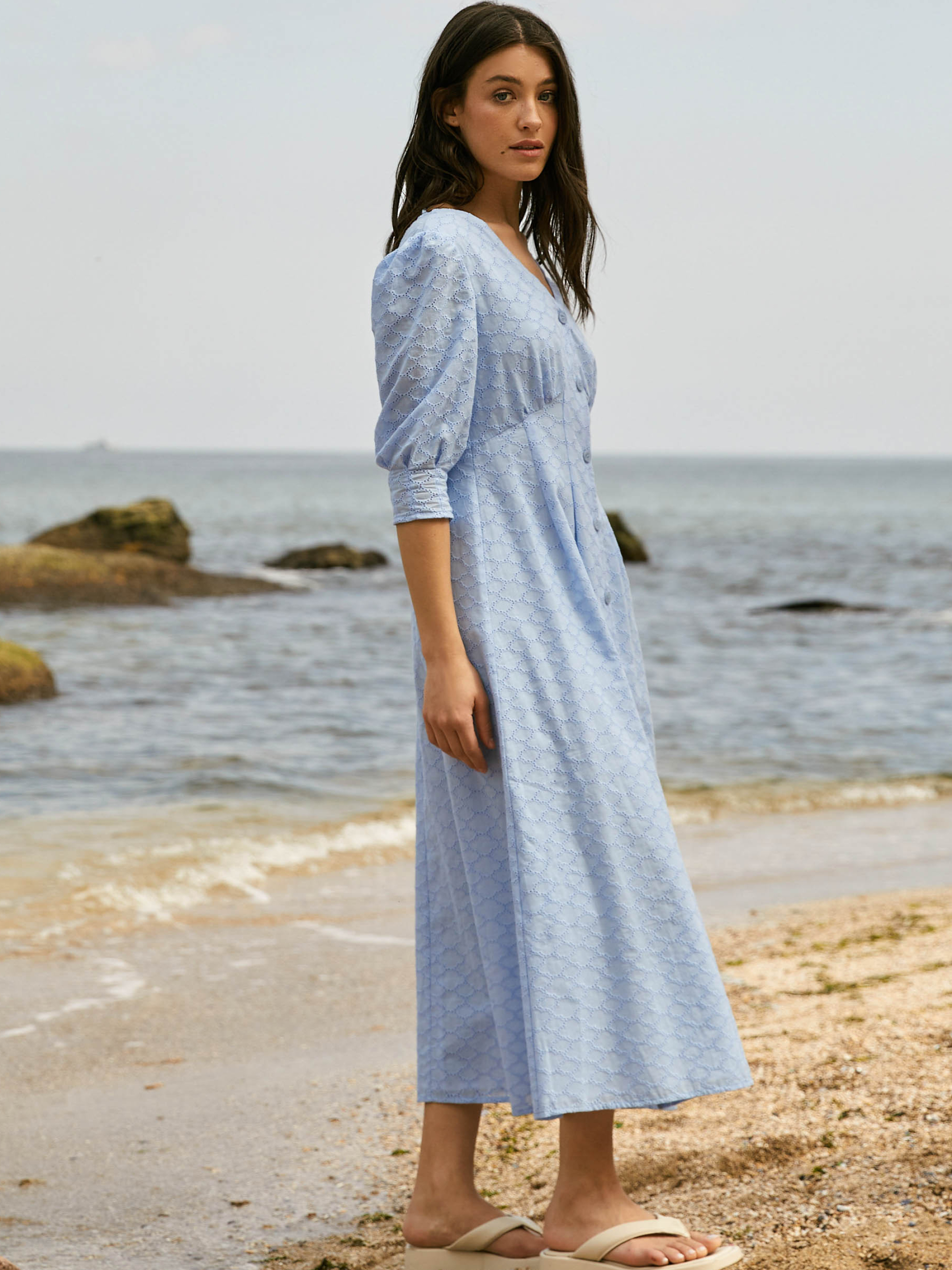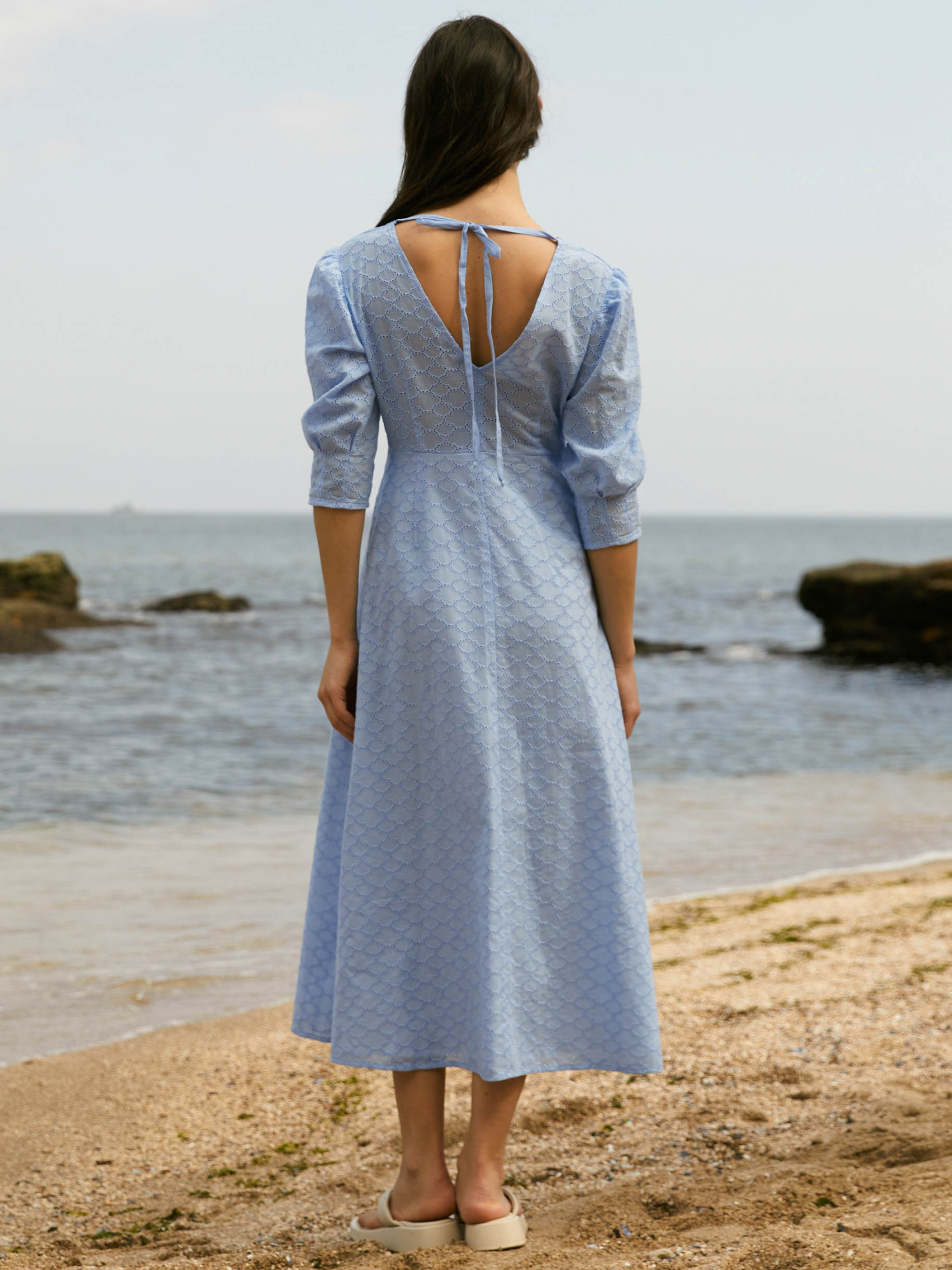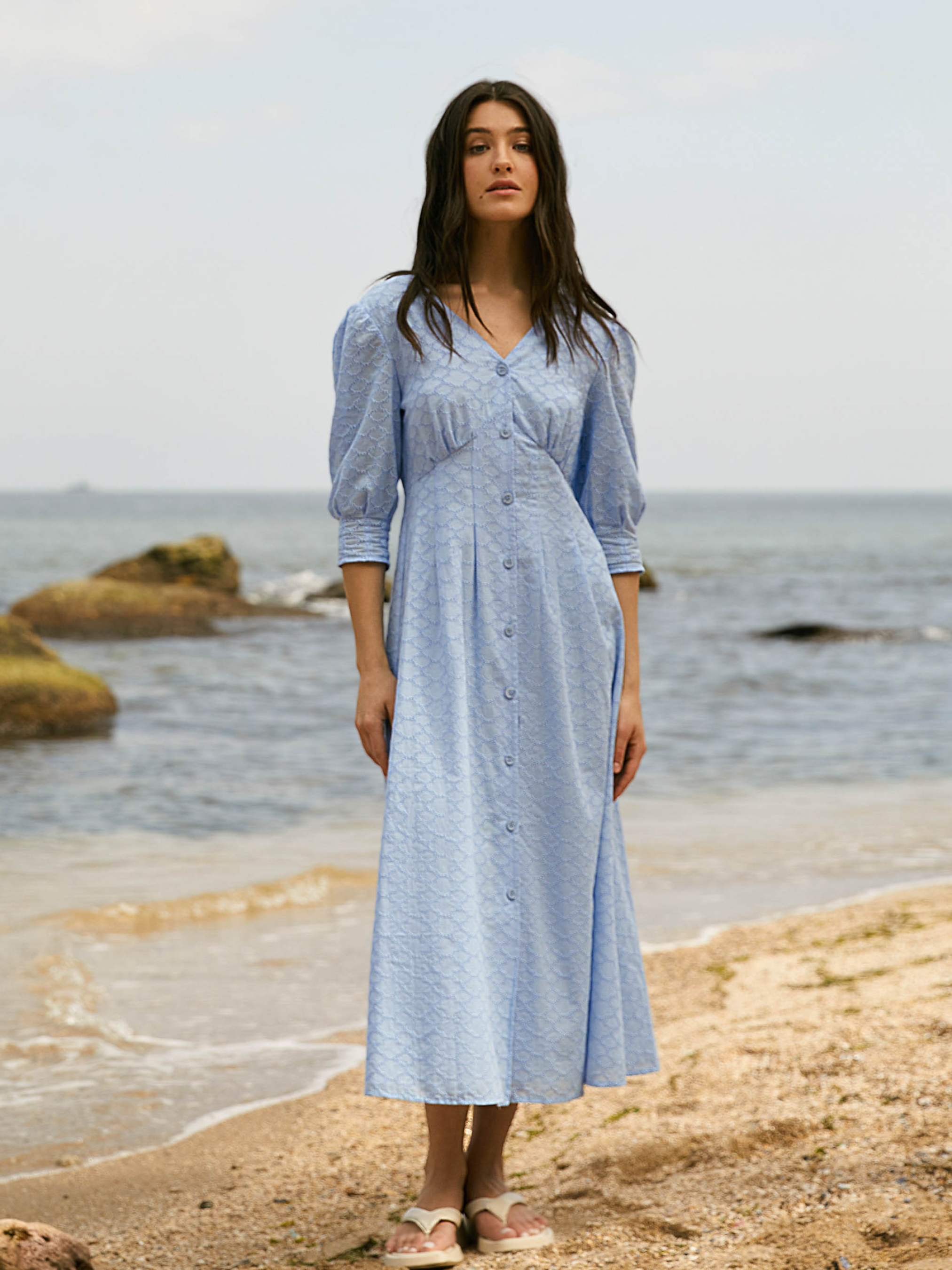 Сукня від Seventeen — легкість і елегантність у кожному русі Додай у свій гардероб витончену сукню, яка поєднує комфорт і жіночність для спекотних літніх днів. Фасон Сукня має прямий, розслаблений силует, що підкреслює природну грацію. Виточки на талії додають виробу акуратності, а V-подібний виріз і відкритий верх спини з ніжними зав’язками створюють романтичний і легкий образ. Об’ємні рукави на манжетах надають модний акцент і легкість силуету. Матеріал Виготовлена з легкої, повітропроникної прошви — ідеального матеріалу для літнього сезону. М’яка бавовняна підкладка запобігає прозорості та дарує додатковий комфорт навіть у найспекотніші дні. Розмірна сітка S–M: обхват грудей 84–88 см, талії 68–72 см, стегон 92–96 см, довжина сукні 121 см, довжина рукава 41 см L–XL: обхват грудей 92–96 см, талії 76–81 см, стегон 100–105 см, довжина сукні 122 см, довжина рукава 42 см XXL–3XL: обхват грудей 100–105 см, талії 86–91 см, стегон 110–115 см, довжина сукні 123 см, довжина рукава 44 см Догляд Рекомендується делікатне ручне прання при температурі до 30°C Уникати відбілювачів Прасувати з вивороту при середній температурі Сушити в тіні, розклавши виріб Не замочувати тривалий час Ця сукня подарує тобі свободу рухів і чарівність на кожному кроці, наповнюючи образ легкою жіночністю та свіжістю