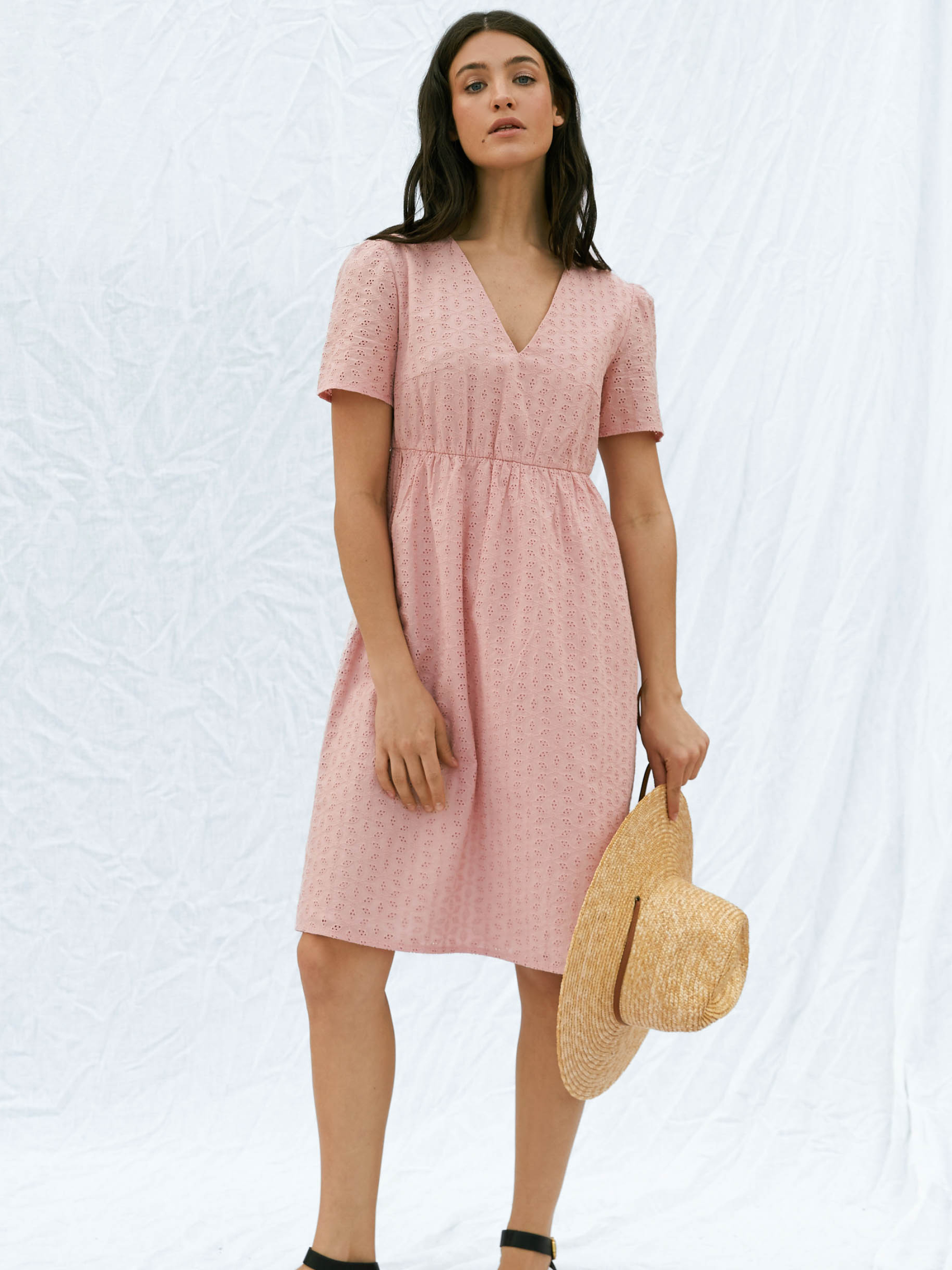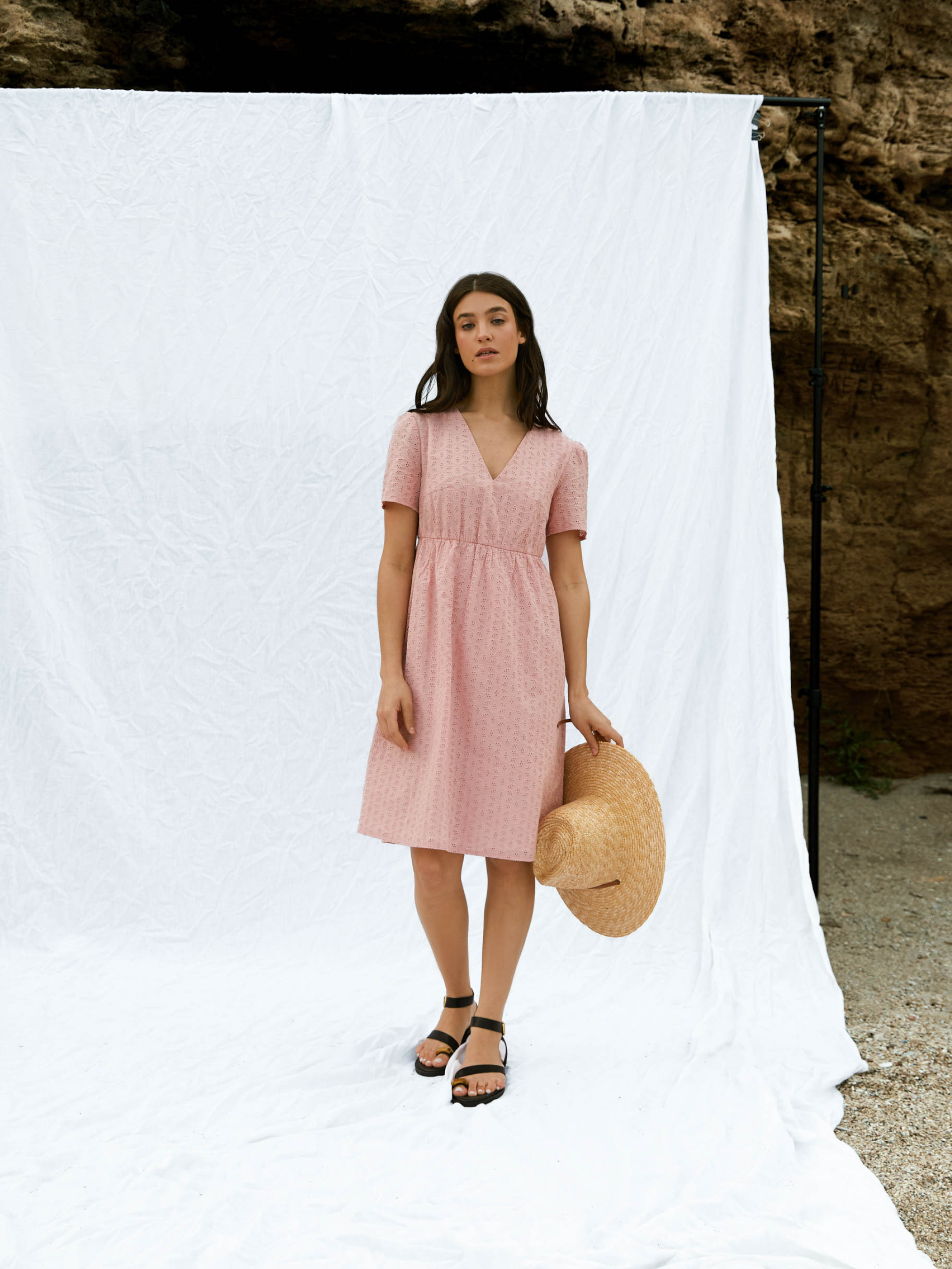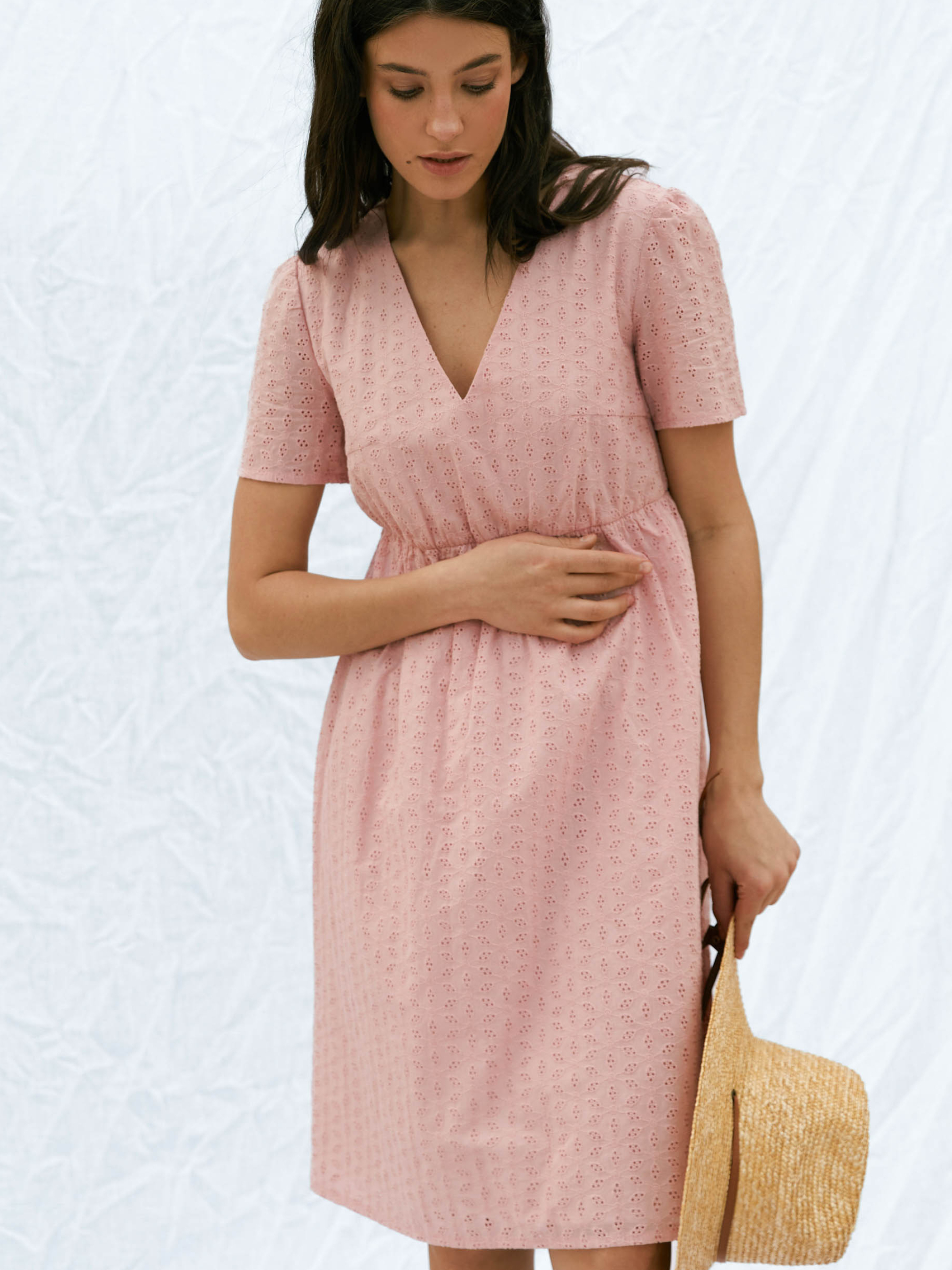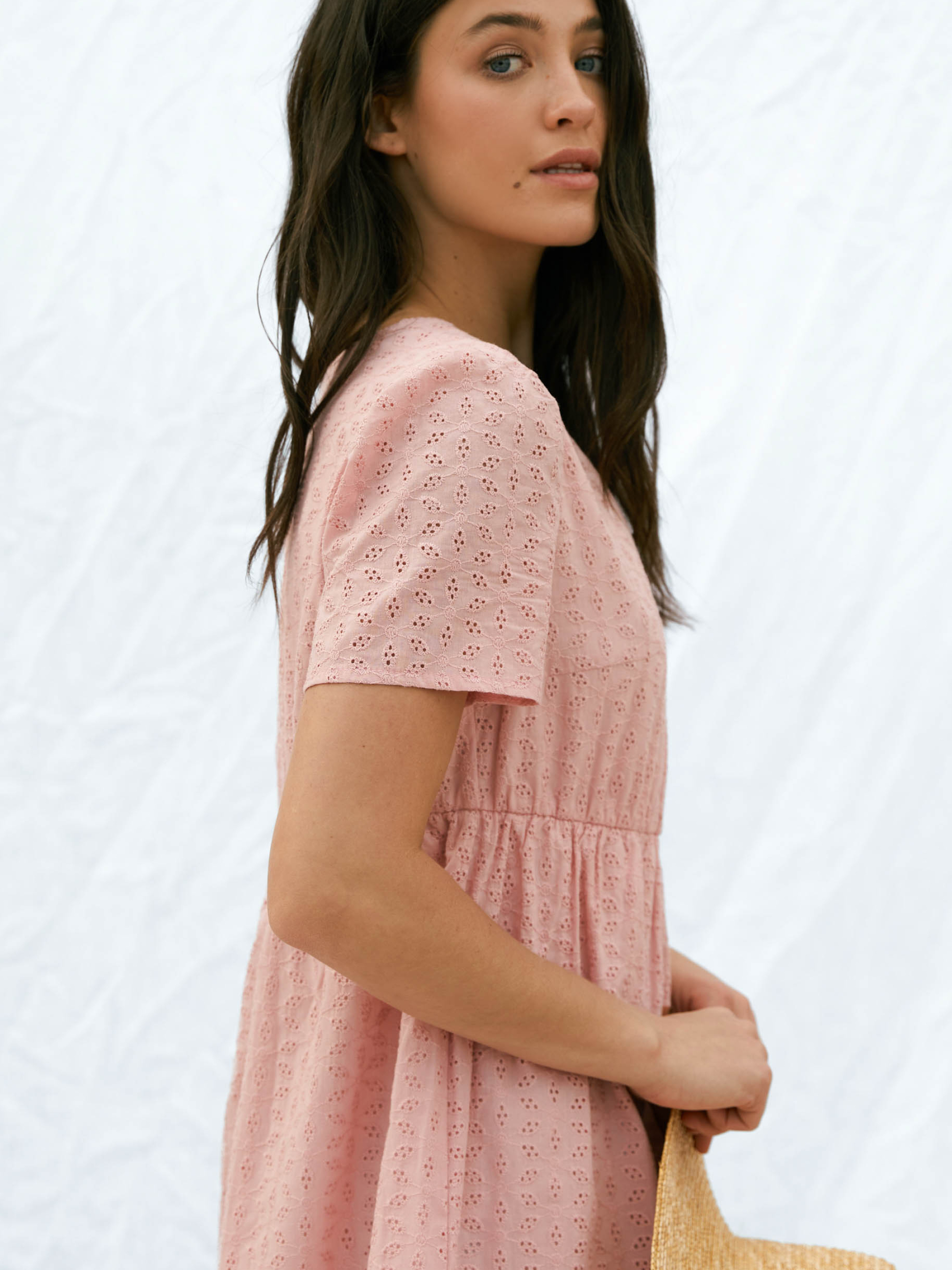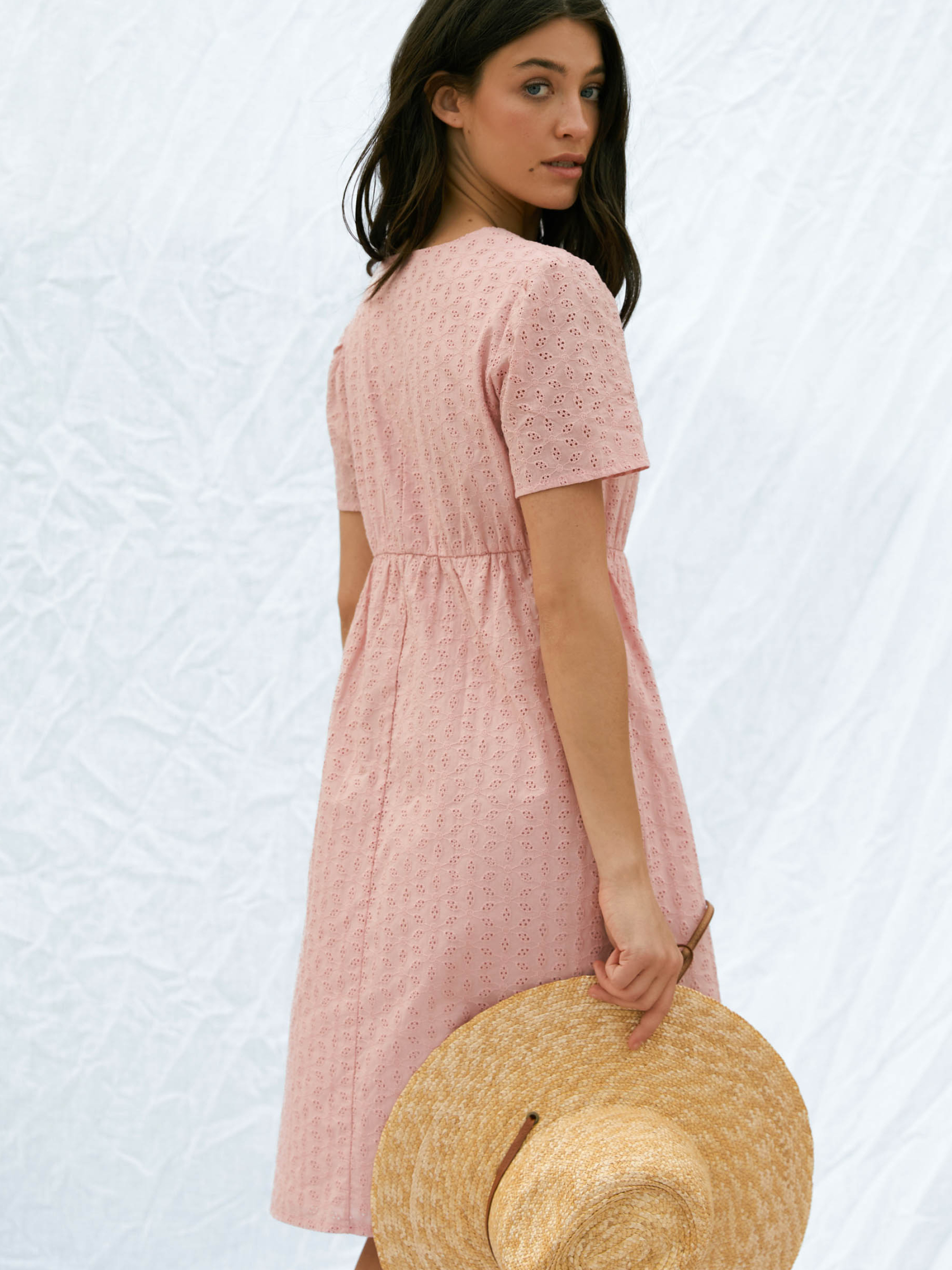 Сукня з вишитого батисту від Seventeen — ніжність, що дихає Наповни літо жіночністю та витонченим комфортом — ця сукня створена для спекотних днів та романтичних настроїв! Фасон Прямий, вільний крій із завищеною талією створює легку та невимушену лінію силуету. V-подібний виріз і короткі рукави підкреслюють хисткість плечей, а зворотні зав’язки на спині надають образу витонченості та жіночності. Вишитий декор додає текстурності й делікатного шику. Матеріал Основна тканина — вишитий батист, що дихає і не обтяжує. Батистова підкладка підсилює комфорт, усуваючи прозорість та забезпечуючи ніжність до тіла. Ідеальна для літньої спеки — легка, повітропроникна, з приємною текстурою та природною прохолодою Розмірна сітка і довжина S–M: обхват грудей 84–88 см, талії 68–72 см, стегон 92–96 см; довжина сукні 94 см, довжина рукава 22 см L–XL: груди 92–96 см, талія 76–81 см, стегна 100–105 см; довжина 95 см, рукав 23 см XXL–3XL: груди 100–105 см, талія 86–91 см, стегна 110–115 см; довжина 96 см, рукав 24 см Догляд Ручне прання при температурі до 30 °C — для збереження ніжних візерунків батисту Уникати застосування відбілювачів Прасування з виворітного боку при середньому температурному режимі Сушити в тіні, розклавши виріб — аби уникнути деформації Не замочувати тривалий час