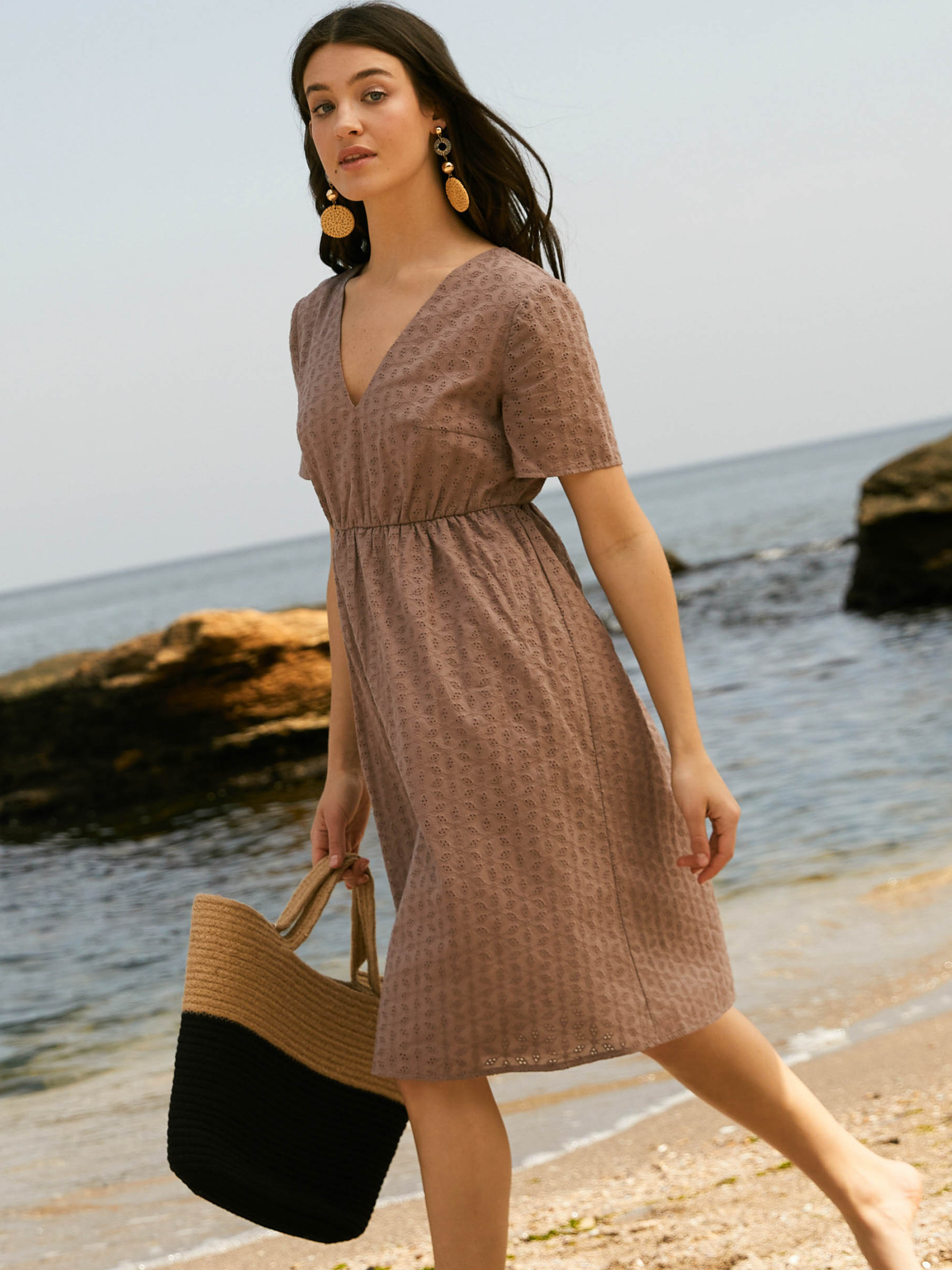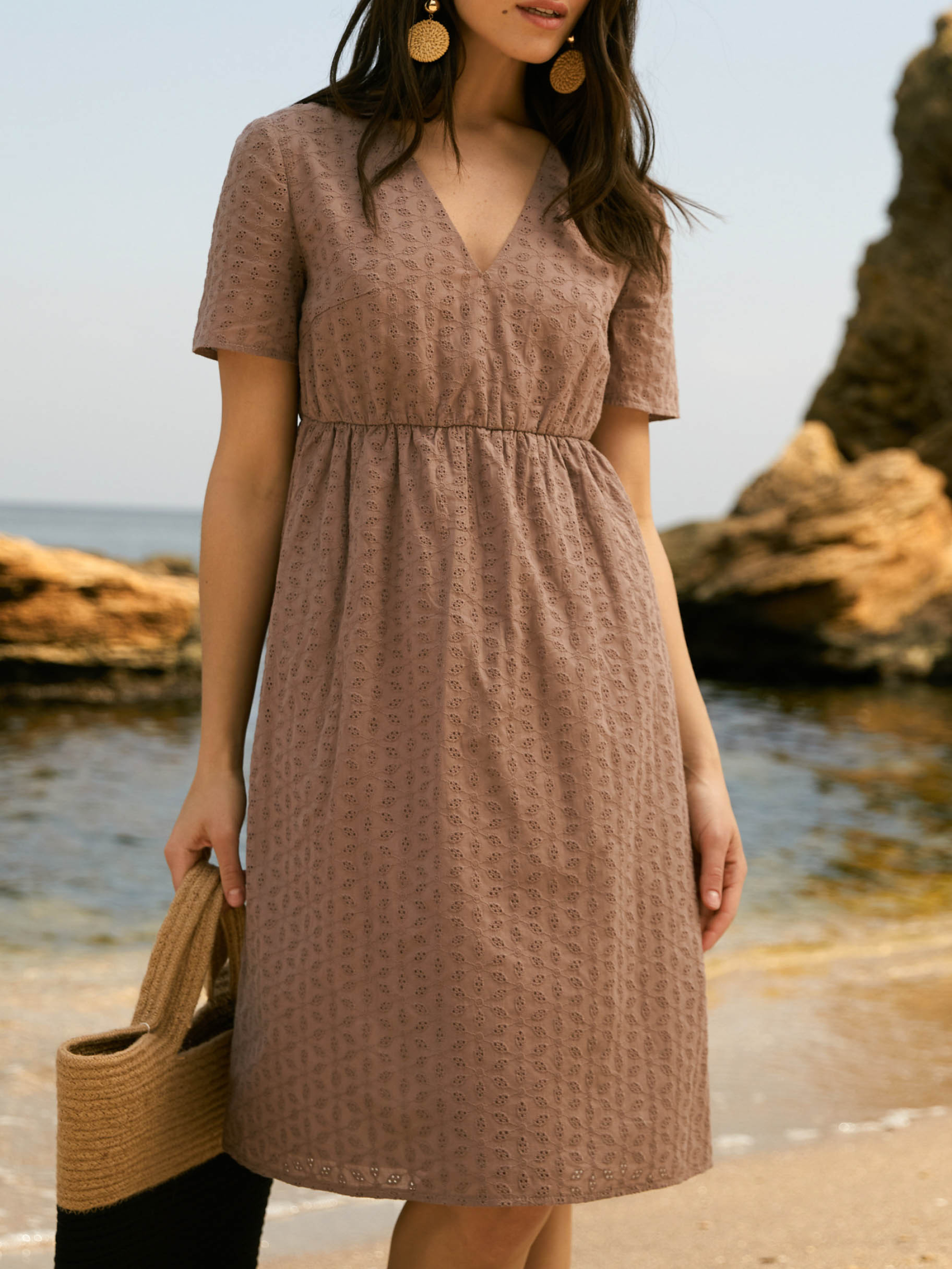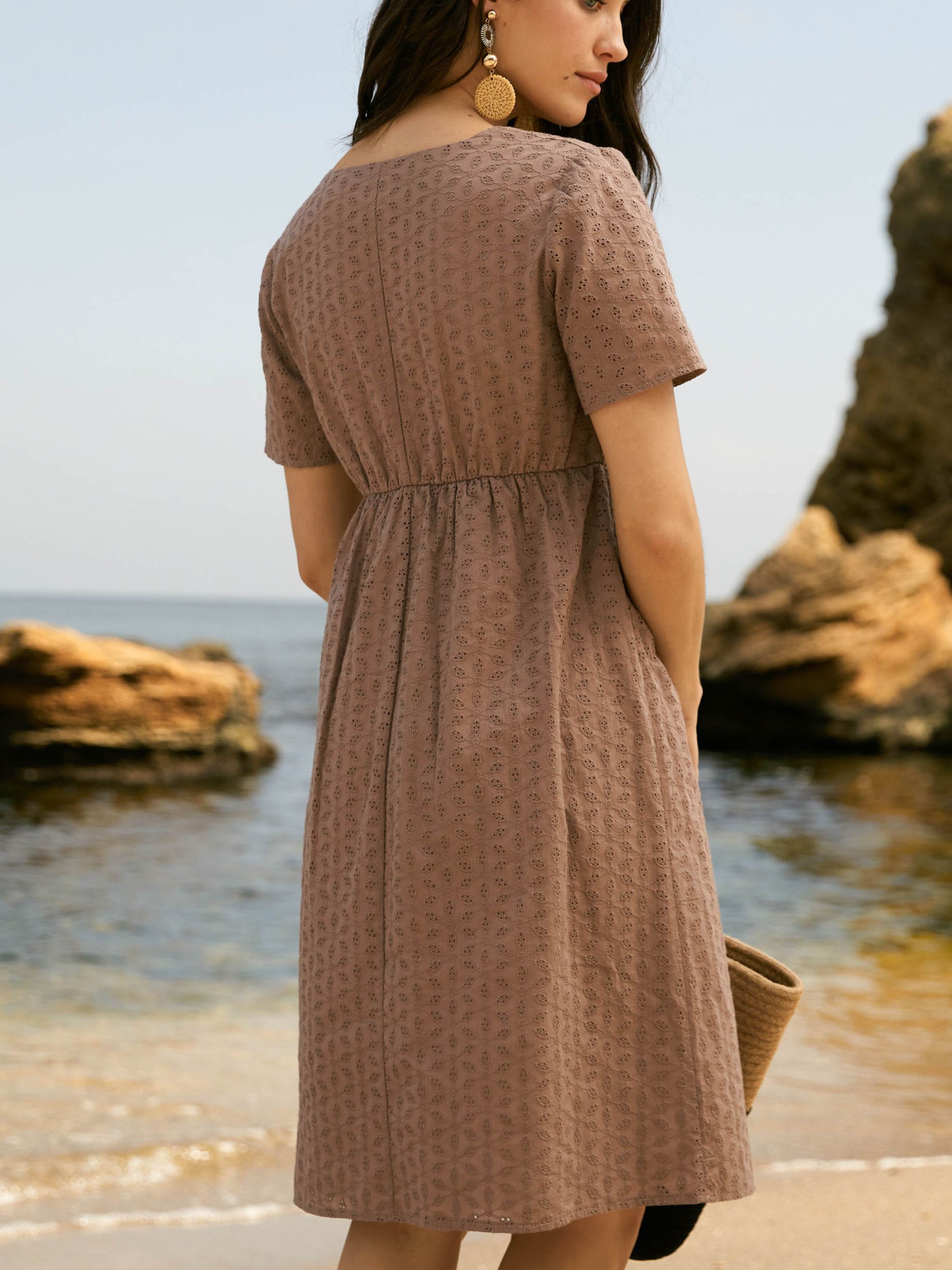 Сукня з вишитого батисту від Seventeen — ніжність, що дихає Наповни літо жіночністю та витонченим комфортом — ця сукня створена для спекотних днів та романтичних настроїв! Фасон Прямий, вільний крій із завищеною талією створює легку та невимушену лінію силуету. V-подібний виріз і короткі рукави підкреслюють хисткість плечей, а зворотні зав’язки на спині надають образу витонченості та жіночності. Вишитий декор додає текстурності й делікатного шику. Матеріал Основна тканина — вишитий батист, що дихає і не обтяжує. Батистова підкладка підсилює комфорт, усуваючи прозорість та забезпечуючи ніжність до тіла. Ідеальна для літньої спеки — легка, повітропроникна, з приємною текстурою та природною прохолодою Розмірна сітка і довжина S–M: обхват грудей 84–88 см, талії 68–72 см, стегон 92–96 см; довжина сукні 94 см, довжина рукава 22 см L–XL: груди 92–96 см, талія 76–81 см, стегна 100–105 см; довжина 95 см, рукав 23 см XXL–3XL: груди 100–105 см, талія 86–91 см, стегна 110–115 см; довжина 96 см, рукав 24 см Догляд Ручне прання при температурі до 30 °C — для збереження ніжних візерунків батисту Уникати застосування відбілювачів Прасування з виворітного боку при середньому температурному режимі Сушити в тіні, розклавши виріб — аби уникнути деформації Не замочувати тривалий час