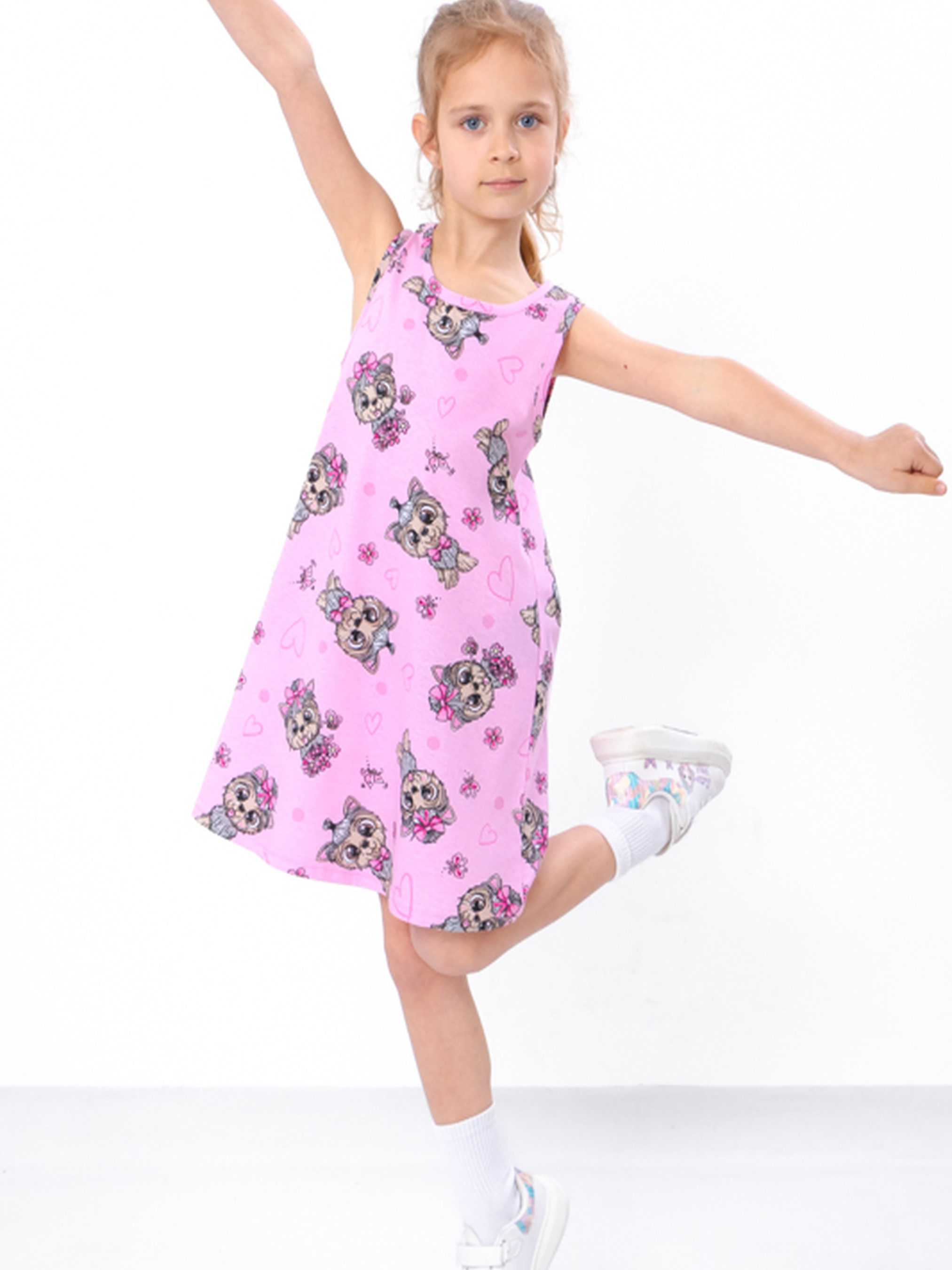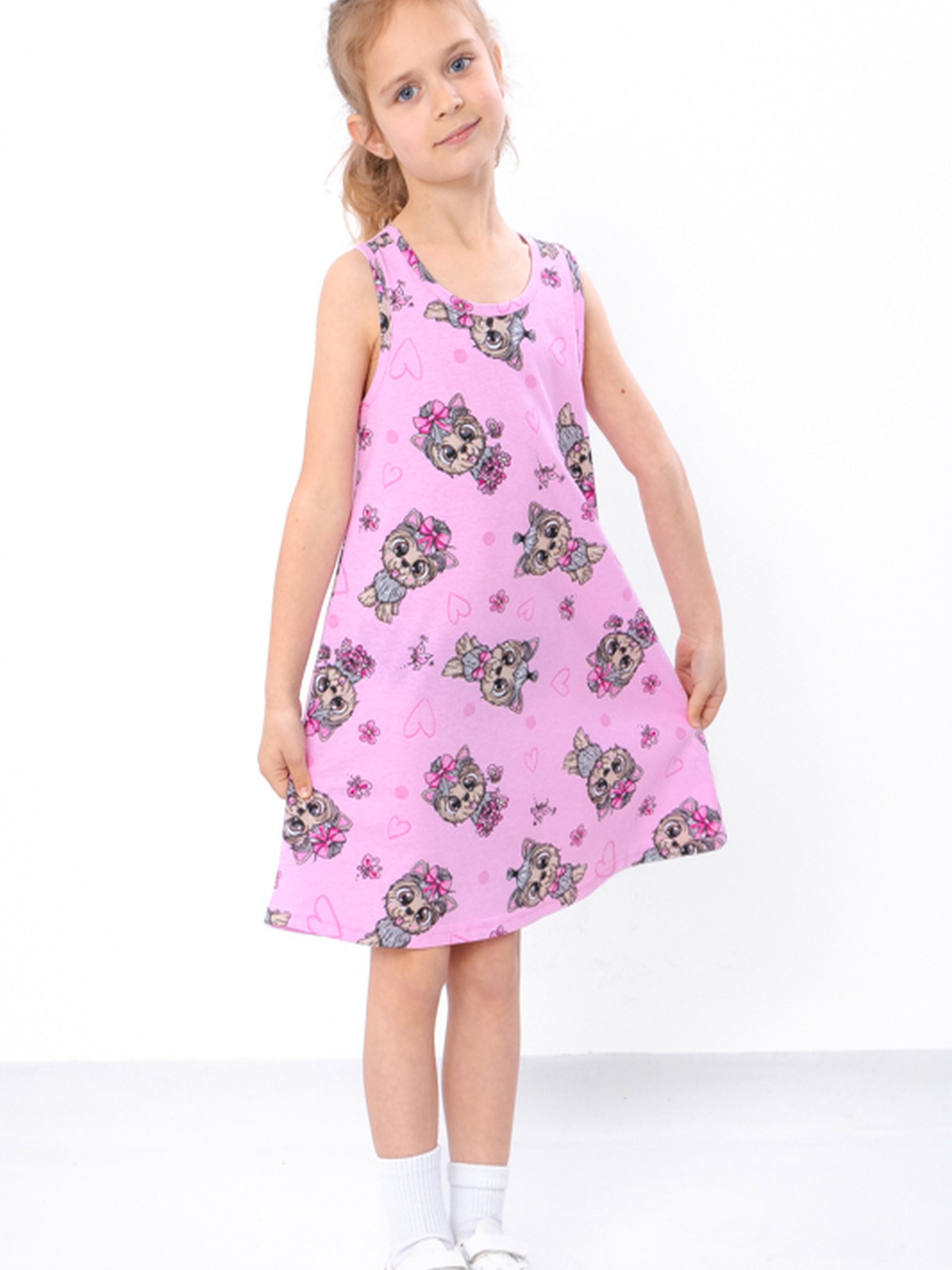 Полотно: кулір набивний Склад полотна: 100% бавовна Зріст: 104-134 Літня сукня для дівчинки – ідеальний вибір для створення стильного і комфортного образу в спекотні дні. Виготовлена з легкого і дихаючого матеріалу, ця сукня забезпечує максимальний комфорт та свободу рухів. Яскравий дизайн і сучасний крій додають неповторного шарму та елегантності. Підійде для святкових заходів, прогулянок або фотосесій. Обирайте літню сукню для дівчинки, щоб ваша маленька принцеса відчувала себе особливо в будь-якій ситуації.