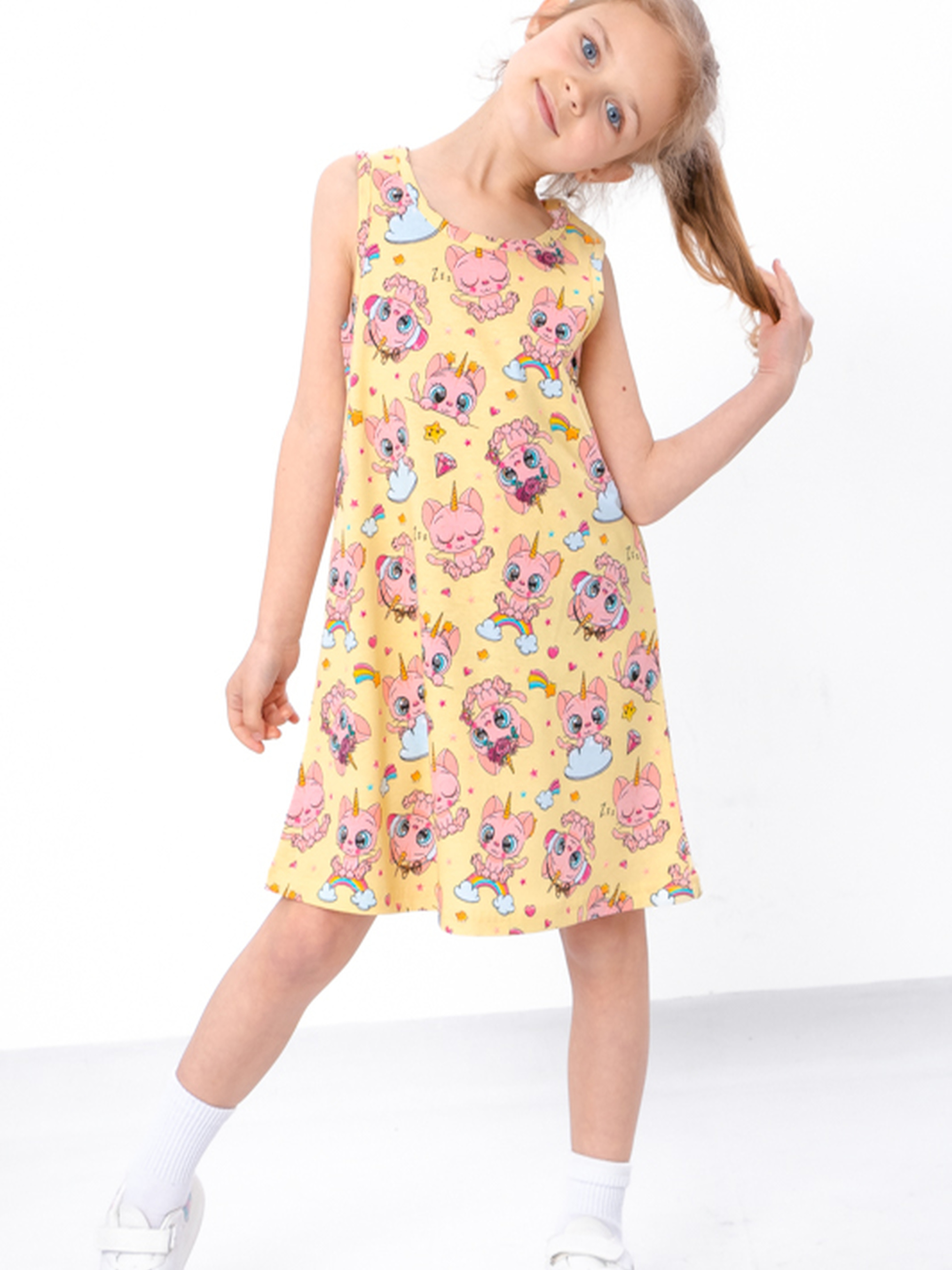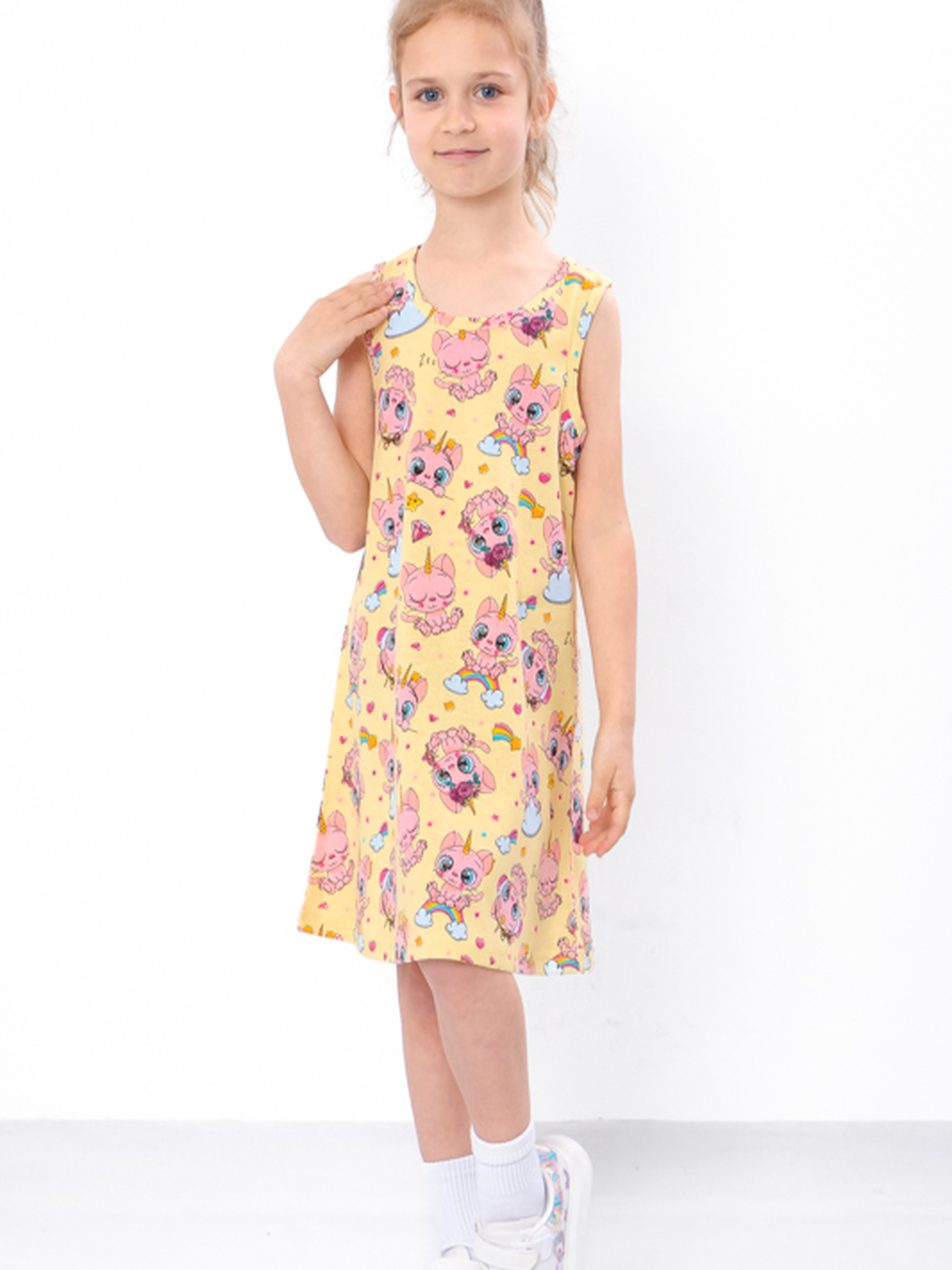 Полотно: кулір набивний Склад полотна: 100% бавовна Зріст: 104-134 Літня сукня для дівчинки – ідеальний вибір для створення стильного і комфортного образу в спекотні дні. Виготовлена з легкого і дихаючого матеріалу, ця сукня забезпечує максимальний комфорт та свободу рухів. Яскравий дизайн і сучасний крій додають неповторного шарму та елегантності. Підійде для святкових заходів, прогулянок або фотосесій. Обирайте літню сукню для дівчинки, щоб ваша маленька принцеса відчувала себе особливо в будь-якій ситуації.