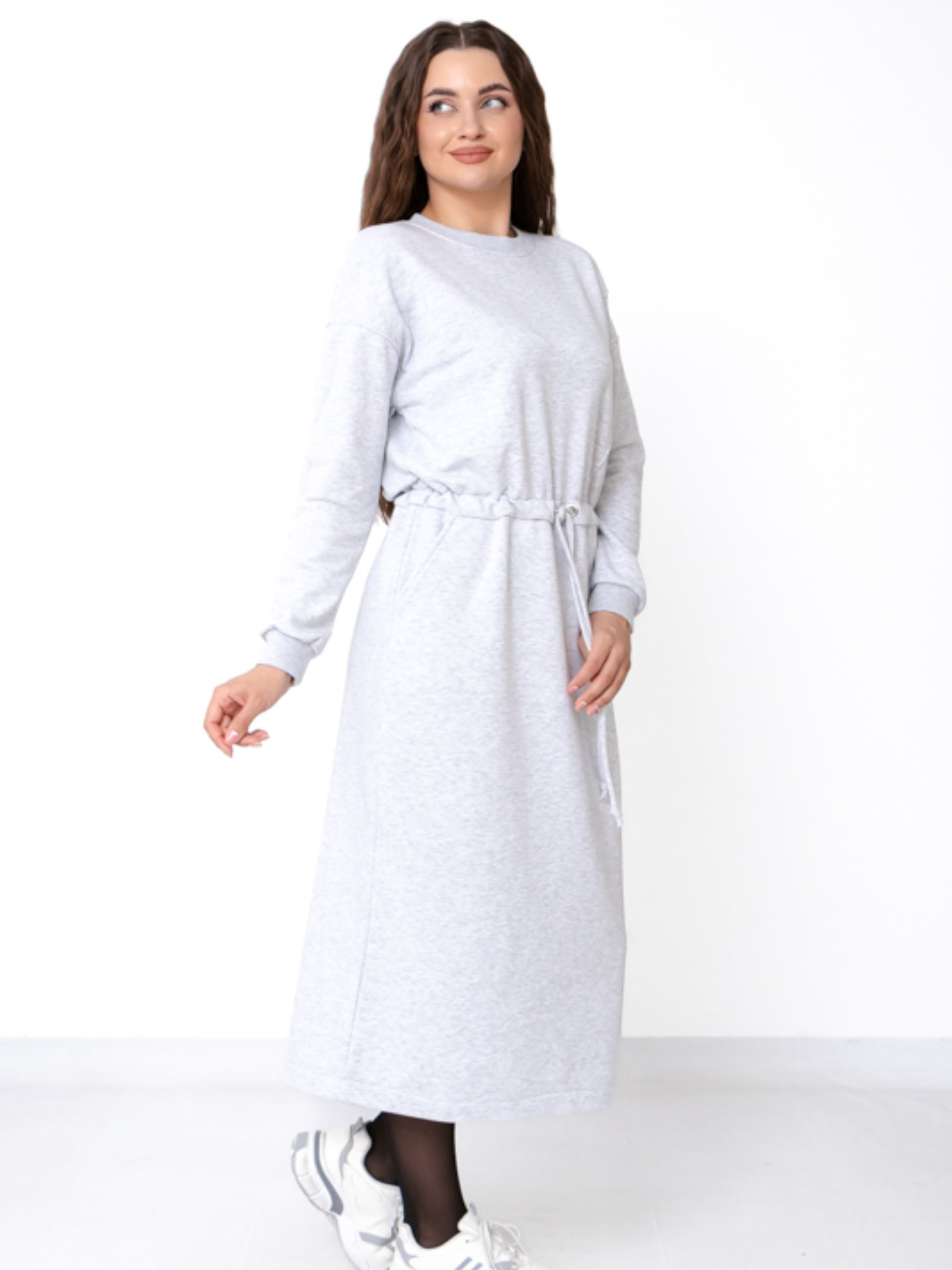 Утеплена жіноча сукня прямого крою з куліскою на талії, Сірий Носи Своє (8445-104) модель 8445-104-srij