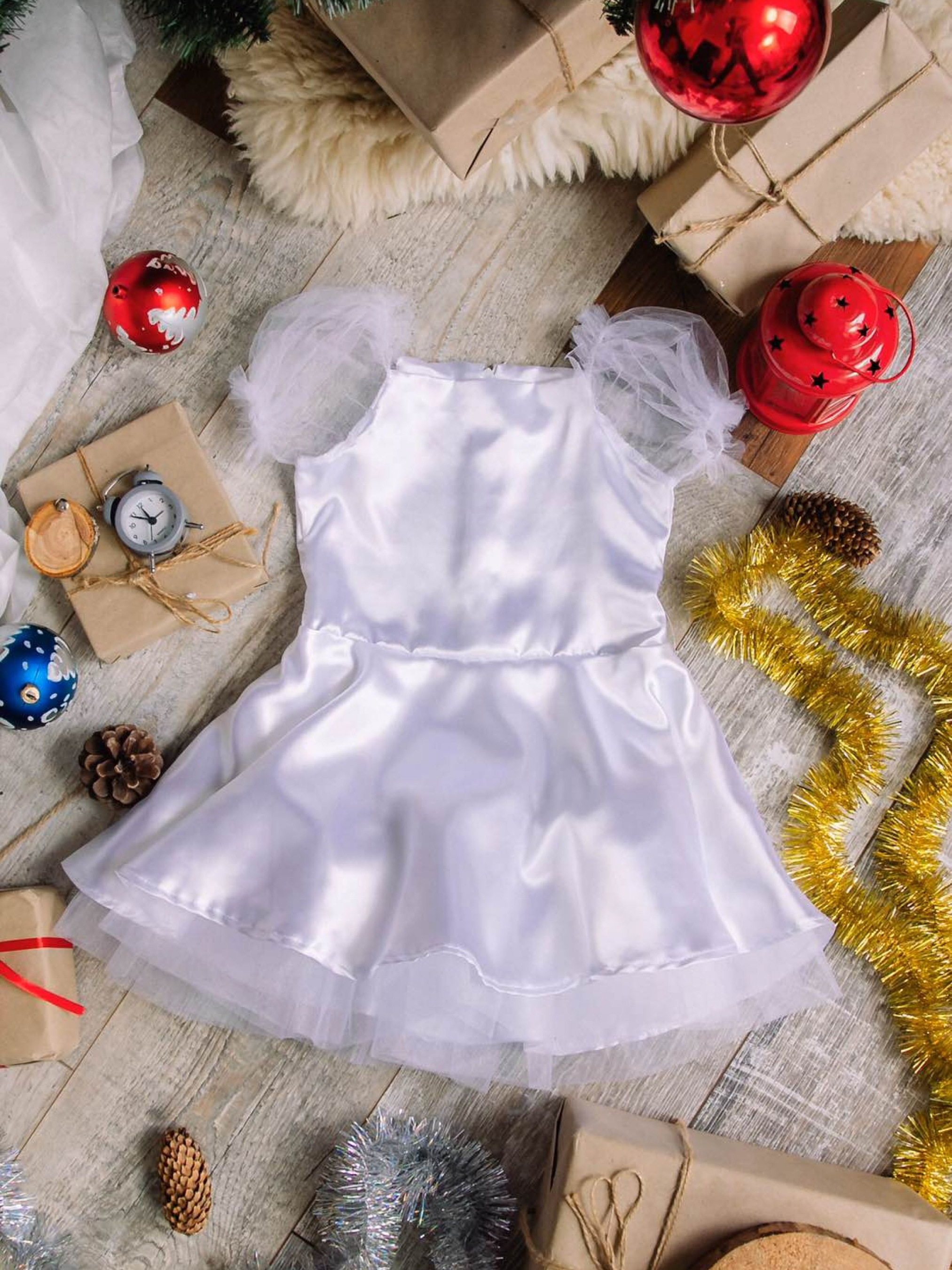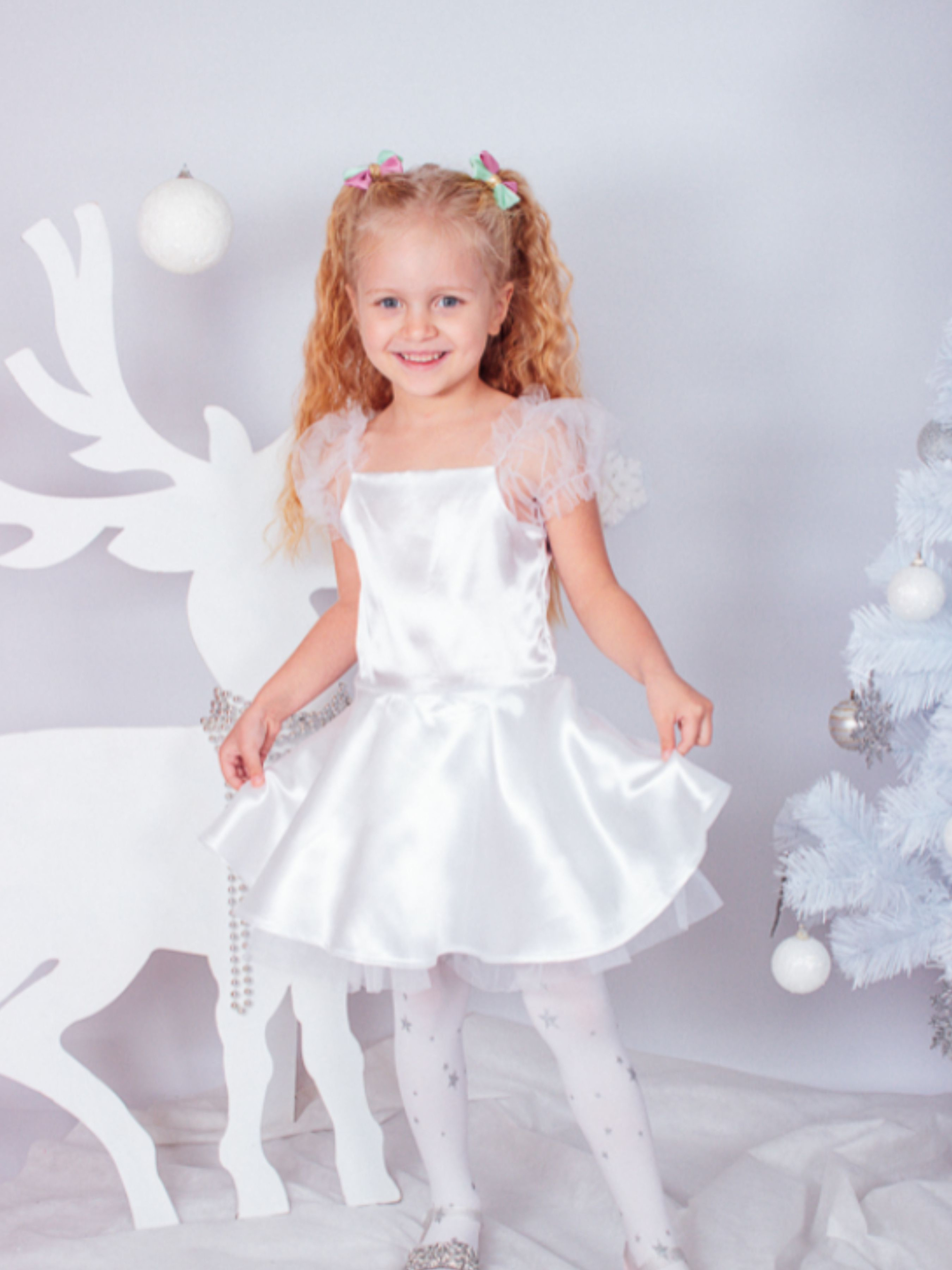 Полотно: атласфатин Склад полотна: 100% поліестр Зріст: 98-110 Це милий і неймовірно чарівний варіант одного з найпопулярніших новорічних карнавальних костюмів. Він неодмінно сподобається маленькій модниці тому що вмить перетворити її на чудову Сніжинку і перенесе в казковий світ чарівництва. Як в природі не буває сніжинок - близнят так і в житті не дивлячись на популярність даного образу кожна дівчинка стає в такому вбранні особливою і неповторною подружкою Діда Мороза і Снігуроньки. Сукня надає своїй власниці легкісті що властиво справжнім кристаликам льоду. У ньому малятко буде виглядати вишукано і граціозно дарувати теплі посмішки і піднімати настрій на будь-якому святі відчуваючи себе справжньою королевою! Приємних покупок і веселого святкового настрою! УВАГА! Товар обміну та поверненню не підлягає!