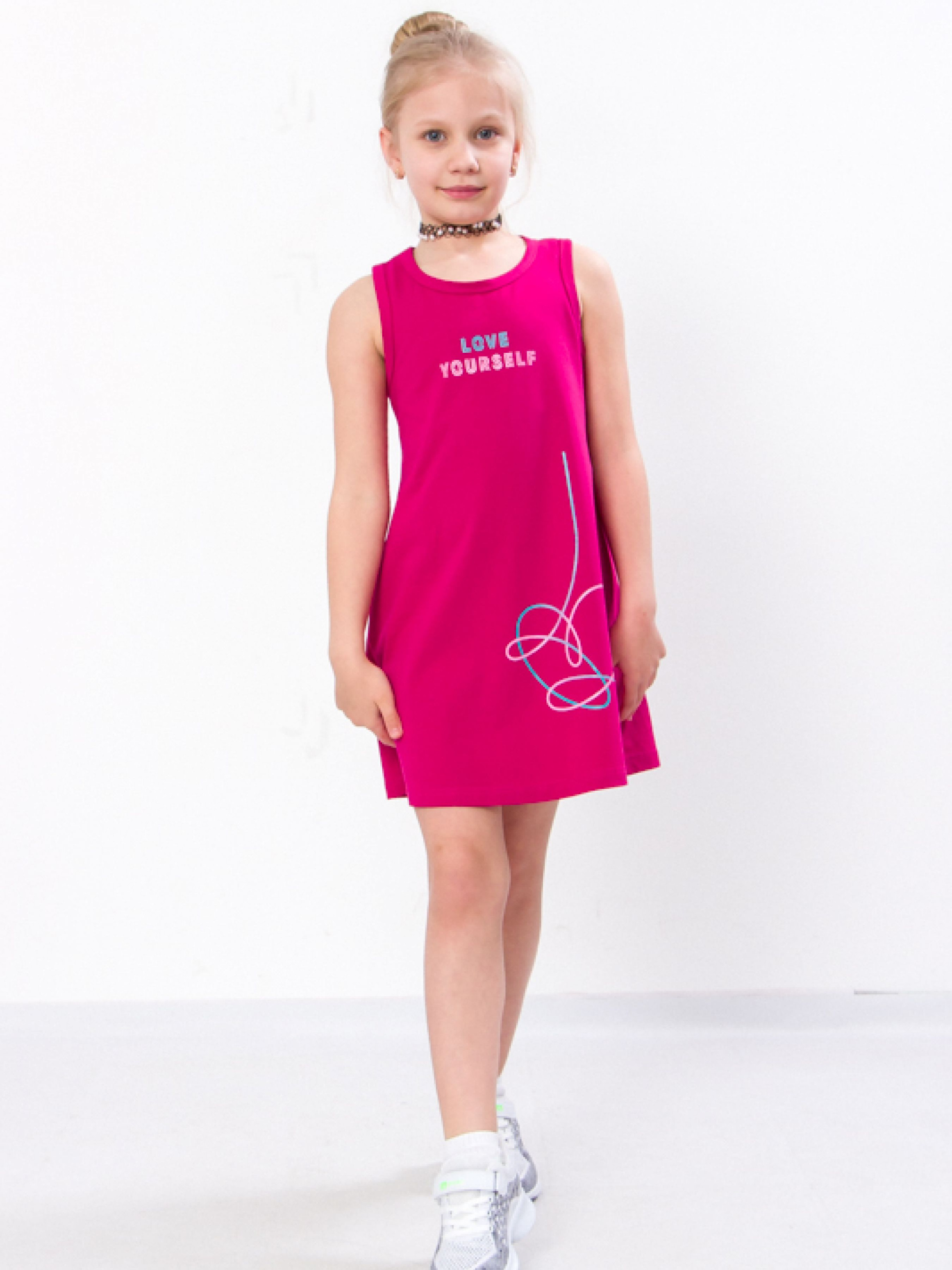 Полотно: фулікра однотонна Склад полотна: 95% бавовни 5% лайкри Зріст: 110-134 Практичний і зручний одяг від бренду Носи Своє створений для найактивніших і стильних дітей. Завдяки високій якості використовуваних для пошиття матеріалів вироби компанії служать довго цінуються батьками і приносять максимальний комфорт своїм власникам. Плаття-майка ідеально підійде для милої дівчинки. До такого сарафану підійдуть пінетки і туфельки різних відтінків а також світла панамка або солом'яний капелюшок. Вільна модель не сковує рухів до того ж в такому вбранні шкіра буде дихати і ніякі подразнення не потурбують. Ретельно оброблені шви і натуральна бавовна дбайливо взаємодіють з чутливим епідермісом не травмуючи його. Якісне полотно не буде линяти і деформуватися після частих праннів а також не вицвітає на сонці. Догляд: дбайливе прання при t не більше 40С; прасуваи при t не більше 110С; з вивороту трохи вологою.