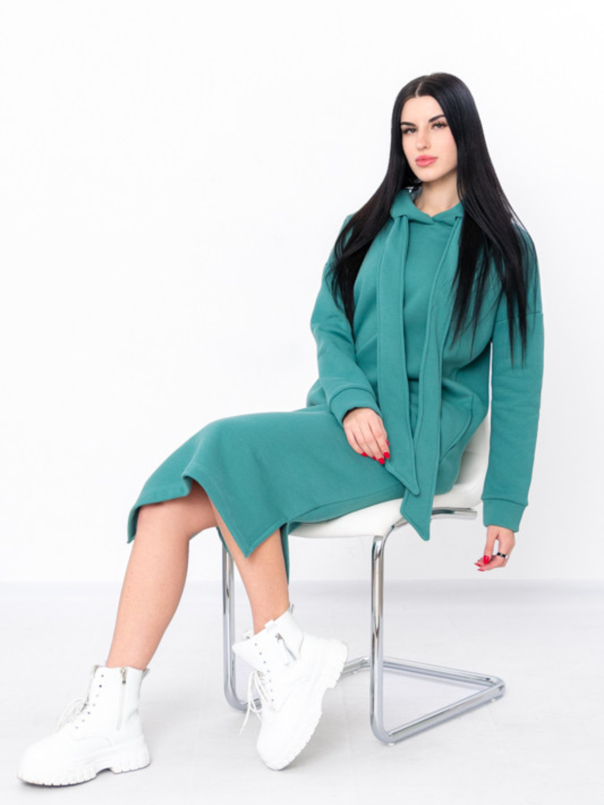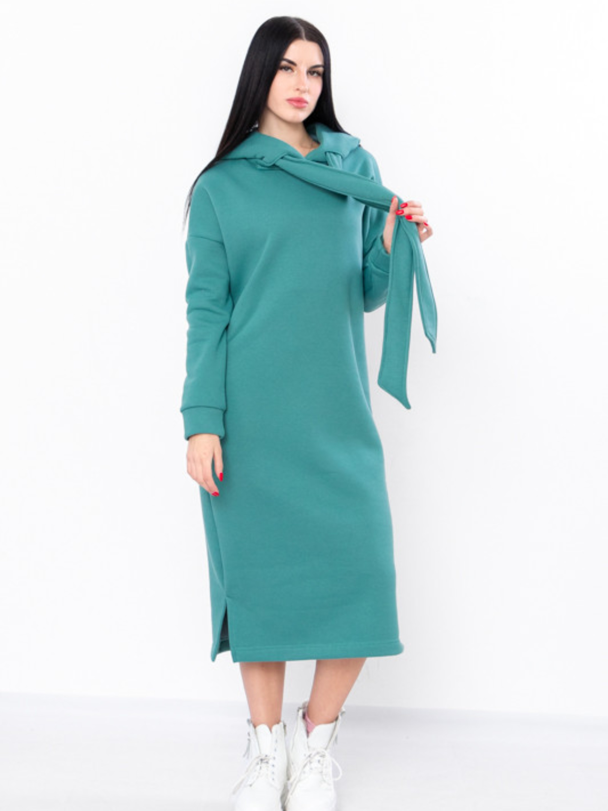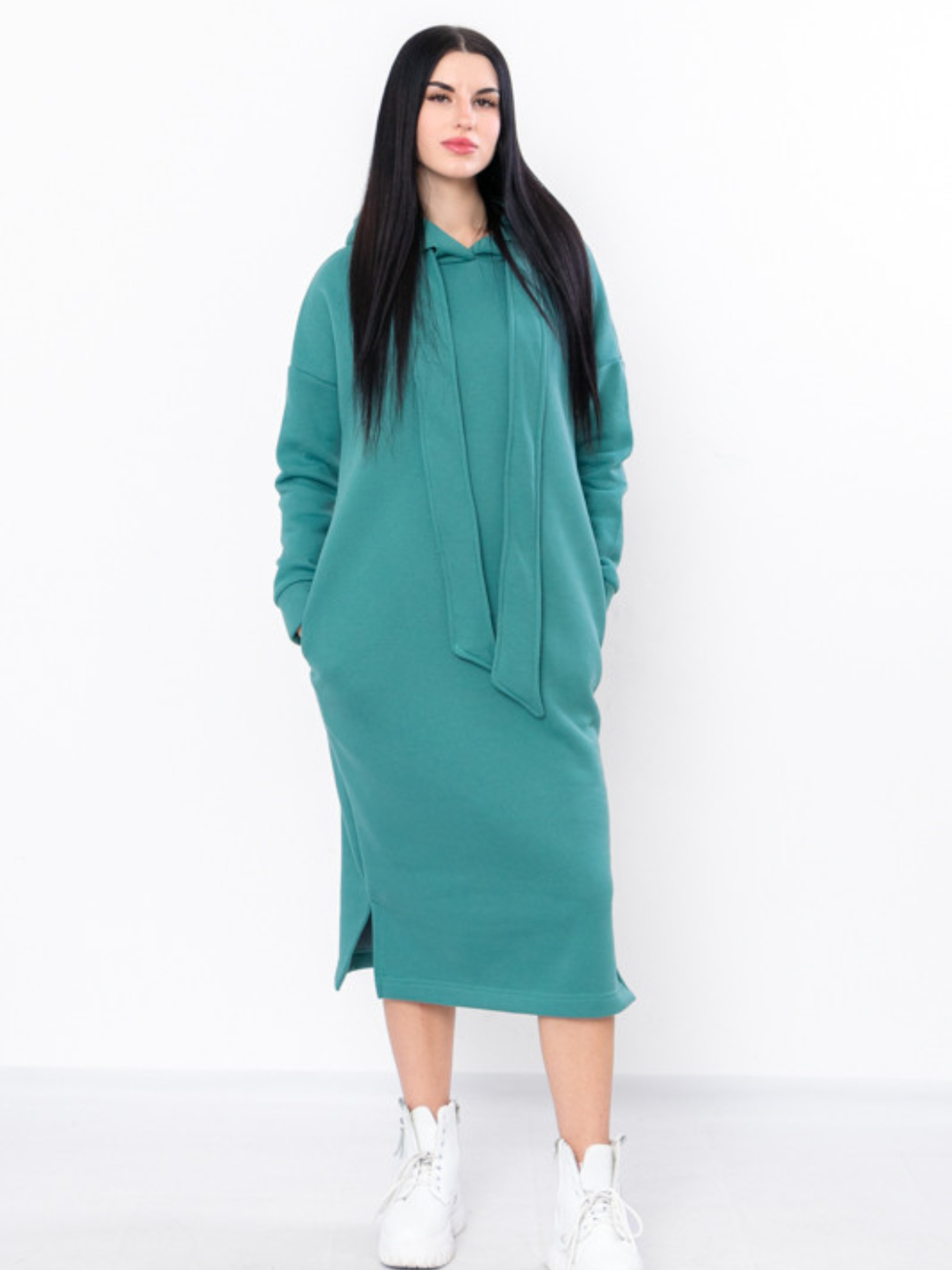 Полотно: тринитка однотонна - щільна тканина з грустим начосом з виворотньої сторони яка чудово зберігає тепло. Склад полотна: 80% бавовна 20% поліестр Розмір: 44-52 Стильна сучасна сукня з нової колекції ТМ "Носи Своє" виготовлена з теплого і приємного до тіла полотна - триниткового футера з начосом. Довге плаття вільного крою має капюшон два бічні кармани по низу виробу передбачені два бічні розрізи. Це плаття з яким ви точно не захочете розлучатися в осінньо-зимовий період оскільки воно виглядає супер стильно і зігріє вас у холодну погоду. Поради щодо догляду: прати вироби з тринитки необхідно на спеціальному режимі «Шерсть» або «Делікатний». Температура прання не повинна перевищувати 30 °C. Такий матеріал не підлягає відбілюванню.