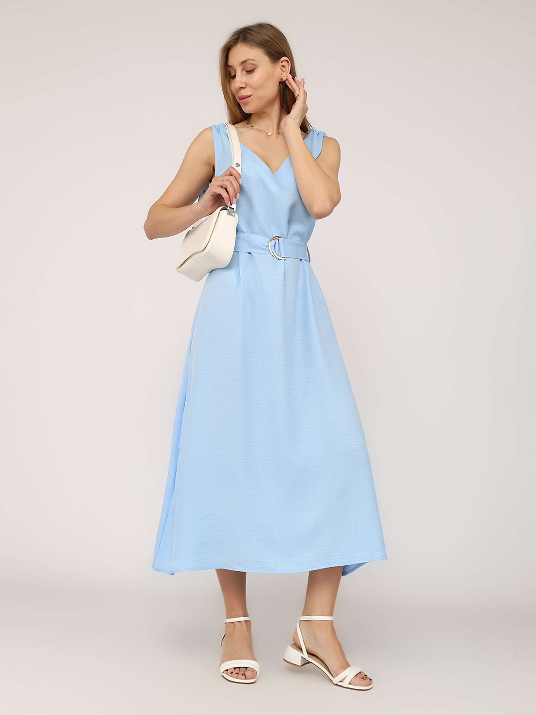 Сарафан жіночий – це втілення легкості та стилю в одному образі. Цей універсальний елемент гардеробу ідеально підходить для теплого сезону, даруючи комфорт і свободу рухів. Завдяки простому, але елегантному крою, сарафан легко поєднується з різноманітними аксесуарами – від витончених сандалій до масивних кросівок. Його можна носити як самостійний одяг у спекотні дні або комбінувати з легкими кофтинками чи джинсовими куртками для прохолодних вечорів. Вишуканий дизайн підкреслює жіночність, а повітряна тканина додає ніжності силуету. Сарафан стане незамінним спутником для прогулянок містом, зустрічей із друзями чи романтичних побачень. Це must-have для тих, хто цінує практичність і красу в повсякденному житті. Дозвольте собі відчути легкість і стиль із цим чарівним сарафаном! Особливості виробу: Колір: блакитний. Матеріал виготовлення: льон. Склад: 100 % поліестер. Крій: приталений. Довжина сарафану: міді. Сезон: літо. Параметри моделі: Зріст: 170 сантиметрів. Розмір на моделі: 46. Країна виробник: Туреччина.