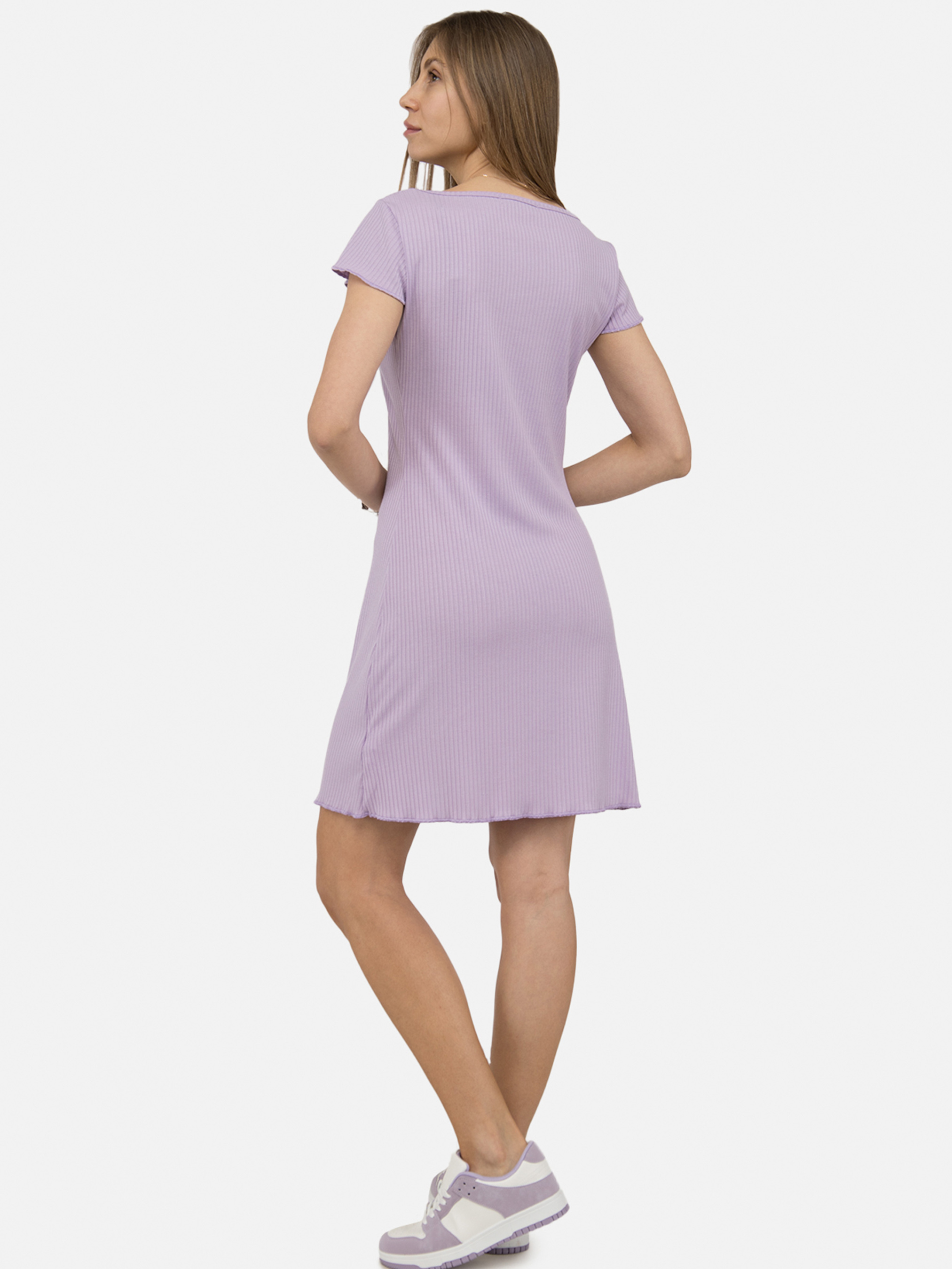Жіноча сукня — класичний та стильний вибір для офіційного заходу або для повсякденного вдягання. Вона забезпечує комфорт і свободу рухів, а також виглядає стильно і модно. Виготовлена з високоякісного матеріалу. Особливості сукні: Колір — бузковий. Фасон: кльош. Довжина: міні. Матеріал виготовлення: трикотаж. Склад матеріалу: 50 % поліестер, 40% бавовна, 10% еластан. Параметри моделі: Зріст: 170 сантиметрів. Розмір: М, український - 46. Країна виробник: Україна.