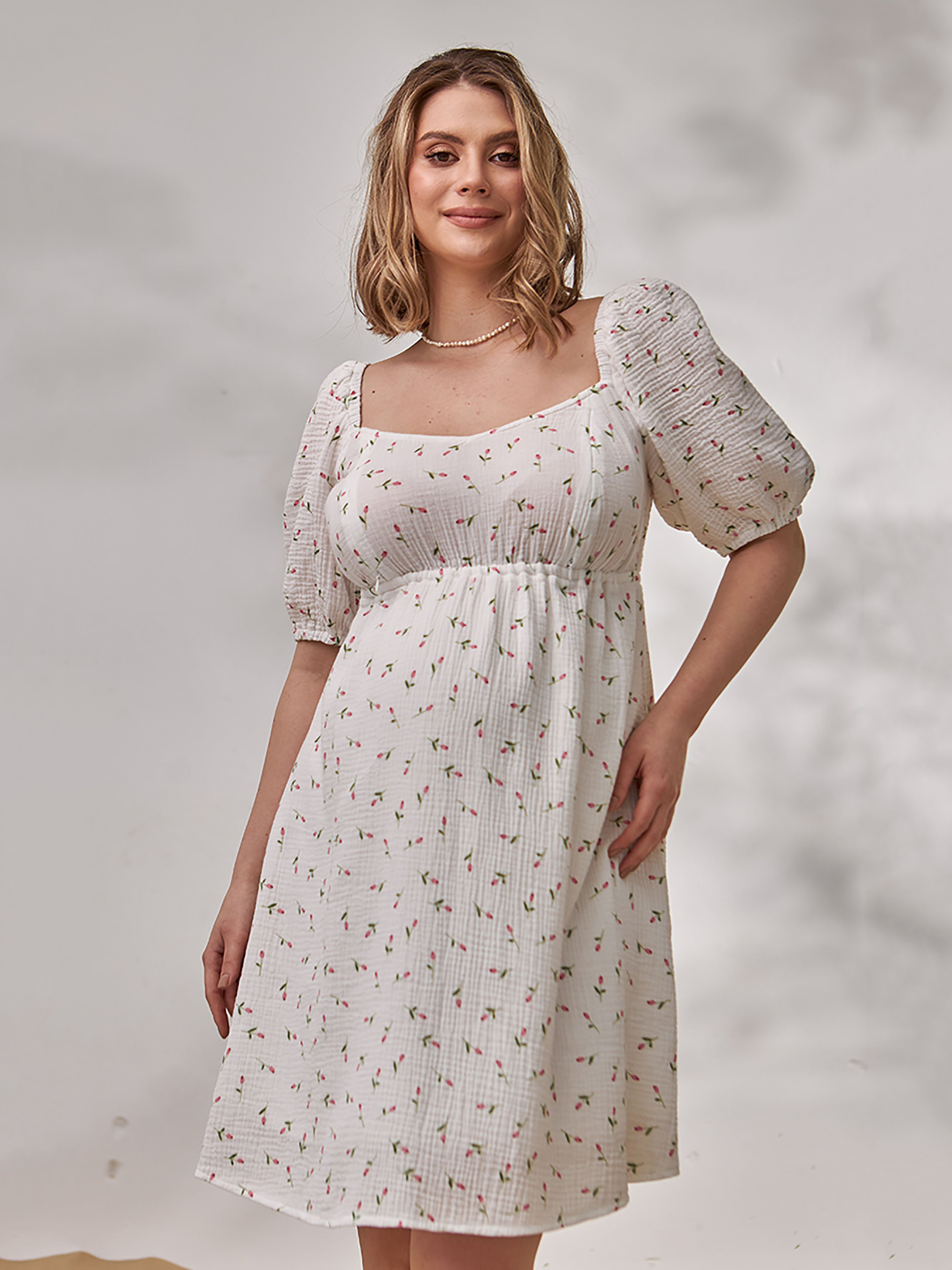 Сукня для вагітних та годуючих з акцентними рукавами-буфами.