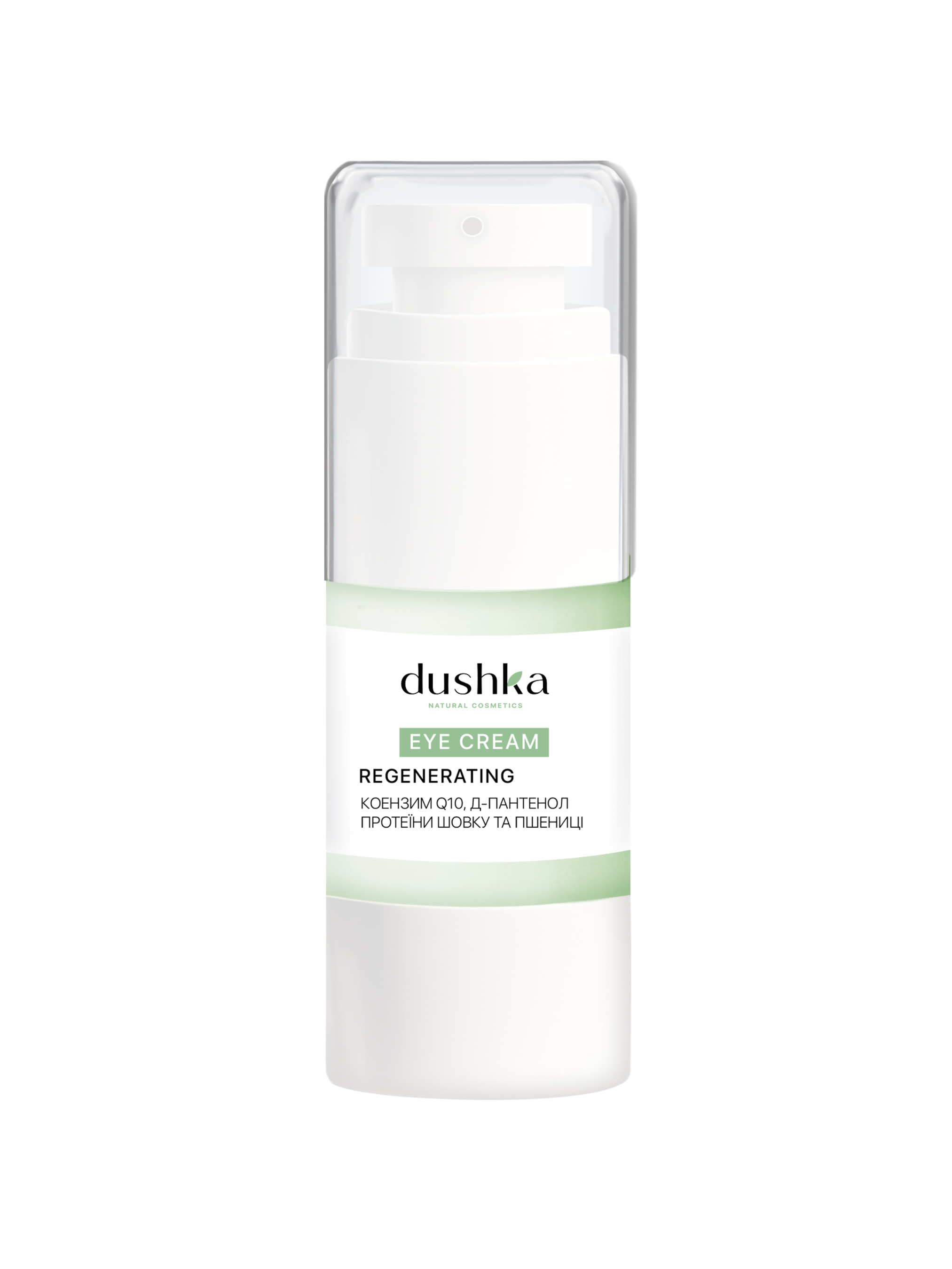 Крем Dushka для догляду за ніжною шкірою навколо очей: забезпечує зволоження, живлення, відновлення та пом'якшення. Містить коензим Q10, біотин, сквалан і Д-пантенол. Стимулює утворення природних колагену та еластину, запобігає появі сухості, покращує пружність і еластичність шкіри, відновлює природний гідроліпідний бар'єр, який захищає шкіру від шкідливих зовнішніх впливів. Для кращого результату рекомендуємо використовувати всі засоби серії «Регенеруюча»: пінка для вмивання, сироватка, крем для обличчя, крем навколо очей. Склад:вода (Aqua), олія мигдальна (Sweet Almond (Prunus Dulcis) Oil), кокосовий зволожувач (Caprylic/Capric Triglyceride), віск емульсійний (Cetearyl Alcohol (and) Polysorbate 60), цетиловий спирт (Cetyl alcohol), олія авокадо (Persea Gratissima Oil), олія лісового горіха (Corylus Avellana Seed Oil), гідрогенізована касторова олія (PEG-40 Hydrogenated Castor Oil), сквалан (Squalane), Д-пантенол (Panthenol), гідролізат протеїнів шовку (Hydrolyzed Silk Protein), гідролізат протеїнів пшениці (Hydrolyzed Wheat Protein), коензим Q10 (Ubiquinone), екологічно чистий консервант (Phenoxyethanol (and) Ethylhexylglycerin), парфумерна композиція (Parfum).