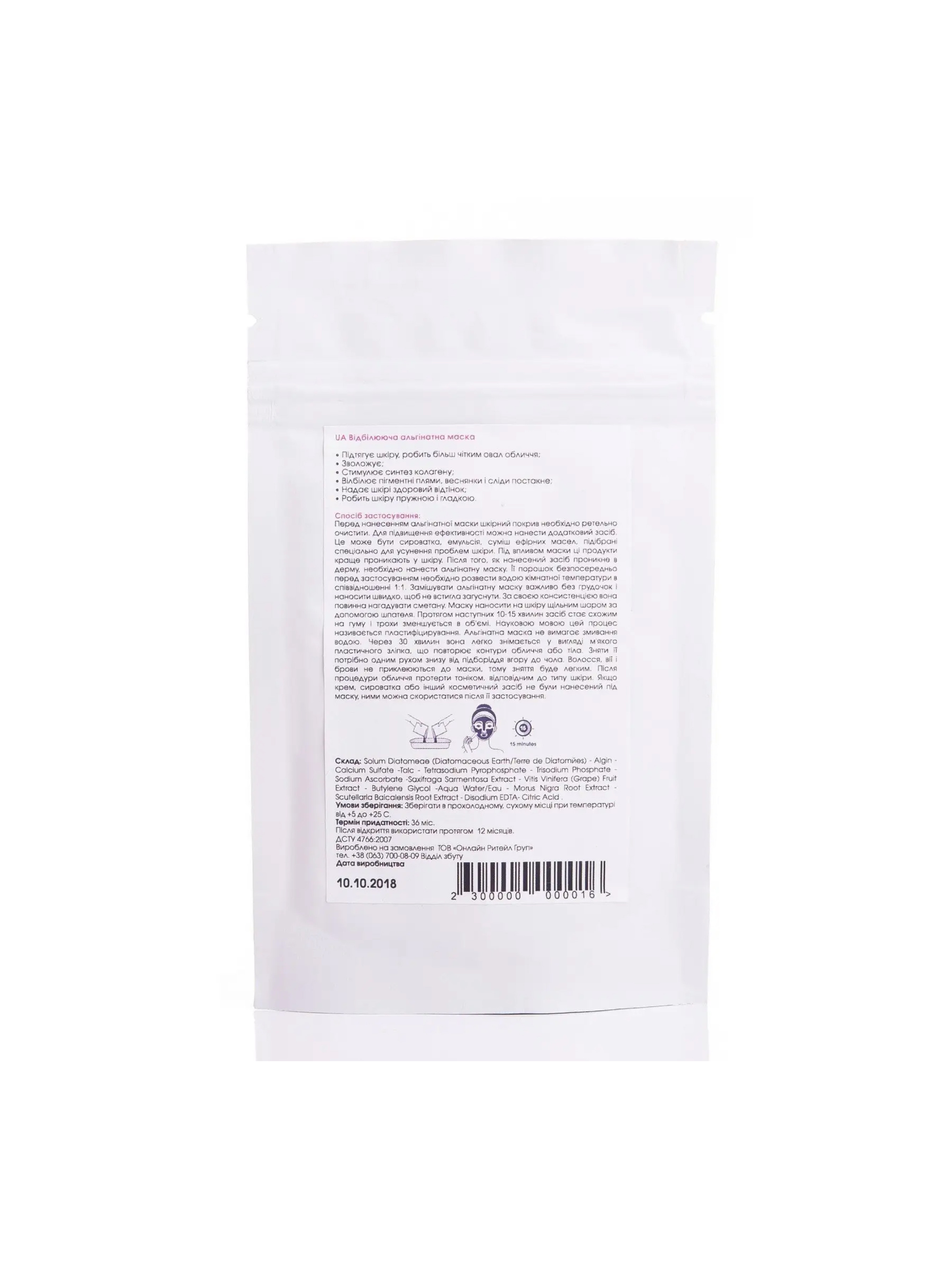 Відбілююча альгінатна маска Hillary модель HI-08-016