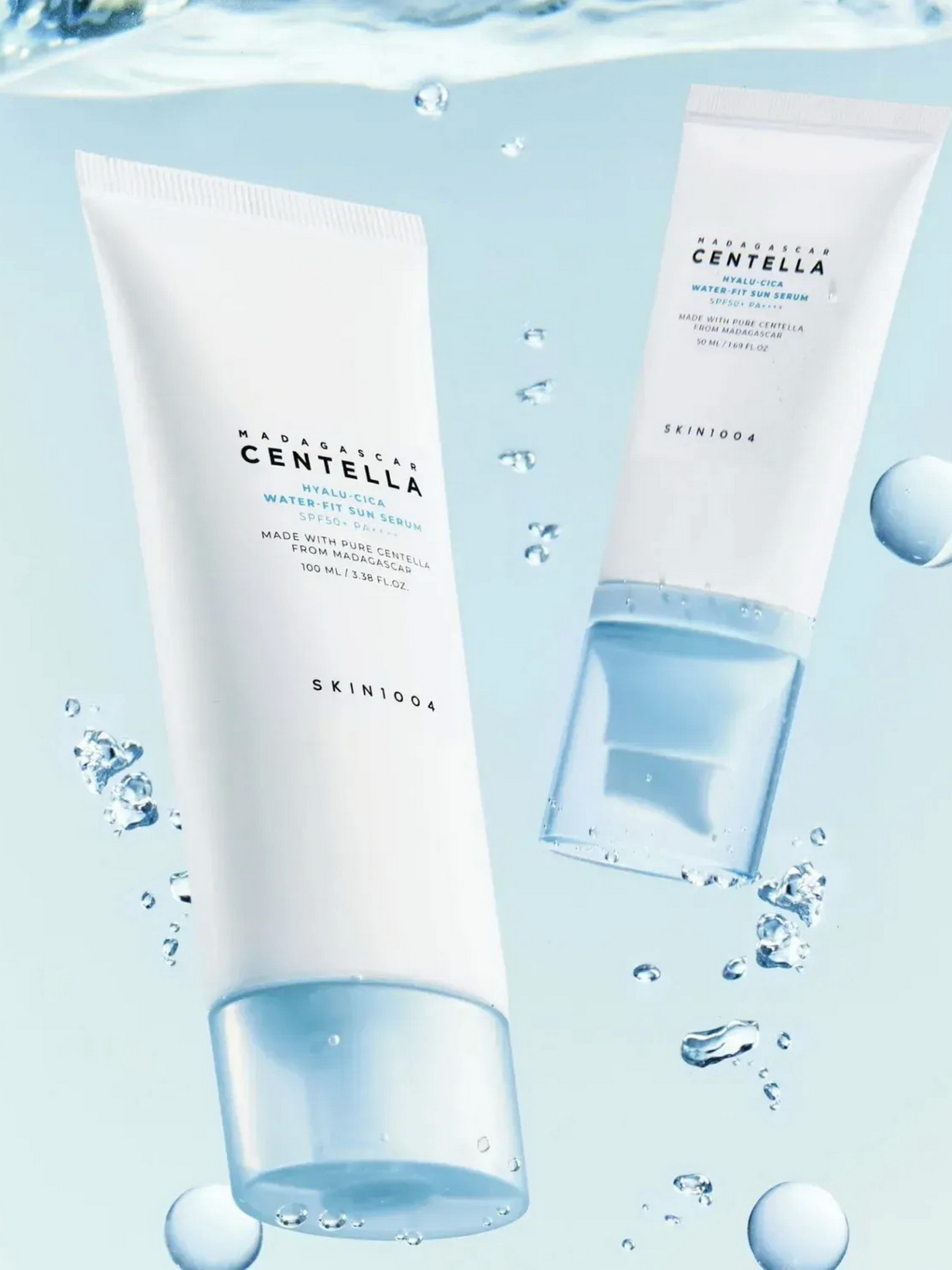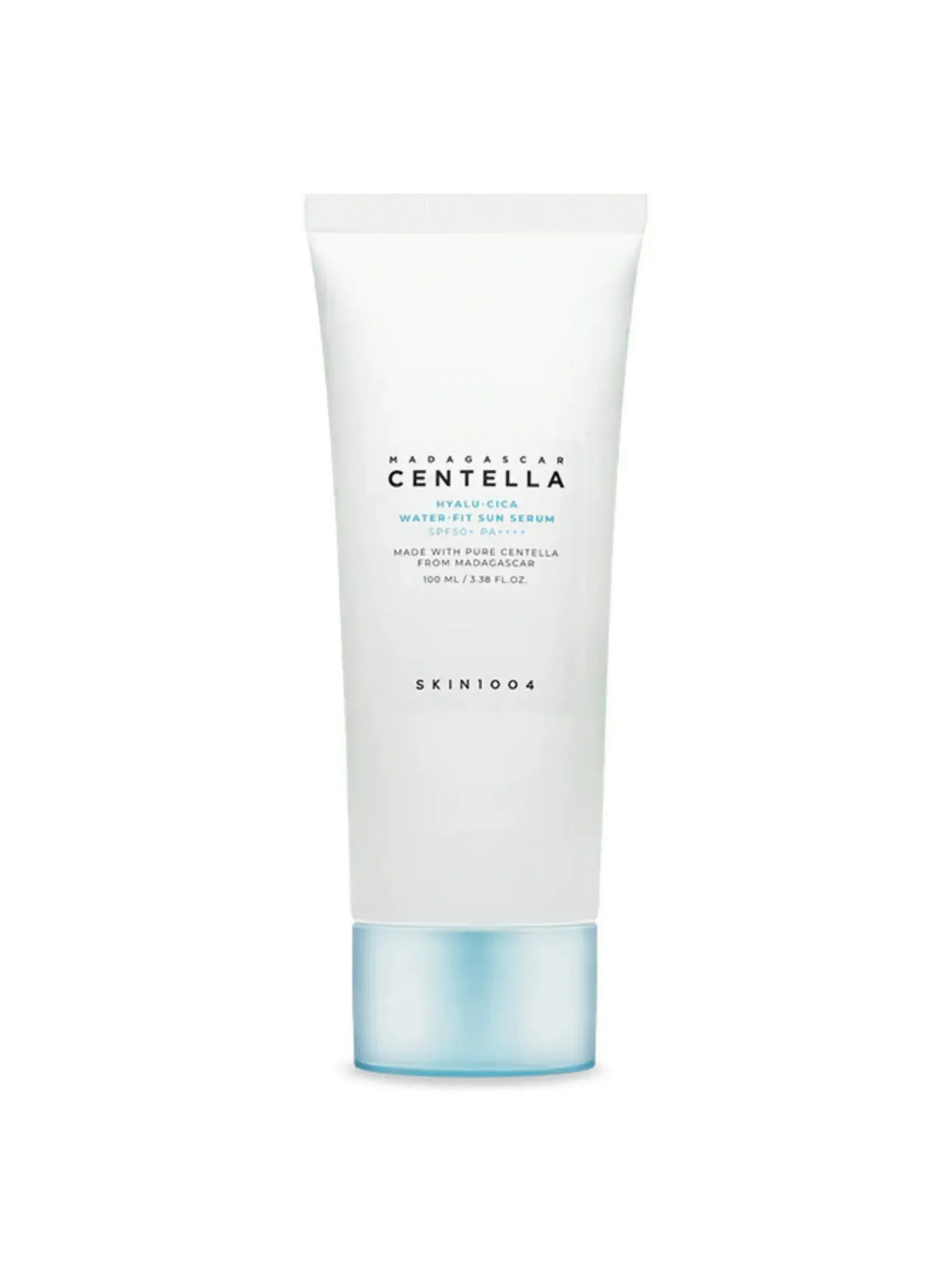 Сонцезахисна сироватка з центеллою та гіалуроновою кислотою Madagascar Centella Hyalu-Cica Water-Fit Sun Serum SPF50+ PA++++ Skin1004 забезпечує інтенсивне зволоження та ефективний захист від UF-А і UF-В променів протягом усього дня. Легка текстура швидко вбирається, не залишаючи липкості або білого нальоту.