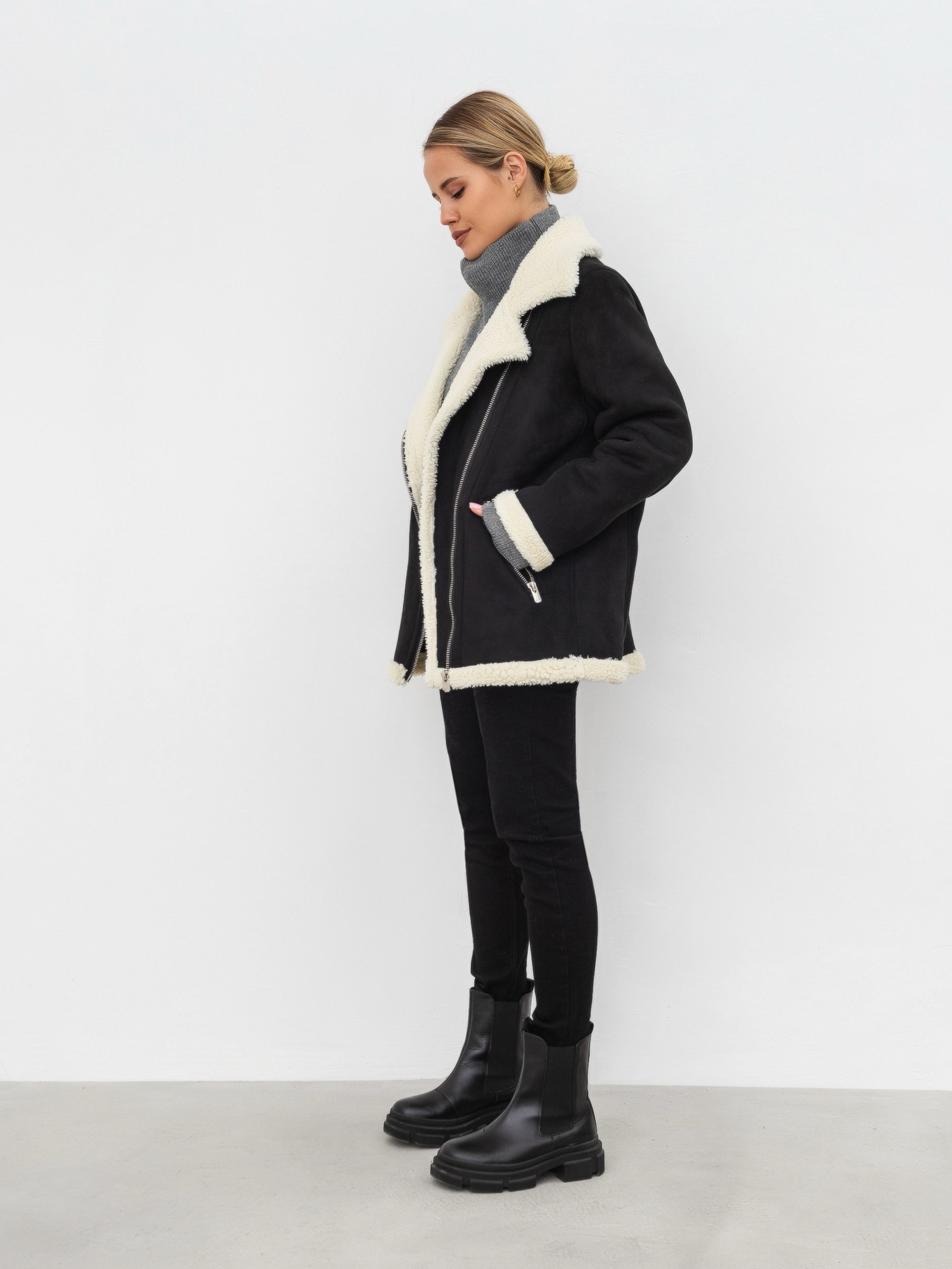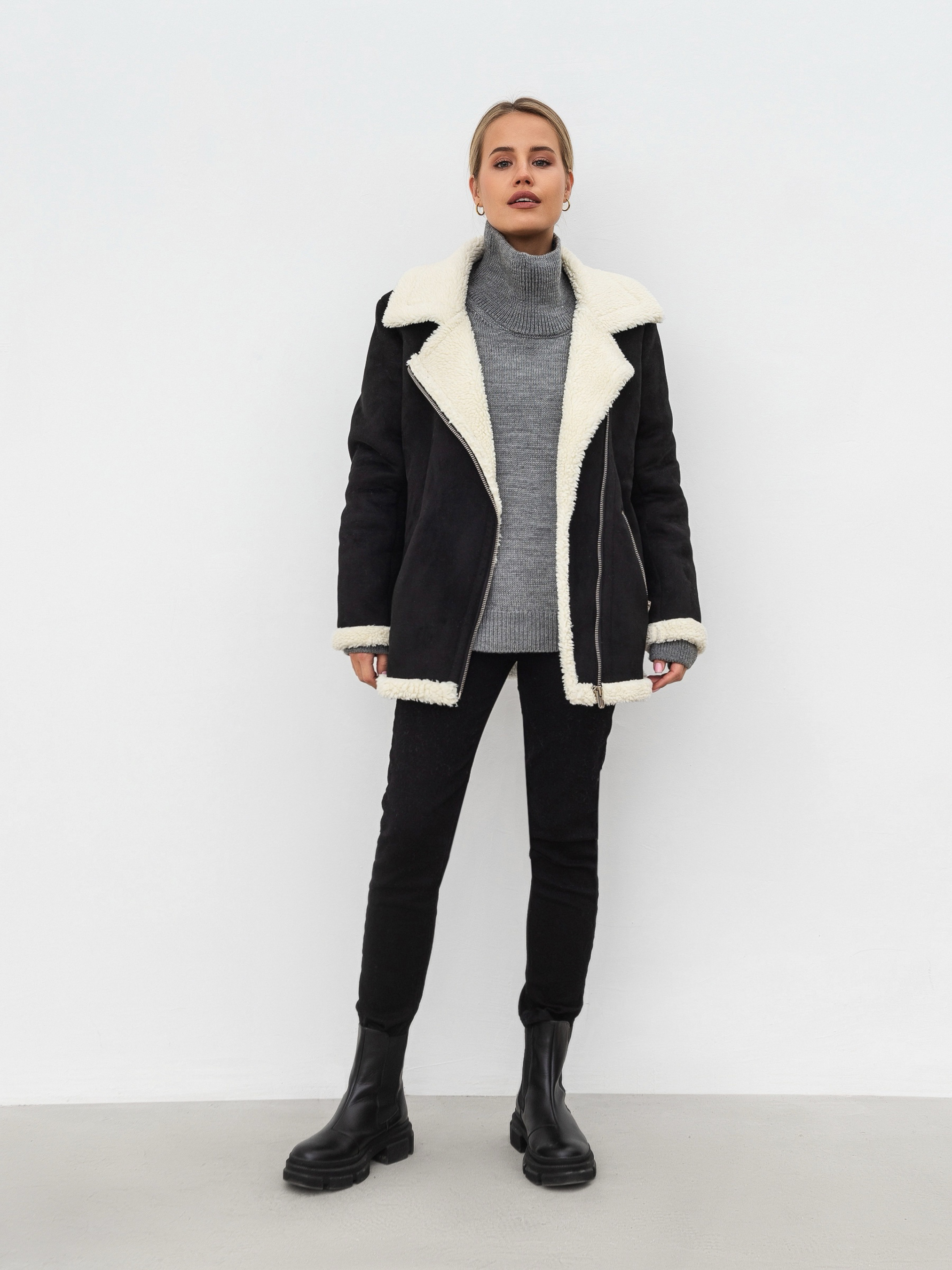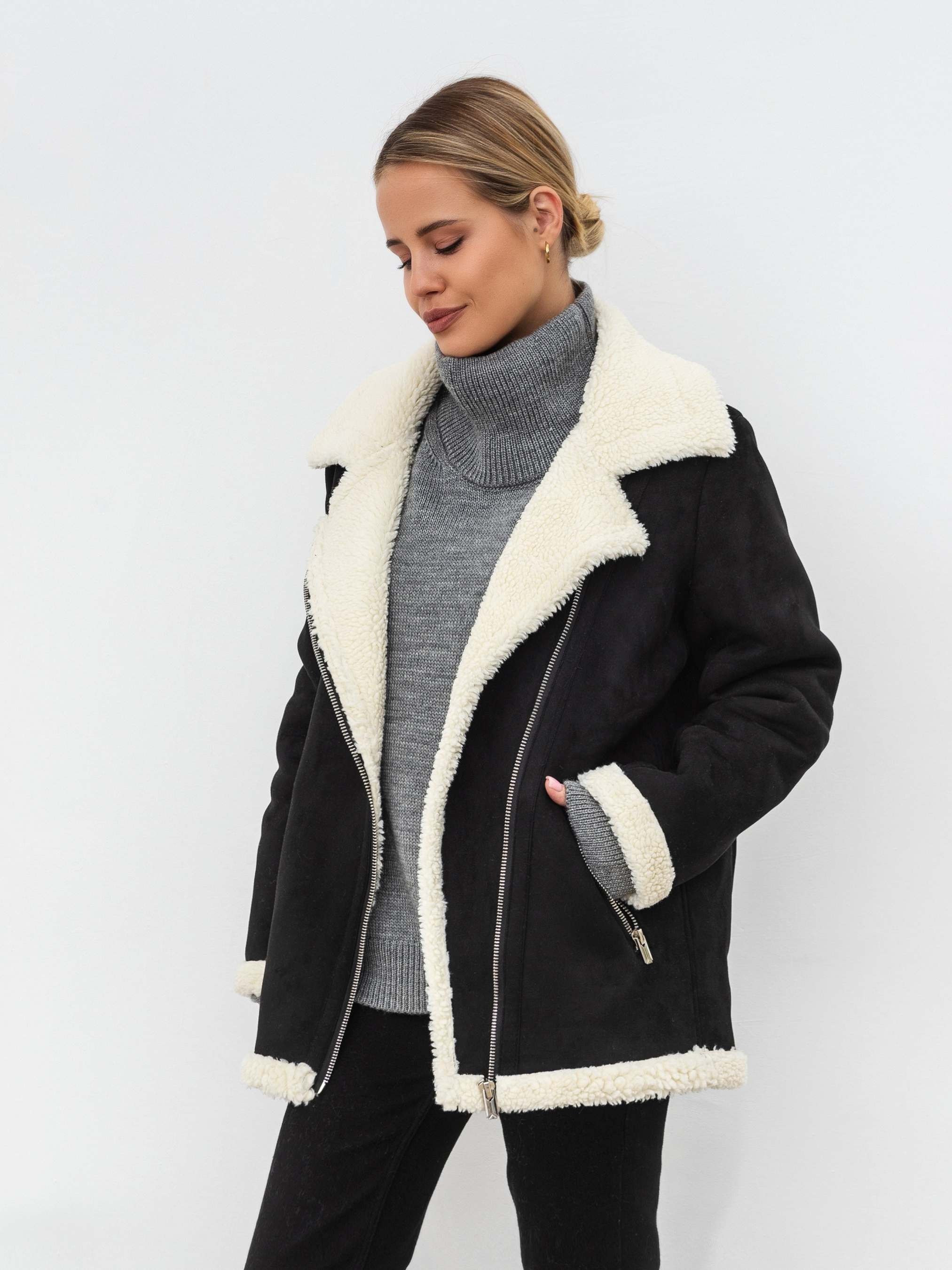 Актуальна модель замшевої дублянки на еко хутрі. Фасон а-ля косуха. Кишеньки на блискавці. Подовжений варіант. XS-S Довжина по спині : 64 см Довжина рукава : 61 см Напівобхват грудей : 54 см Плечі : 43 см Напівобхват талії : 52 см S-M Довжина по спині : 65 см Довжина рукава : 60 см Напівобхват грудей : 56 см Плечі : 45 см Напівобхват талії : 55 см M-L Довжина по спині : 65 см Довжина рукава : 60 см Напівобхват грудей : 56 см Плечі : 46 см Напівобхват талії : 55 см L-XL Довжина по спині : 65 см Довжина рукава : 61 см Напівобхват грудей : 57 см Плечі : 47 см Напівобхват талії : 56 см XL-XXL Довжина по спині : 67 см Довжина рукава : 62 см Напівобхват грудей : 59 см Плечі : 48 см Напівобхват талії : 58 см