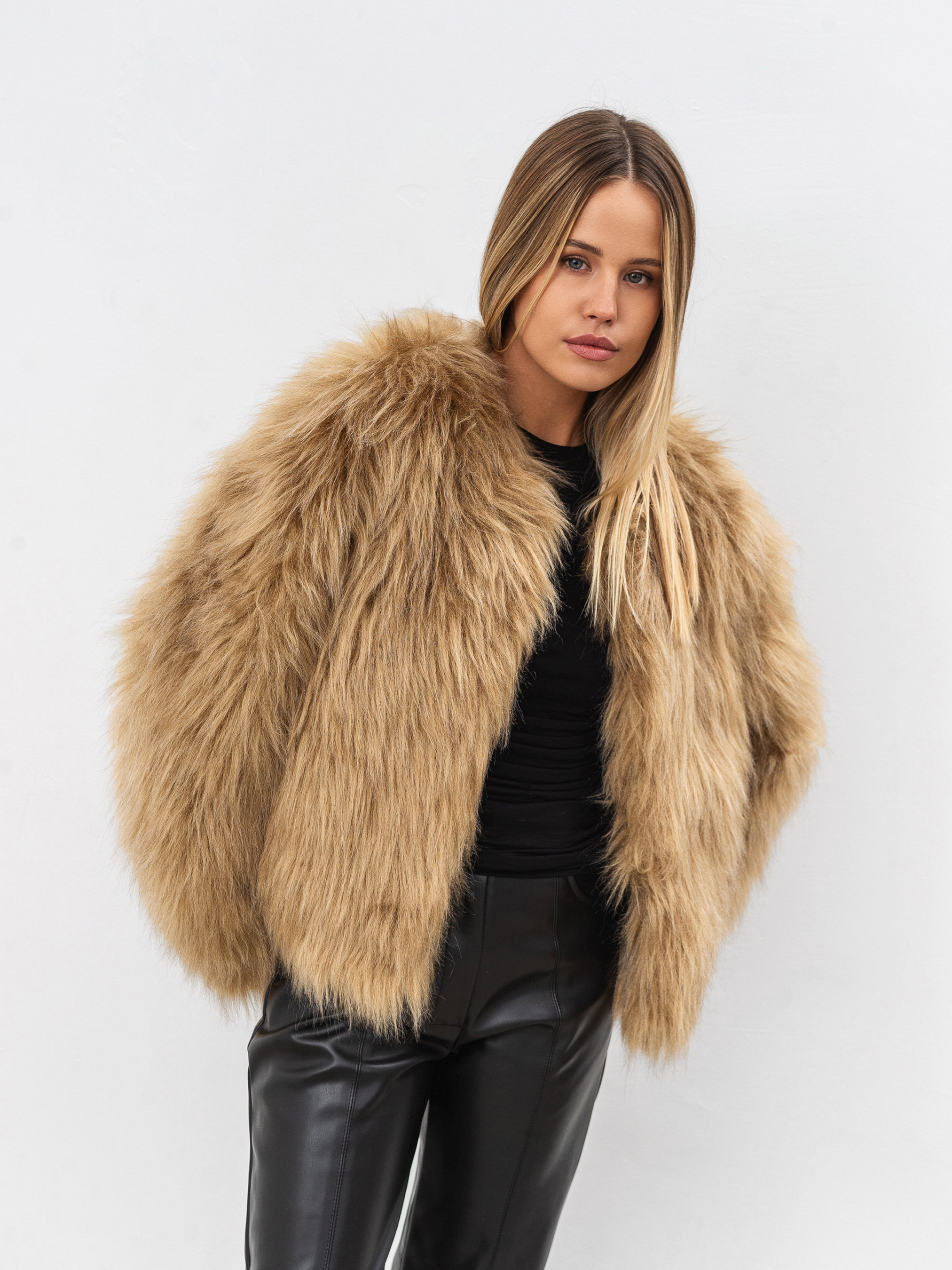 Трендова шубка, з якою луки в холодну погоду вже не лякають. Коротка модель прямого силуету з довгим рукавом. Має підкладку та дві кишеньки. Застібається на ряд гачків. Не має утеплення. Шуба виготовлена зі штучного хутра. Ідеальний варіант для комбінацій з різними брюками, джинсами та високим взуттям (чобітки, ботфорди). Поєднувати можна з шапкою та рукавичками і додавати невелику сумку. ХС-С Довжина по спині : 53 см Довжина рукава : 50 см Напівобхват грудей : 55 см Плечі : 63 см Напівобхват талії : 54 см С-М Довжина по спині : 53 см Довжина рукава : 50 см Напівобхват грудей : 57 см Плечі : 64 см Напівобхват талії : 56 см М-Л Довжина по спині : 54 см Довжина рукава : 50 см Напівобхват грудей : 59 см Плечі : 65 см Напівобхват талії : 58 см Л-ХЛ Довжина по спині : 54 см Довжина рукава : 50 см Напівобхват грудей : 60 см Плечі : 67 см Напівобхват талії : 59 см