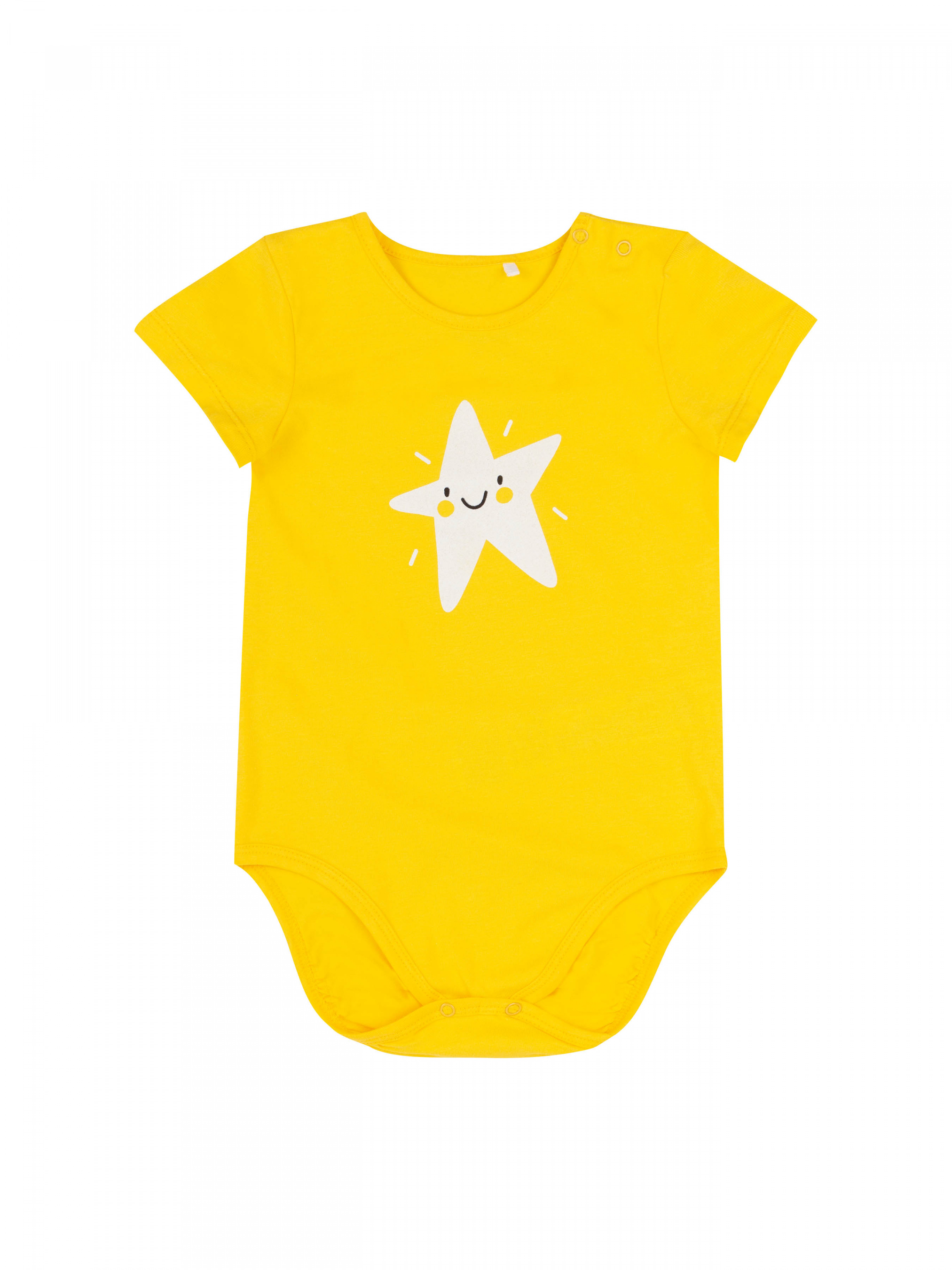 Боді з коротким рукавом для дівчинки. На лівому плечі та внизу кнопки. Тканина еластична. Спереду принт.