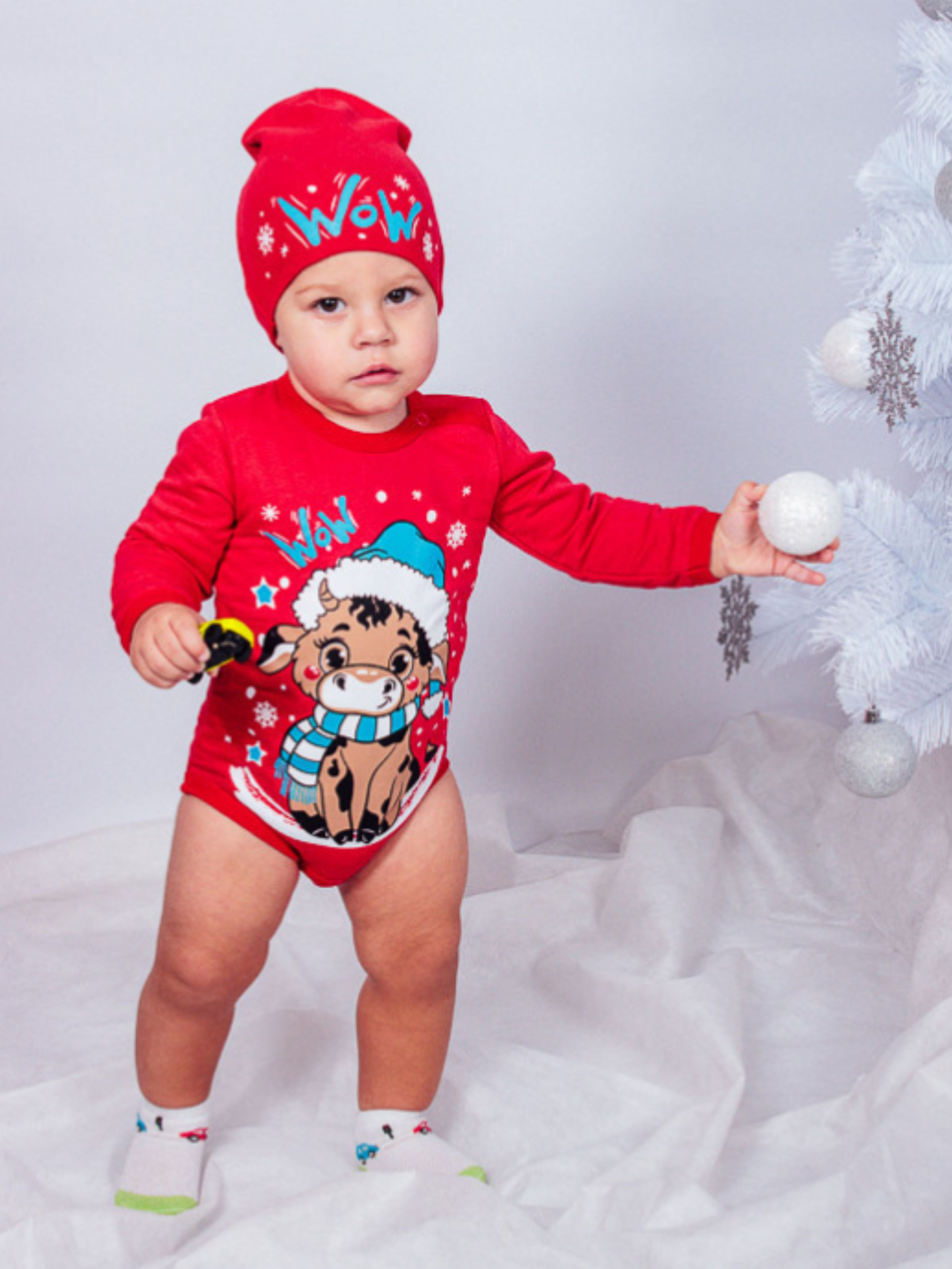 Полотно: начос однотонний стрейч однотонний Склад полотна: начос - 100% бавовна стрейч - 95% бавовна 5% еластан Зріст: 62-74 Ошатне боді з довгим рукавом від відомої української торгової марки Носи Своє - прекрасна обновка для вашої малечі. У ньому дитина буде виглядати мило і кумедно. При цьому ніжний м'який комплект подарує їй відчуття комфорту і легкості. Боді радує дивовижним дизайном. Модель червоного кольору прикрашена яскравим принтом із зображенням мишеняти на шапочці красується новорічний напис. Ошатне рішення зробить кожен образ дівчинки хоч вихідний хоч домашній ефектним і модним. Боді пошито зі 100% бавовни. Це кращий вибір матеріалу для немовляти адже натуральна тканина гіпоалергенна м'яка дуже приємна на дотик. Вона не викликає подразнення. У ній дитина не мерзне і не страждає від спеки. Боді застібається на кнопки по плечики між ніг - окрема система кнопок щоб можна було швидко і легко міняти підгузки. Комплект від відомого українського бренду Носи Своє - це прекрасний вибір одягу для Вашого малятка який порадує дбайливих батьків забавним дизайном і чудовою якістю. Прання перед першим носінням ОБОВ'ЯЗКОВЕ! Прати будь трикотажні вироби потрібно в теплій воді (до 40 градусів) на делікатному режимі прання з використанням рідких порошків. Приємних покупок і веселого святкового настрою!