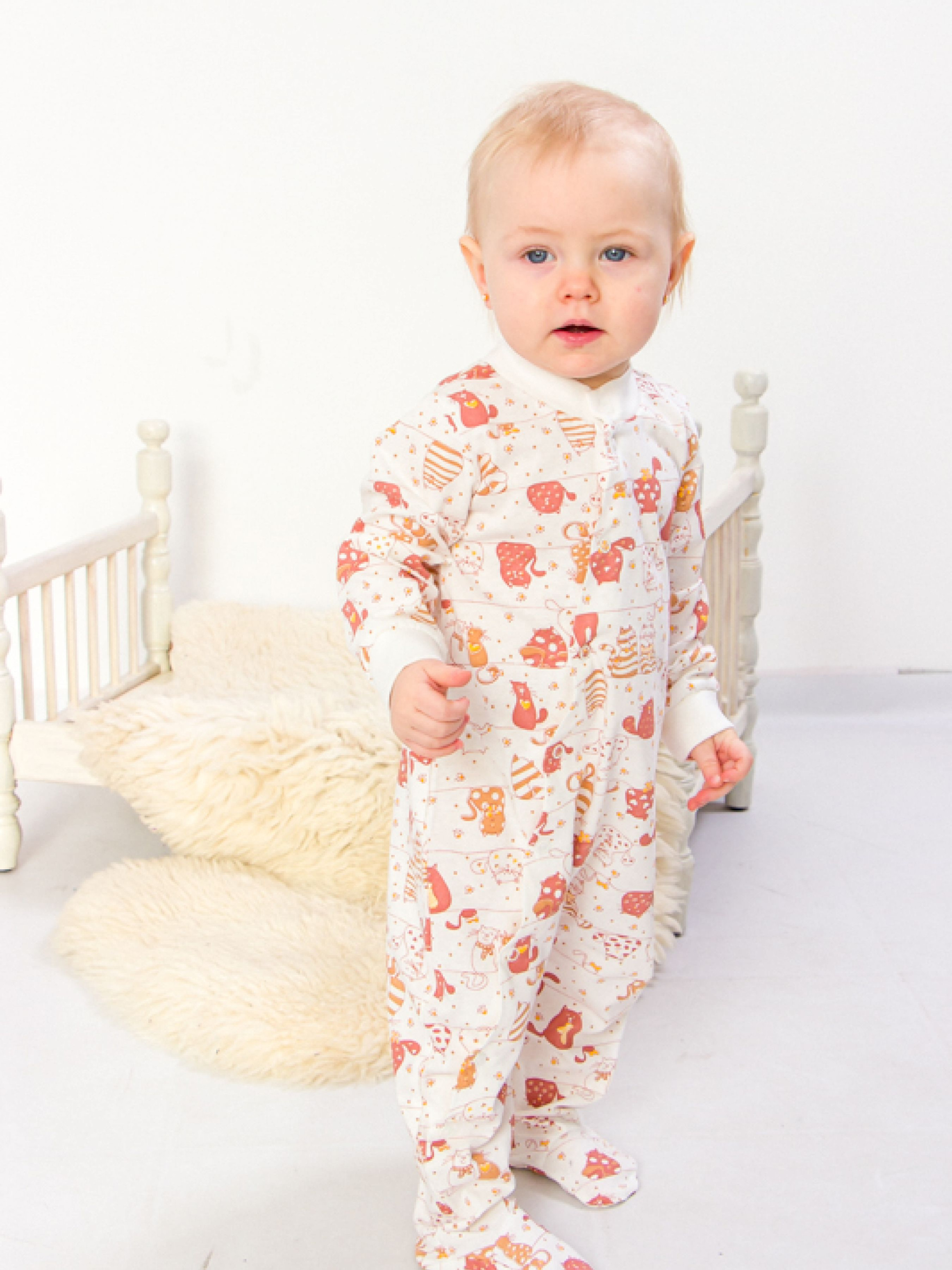 Полотно: кулір принтований Склад полотна: 100% бавовна Зріст: 56-80 Практичний зручний ясельний комбінезон з довгим рукавом з набивного куліру. По всій довжині застібається на кнопки. Модель з закритими ніжками і відкритими ручками. Горловина і манжети можуть бути оброблені рубчиком або стрейчем. На окрему увагу заслуговує принт комбінезону - дуже яскравий і барвистий. Модель призначена для носіння на свіжому повітрі в літню пору. Якість матеріалів бездоганна бавовна відрізняється своїми натуральністю приємлимістью для шкіри і хорошою стійкістю до зносу. Догляд: прання при температурі 30 градусів без попереднього замочування. Вироби з принтом перед пранням необхідно вивернути на виворітний бік барабанна сушка заборонена; прасувати при t не більше 110С; з вивороту; при пранні не змішувати з іншими типами тканин.