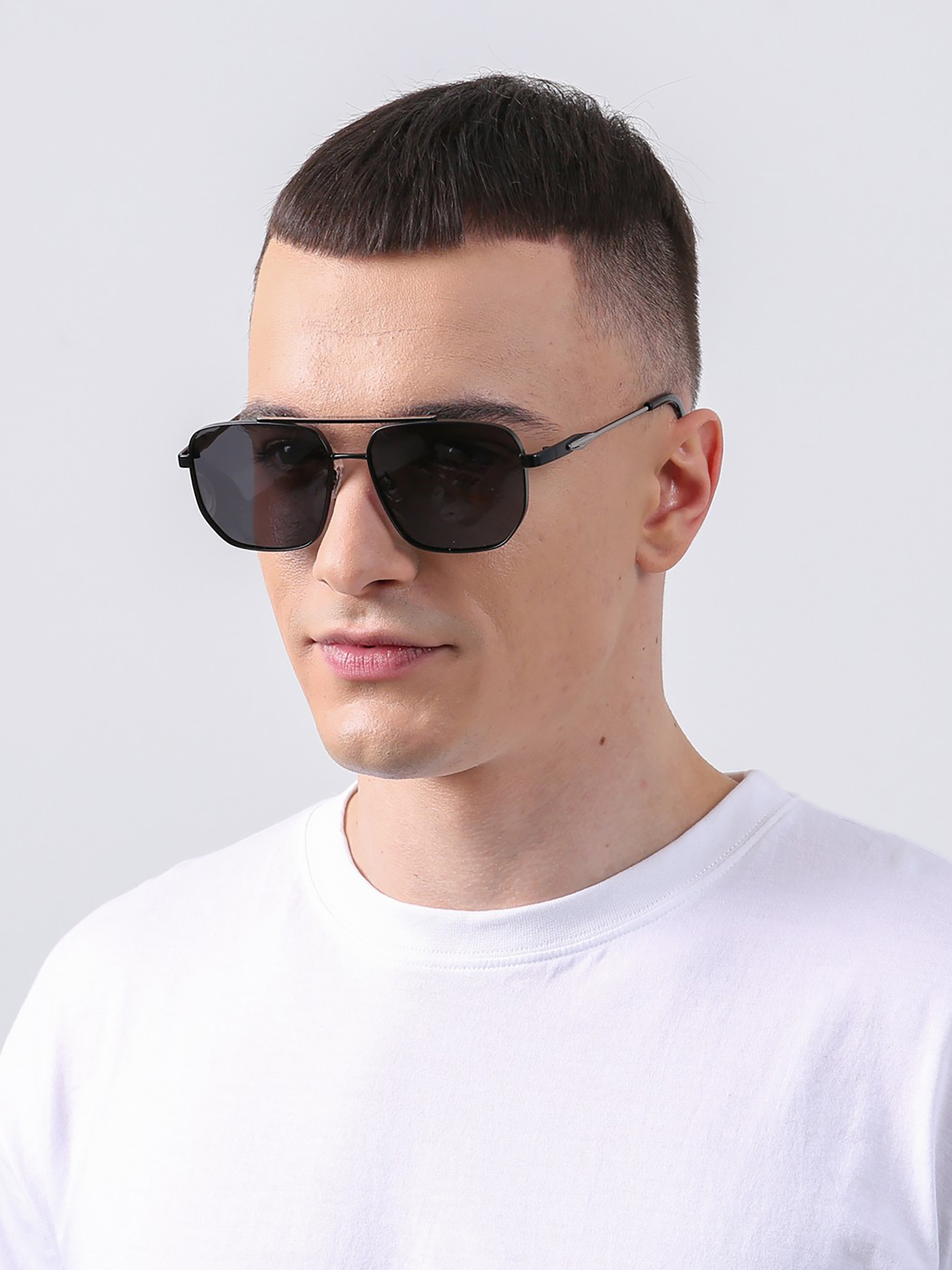 Сонцезахисні окуляри форми фешн. В них чудово все: напівпрозорі оправи, чітко виділені кути та великі форми. Такий аксесуар стане неодмінною частиною модних весняних та літніх образів. Команда Lucky Look рекомендує поєднувати такі окуляри з образами у стилі New Look, романтичному, класичному та ретро-стилях. Вибираючи аксесуари LuckyLOOK, Ви вибираєте комфорт, якість та бездоганний стиль. Оправа: Металева, матова. Колір оправи: Чорний. Форма оправи: Фешн. Лінза: Поляризована, суцільна, УФ захист. Колір лінзи: Сірий. Висота лінзи, см: 6,4. Ширина лінзи, см: 7,1. Довжина завушника, см: 15,5. Ширина містка, см: 2,9. Ширина окулярів, см: 15,8