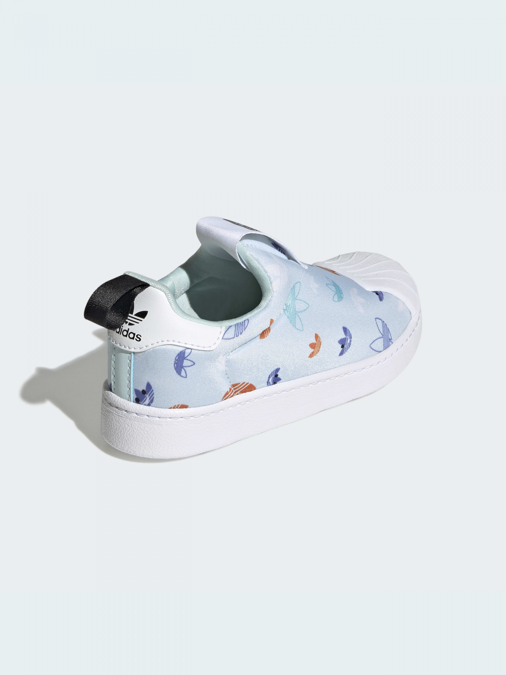 Допоможи їм підбадьоритися з цією кумедною версією кросівок adidas Superstar 360. Діти будуть у захваті від барвистого принту Trefoil по всій поверхні. Легкий амортизуючий матеріал EVA і глибокі гнучкі канавки забезпечують максимальний комфорт і свободу рухів. Верх цієї моделі на 50% складається із перероблених матеріалів і представляє одне з наших рішень щодо скорочення пластикових відходів.
