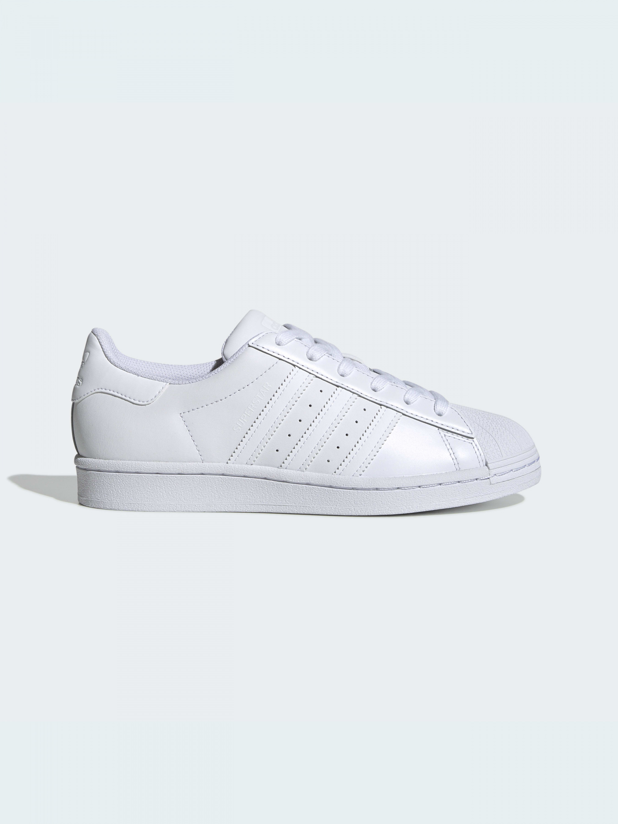 Кросівки adidas Superstar вперше з'явилися на баскетбольних майданчиках в 1970 році. Минуло зовсім небагато часу, перш ніж вони перетворилися зі взуття для спортсменів в ікону вуличної моди. Ця пара виконана в тому ж стилі, з тими ж пропорціями і з тих же матеріалів, які зробили оригінальну модель легендою. Верх із гладкої натуральної шкіри доповнений трьома смужками і накладкою на п'яті. Фінальний штрих - класичний гумовий перед «мушля».