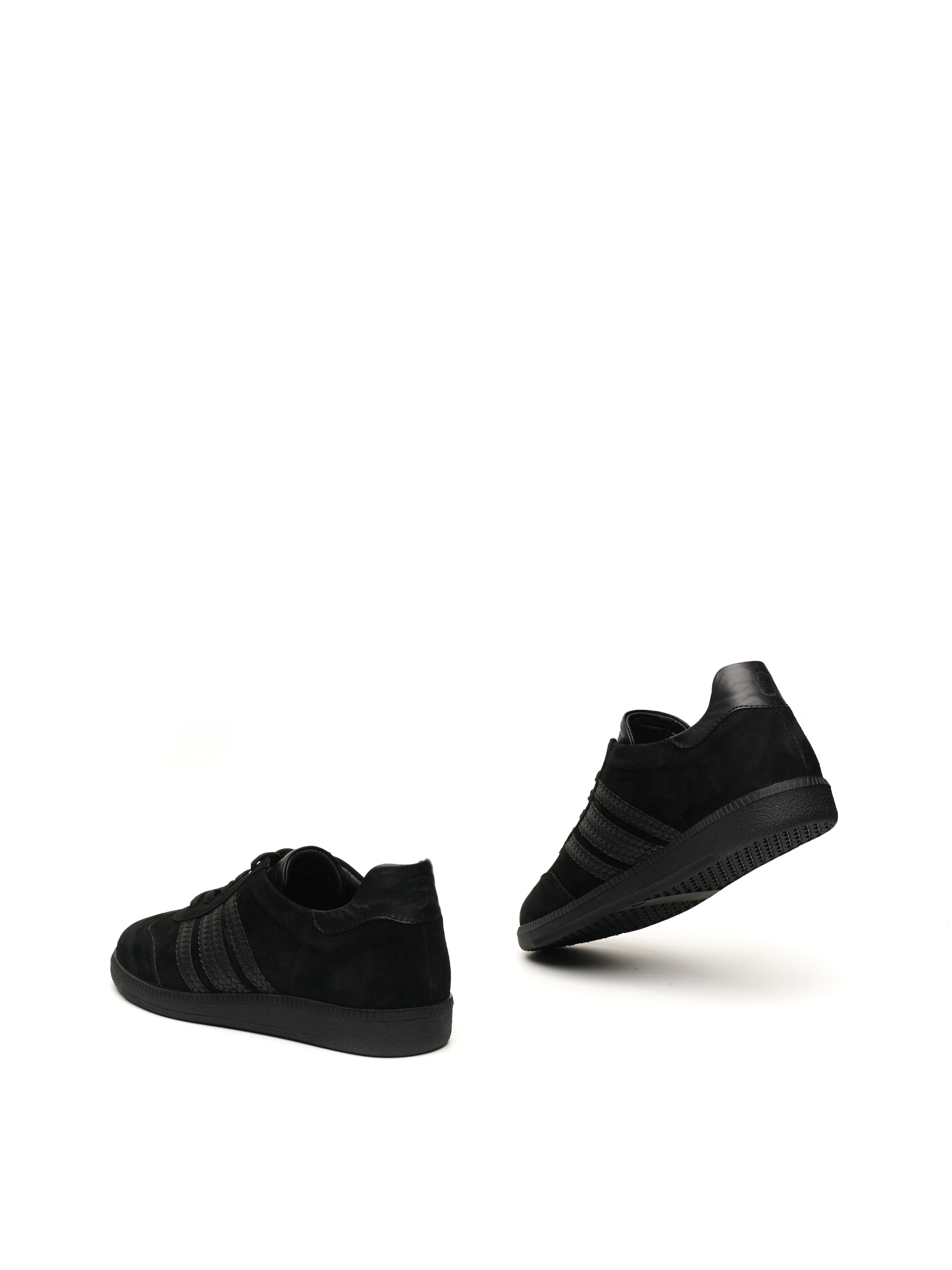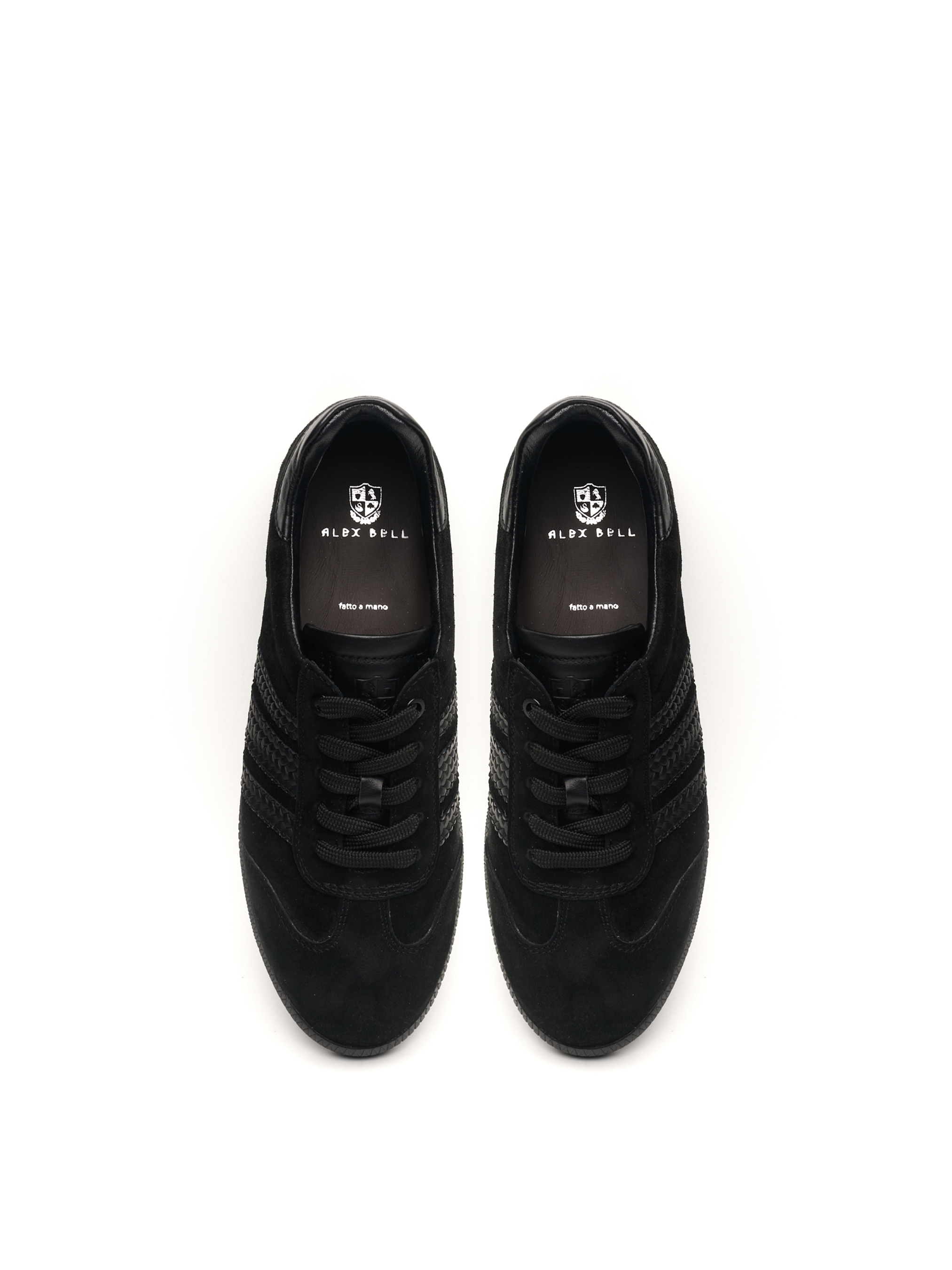 Комфортні кеди з натуральної замші чорного кольору на шнурівці, мають усе необхідне, щоб стати базовою парою взуття. Ергономічна підошва подбають про легкість ходи навіть за тривалого носіння, а класичне дизайнерське рішення дасть змогу створити з цією парою як класичний look, так і образ у міському стилі. Кеди пасуватимуть до романтичної сукні та вдало поєднуватимуться з джинсами. Чорний колір та авторський стиль ALEX BELL обов'язково виділять стильну власницю цієї пари серед інших.