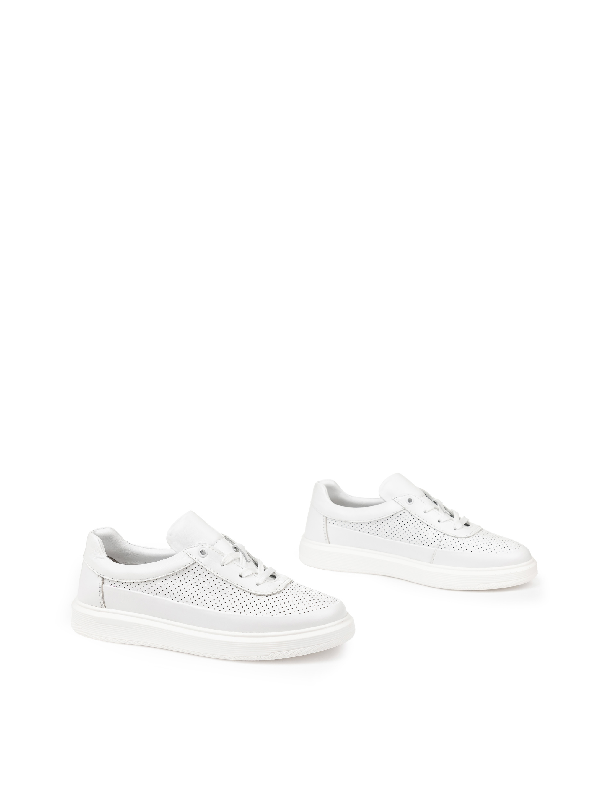 Універсальна модель білосніжних кед, яка гармонійно впишеться в образ ділового, міського, спортивного стилю. Округлі лінії додають взуттю жіночності, а трендова висока підошва вигідно підкреслює довжину ніг. Такі кеди чудово поєднуються як із романтичним платтям та класичним піджаком, так і з діловими укороченими брюками або джинсами. Завдяки ергономічності в таких кедах вам буде завжди зручно,якщо ви живете активним життям та багато пересуваєтесь. Цю модель без перебільшення можна назвати базовою у вашому гардеробі. Привертає увагу якість оброблення швів та цікаве додавання перфорації.
