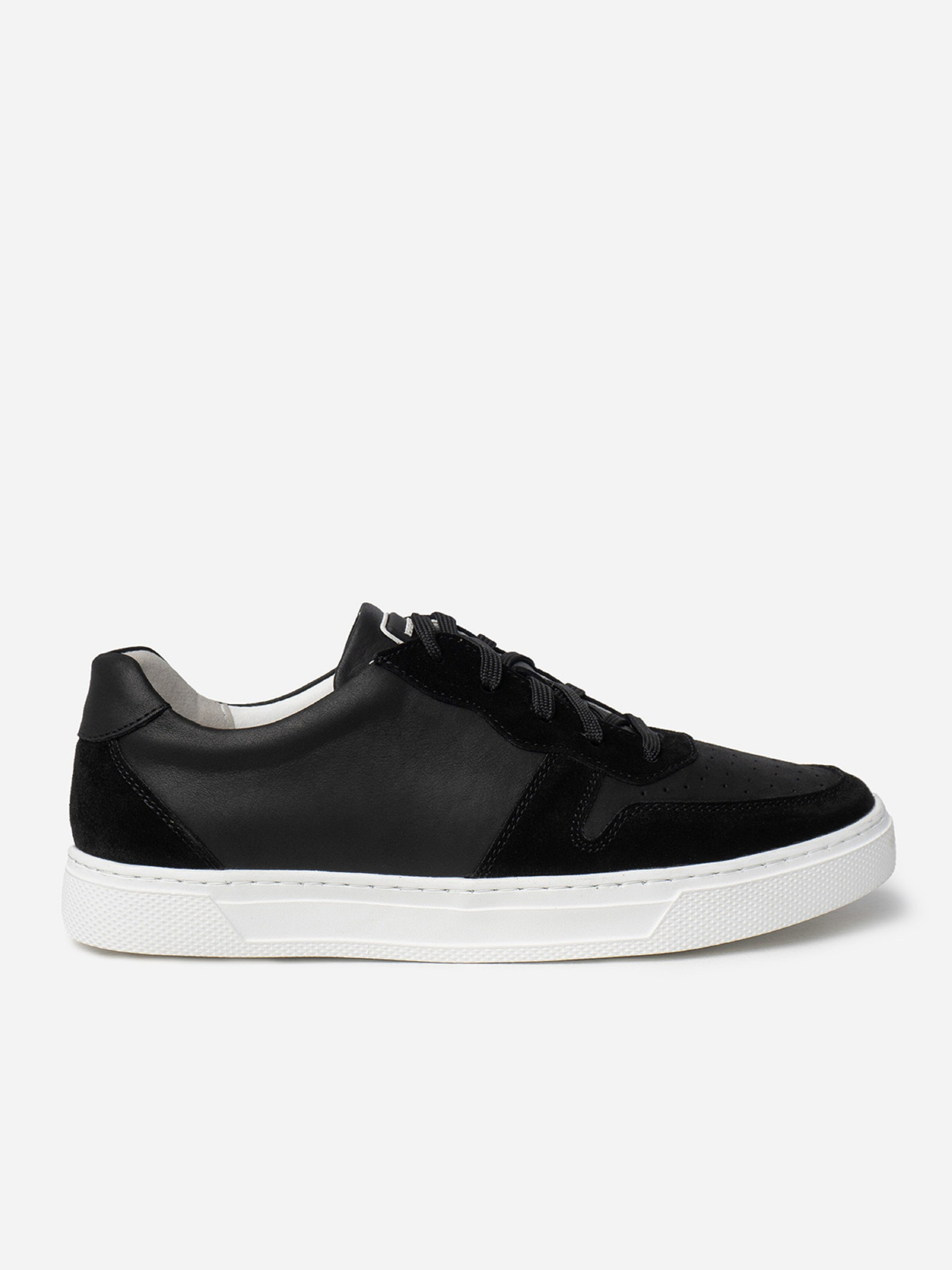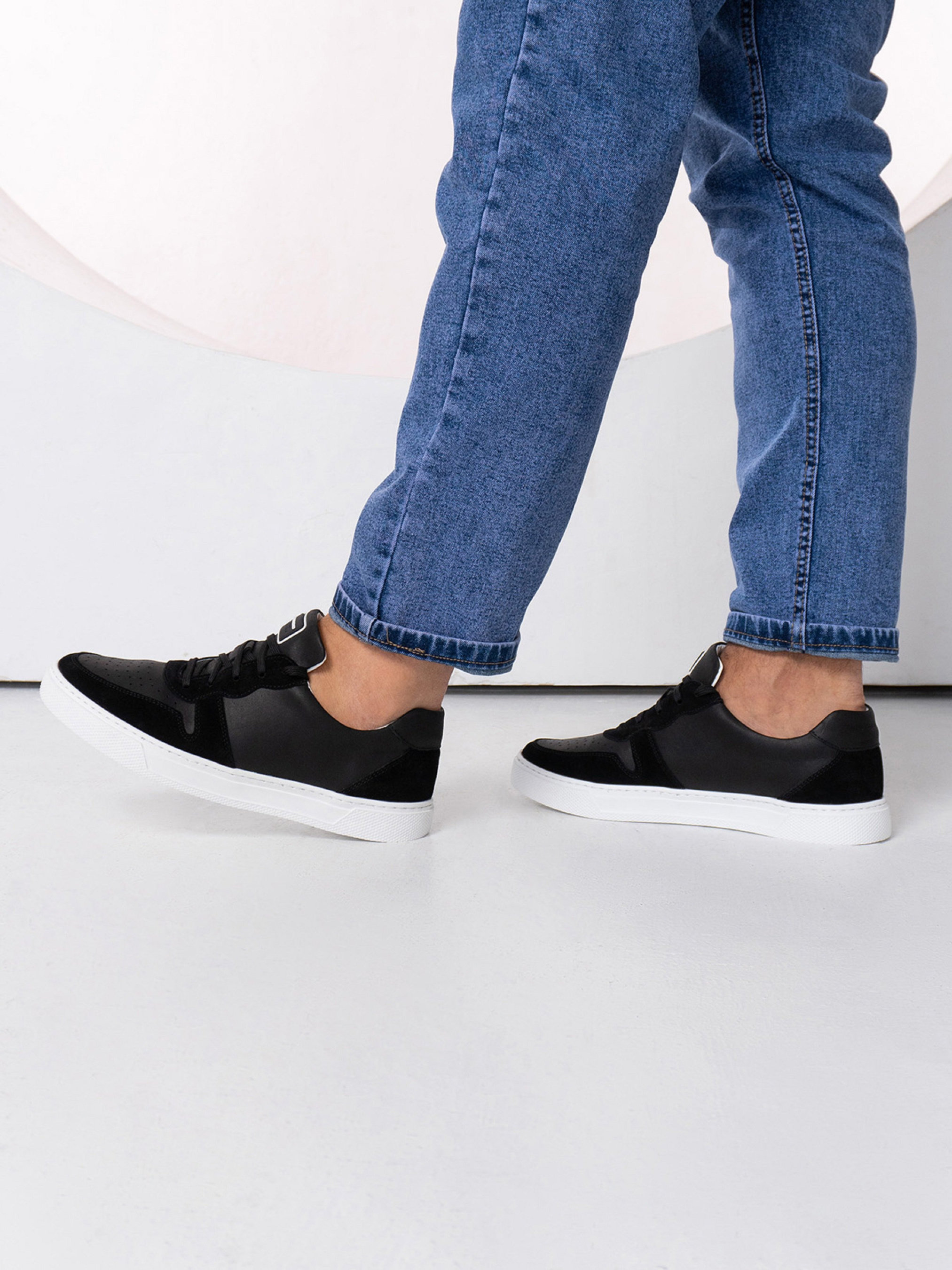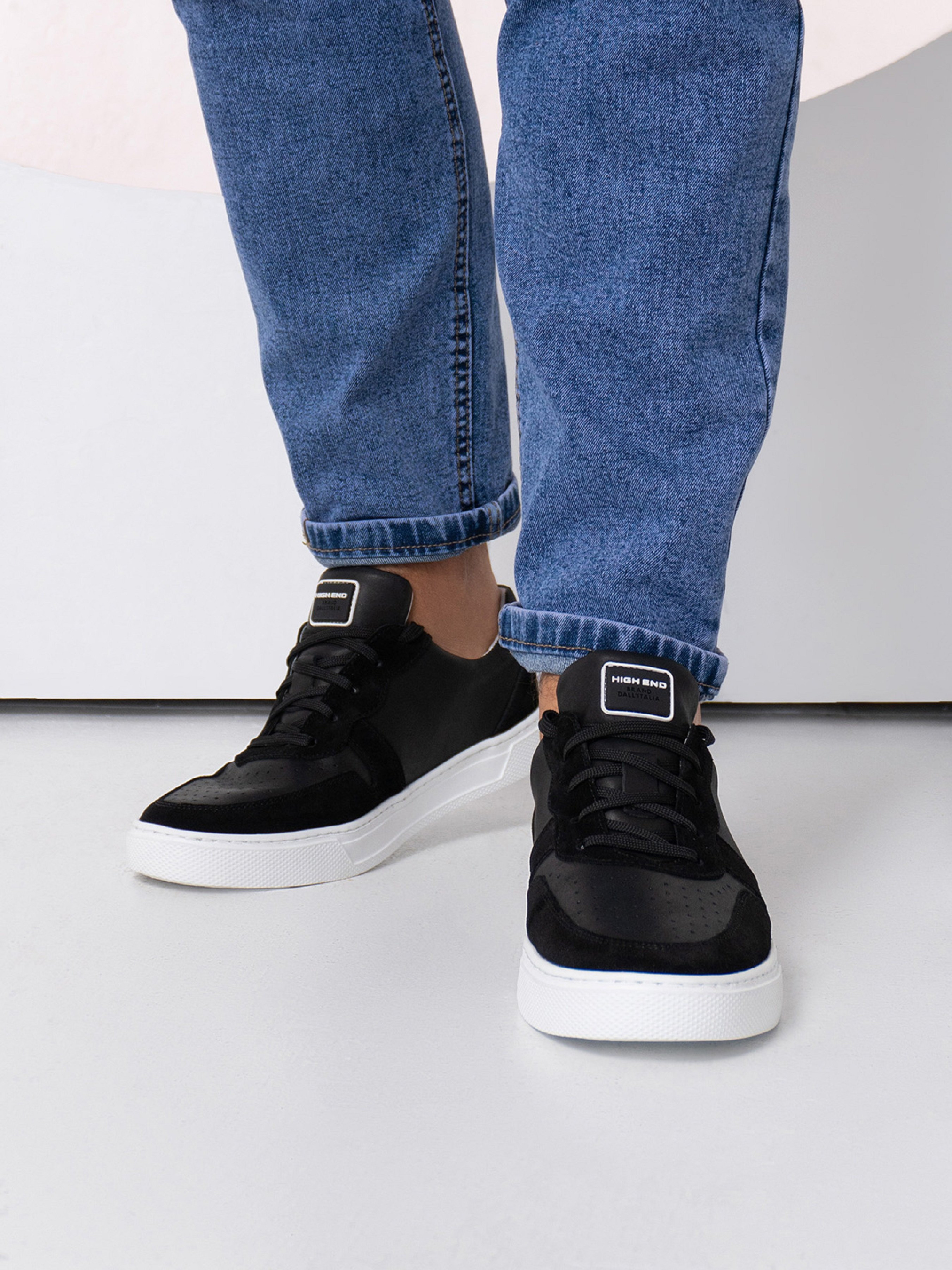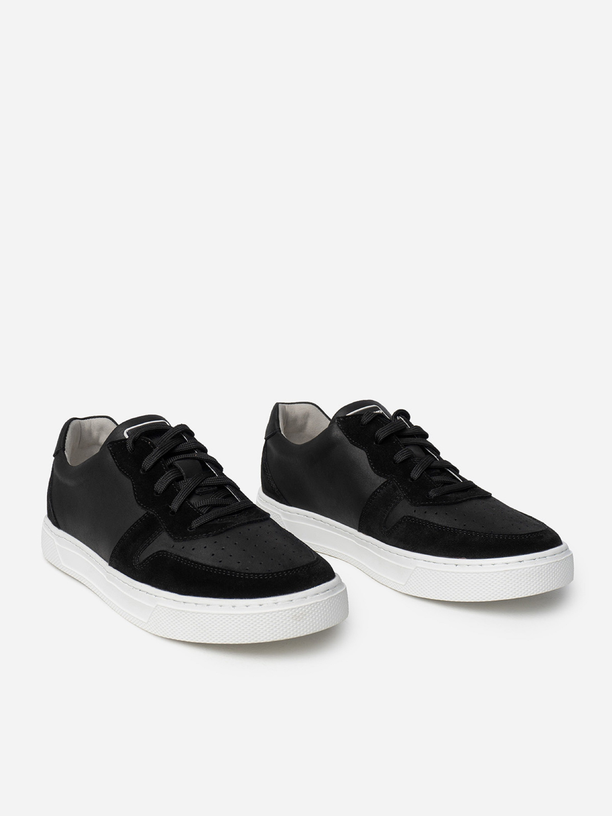 Чорні комбіновані кеди з натурального нубуку та замші. Модель на шнурівці, з нашивкою на язичці та перфорцією. Виріб на плоскій підошві зі шкіряною підкладкою. Матеріал верху: натуральна шкіра (нубук)/натуральна замша Підклад: натуральна шкіра Підошва: EVA (Ева) Висота підошви: 3 см та 2,5 см. Заміри: 39 (25,5), 40 (26), 41 (26,5), 42 (27), 43 (27,5), 44 (28), 45 (28,5).