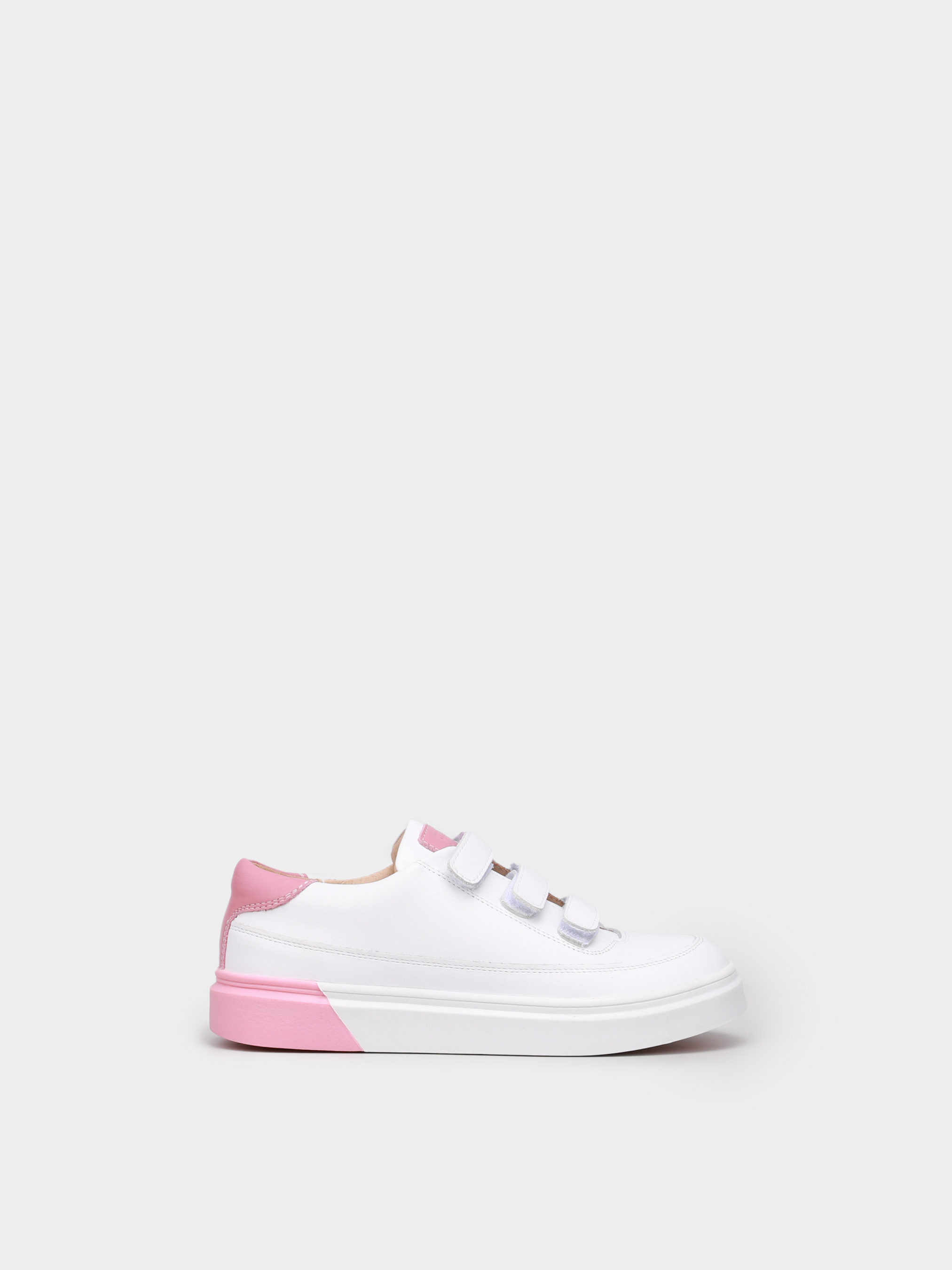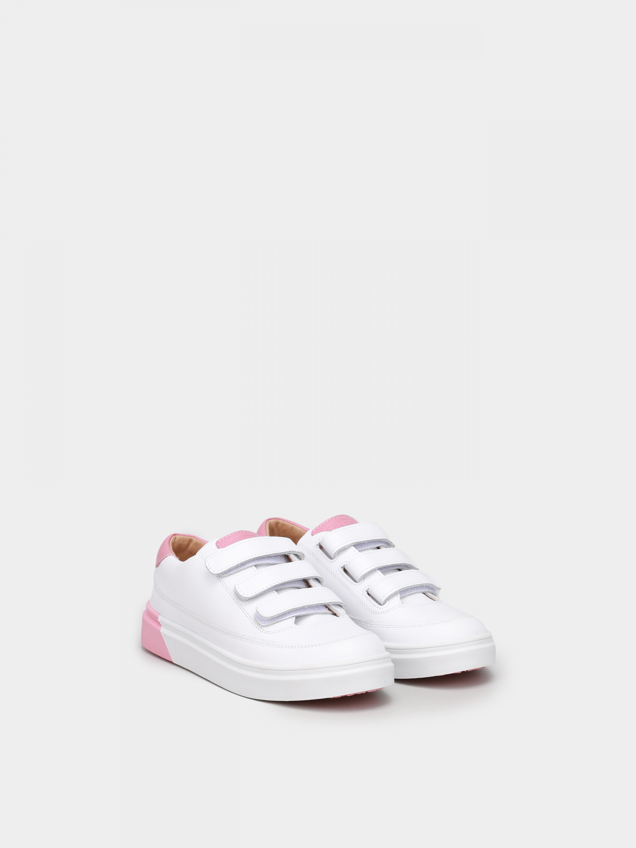 Білі кеди - вічна класика, це мастхев весняно-літнього сезону і абсолютно універсальна і незамінна модель будь-якого гардероба. У даній моделі верх виконаний з м'якої шкіри і доповнений контрастними шкіряним підкладом і вставками рожевого кольору на манжеті, язичку та підошві. А три липучки забезпечують, крім комфортної фіксації на ніжці, модний і стильний вигляд