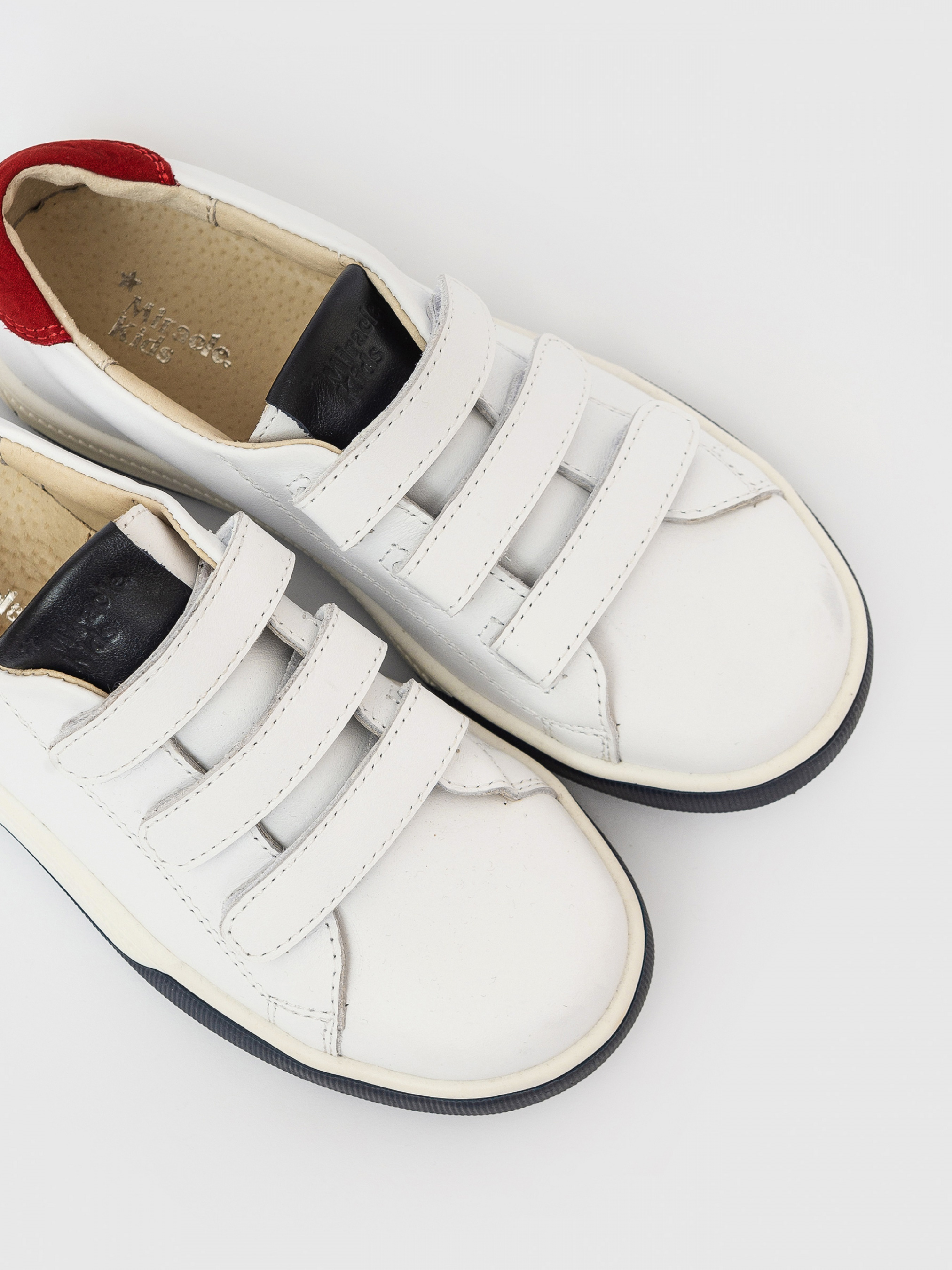 Кеди - вічна класика, абсолютно універсальний та незамінний вид взуття. Білі кеди на липучках, доповнені вставками синьо-червоного кольору - хіт, який обожнюють діти та обирають для них дорослі.