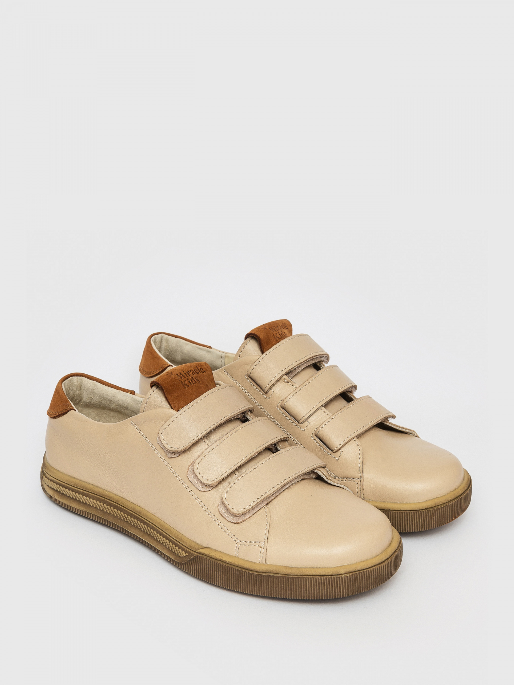 Кеди - вічна класика, абсолютно універсальний та незамінний вид взуття. Бежеві кеди на липучках, доповнені вставками коричневого кольору - хіт, який обожнюють діти та обирають для них дорослі.