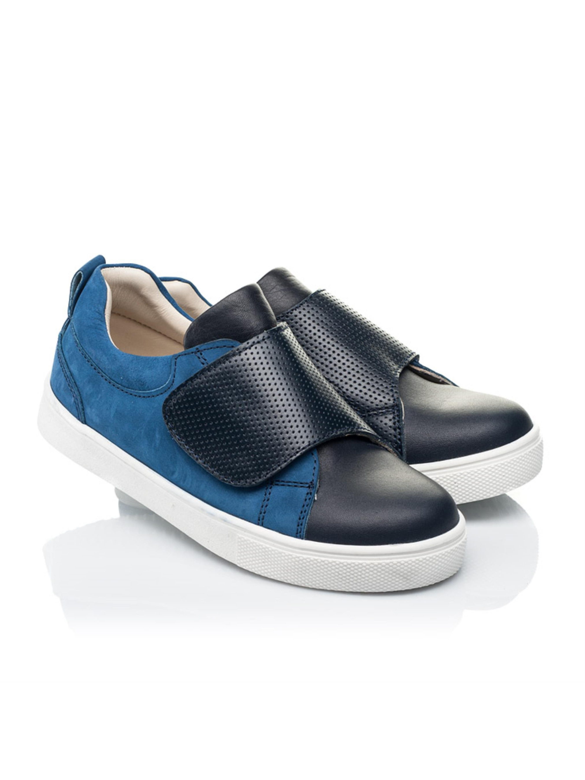 Ви теж надаєте перевагу спортивному взуттю? Саме для Вашого хлопчика створено таку неповторну пару кед. Дитячі кеди для хлопчика створено в комбінації натурального нубука та шкіри синього кольору двох відтінків. Матеріал устілки - натуральна шкіра. Одна широка липучка з натуральної шкіри пришвидшить процес взування та забезпечить надійну фіксацію на ніжці. Кеди мають жорсткий задник, супінатор та анатомічну устілку, щоб дитячим стопам було максимально комфортно. Підошва в кедах легка та гнучка, виготовлена з якісної термопластичної резини.