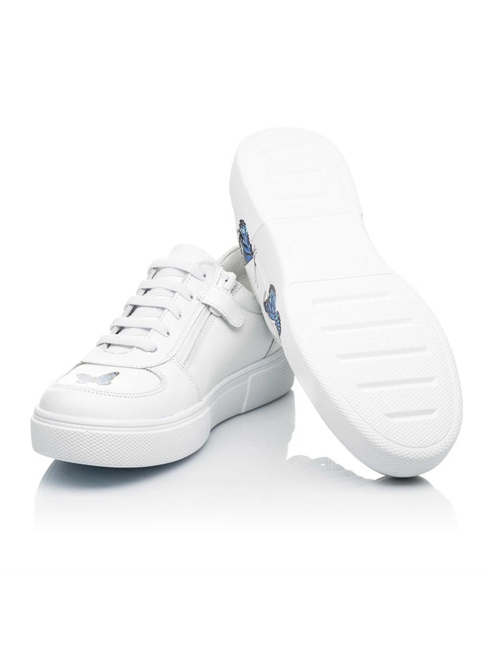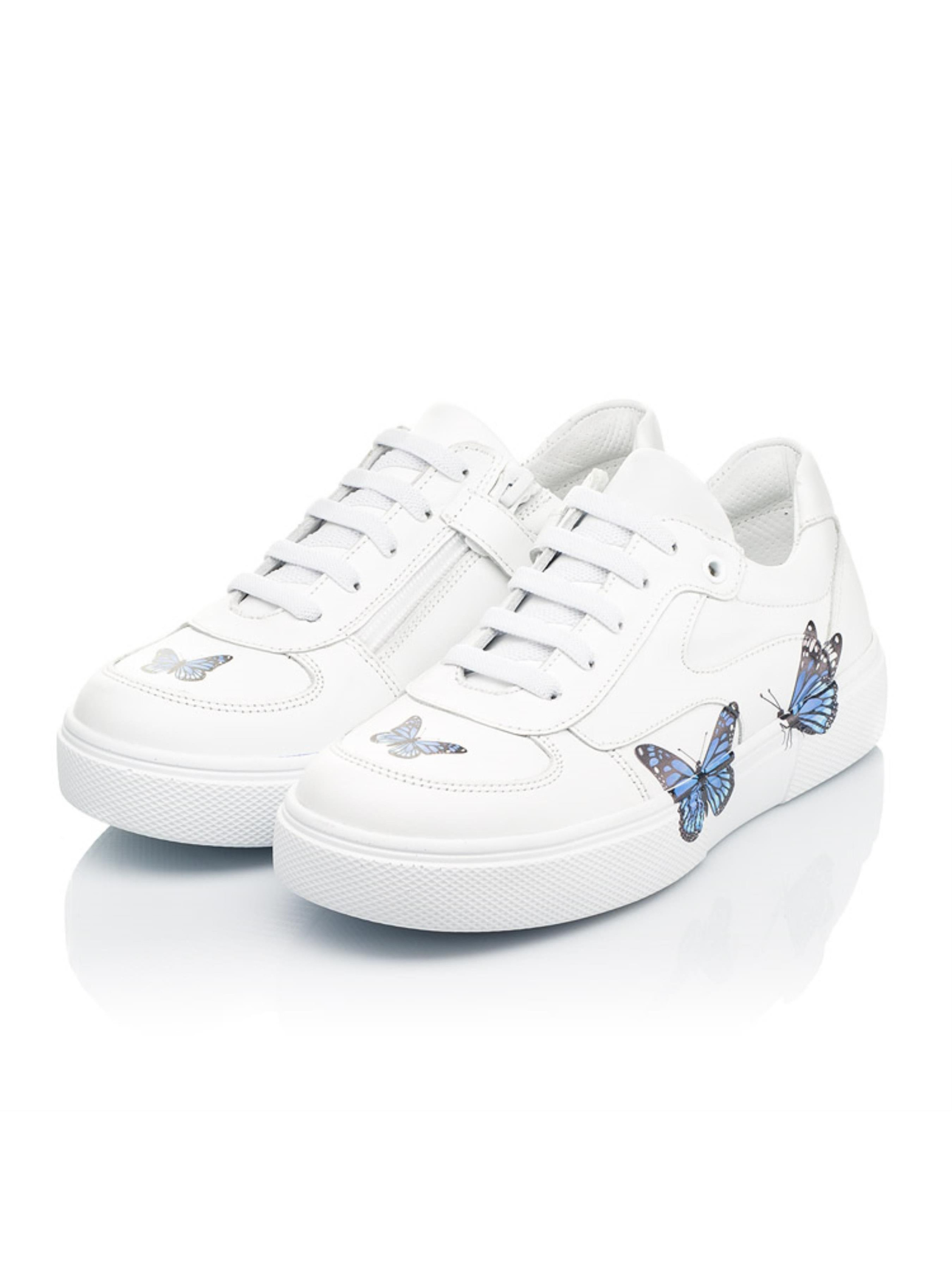 Перед Вами по-справжньому особлива модель кед для дівчинки. Дитячі кеди для дівчинки створені з виключно натуральних матеріалів. За основу для створення пари ми обрали натуральну шкіру вишуканого білого кольору. Матеріал підкладки та устілки - натуральна високоякісна шкіра. Зручність взування гарантує бокова блискавка, яка для кращої фіксації доповнена шнурівкою. Головні комфортні деталі забезпечать надзвичайну легкість та впевненість в кожному кроці. Устілка в кедах анатомічно правильна з подушечкою під зведення стопи, поглинає удари. Підошва в кедах легка, майже невагома. І, звісно, 100% окраса моделі - сині метелики. А Ви пройдете повз таку модель кед? Ми впевнені, що така взуттєва пара з легкістю підкорить не одне дівоче серце.