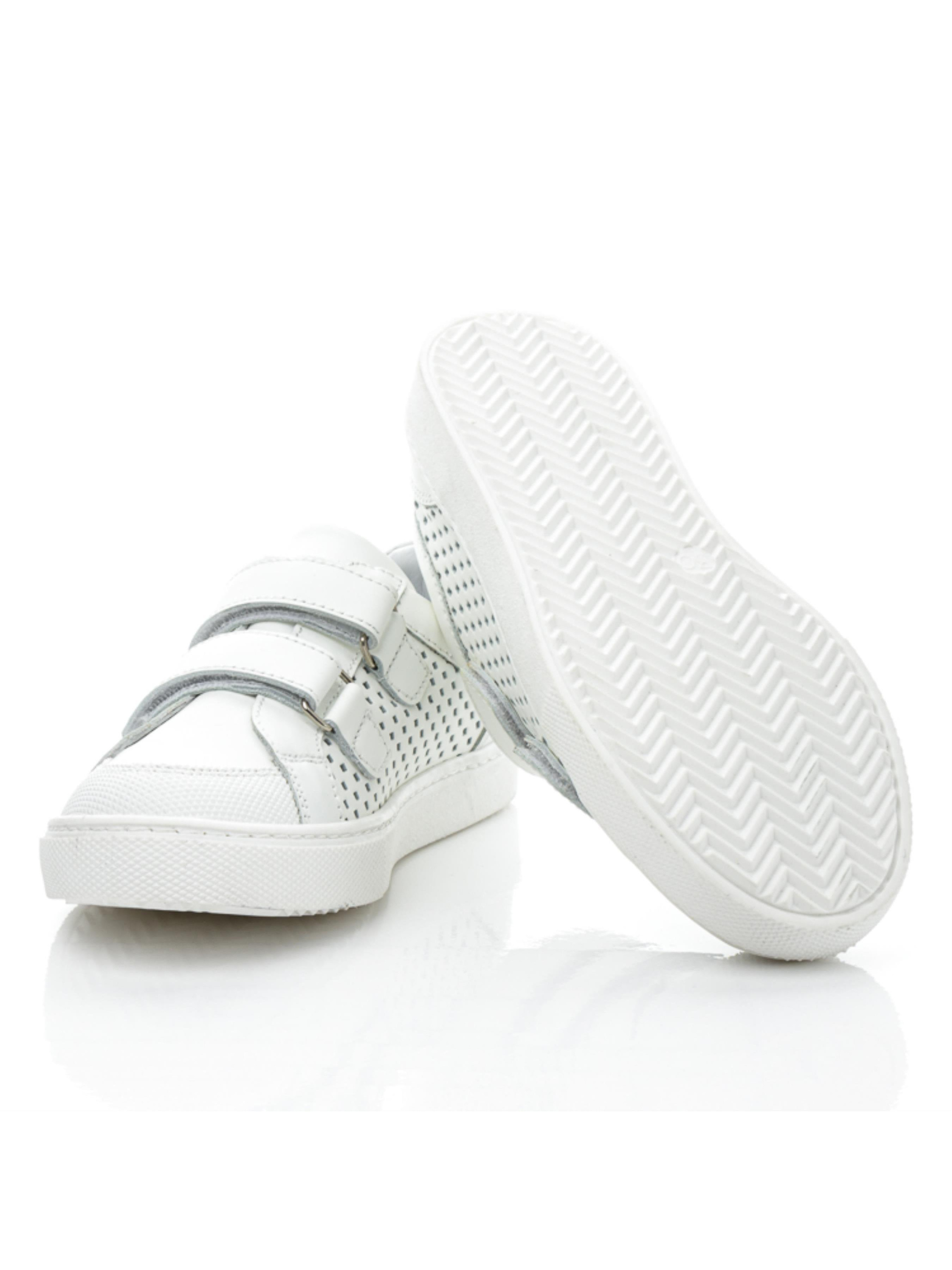 Кеди - стильна та зручна взуттєва пара, яка з легкістю доповнить як повсякденний, шкільний так і святковий образ. Тим паче в такому ніжному виконанні, без зайвих деталей. Дитячі кеди для дівчинки пошиті з натуральної шкіри білого кольору, підкладка та устілка в моделі шкіряна. Носочок в кедах захищено вставкою "неубивайкою". Кеди для дівчинки мають гнучку підошву (по периметру прошита), жорсткий задник та устілку, яка поглинає удари. Дитячі кеди оздоблено наскрізною перфорацією, яка забезпечить комфорт ніжці не лише в весняно-осінній період, а й доповнить образ в прохолодний літній вечір. Зручні та надійні застібки-липучки значно полегшать та прискорять процес взування.