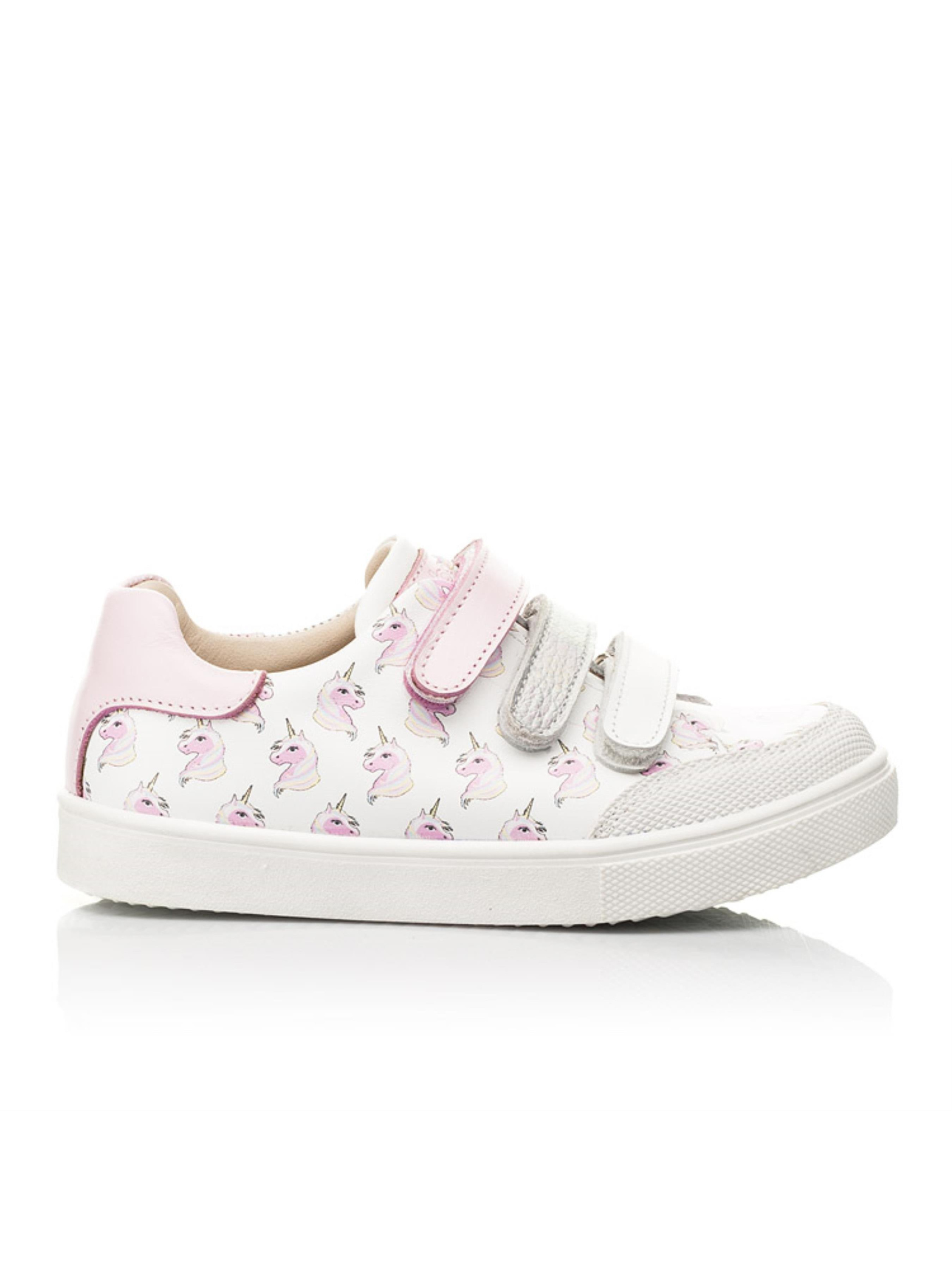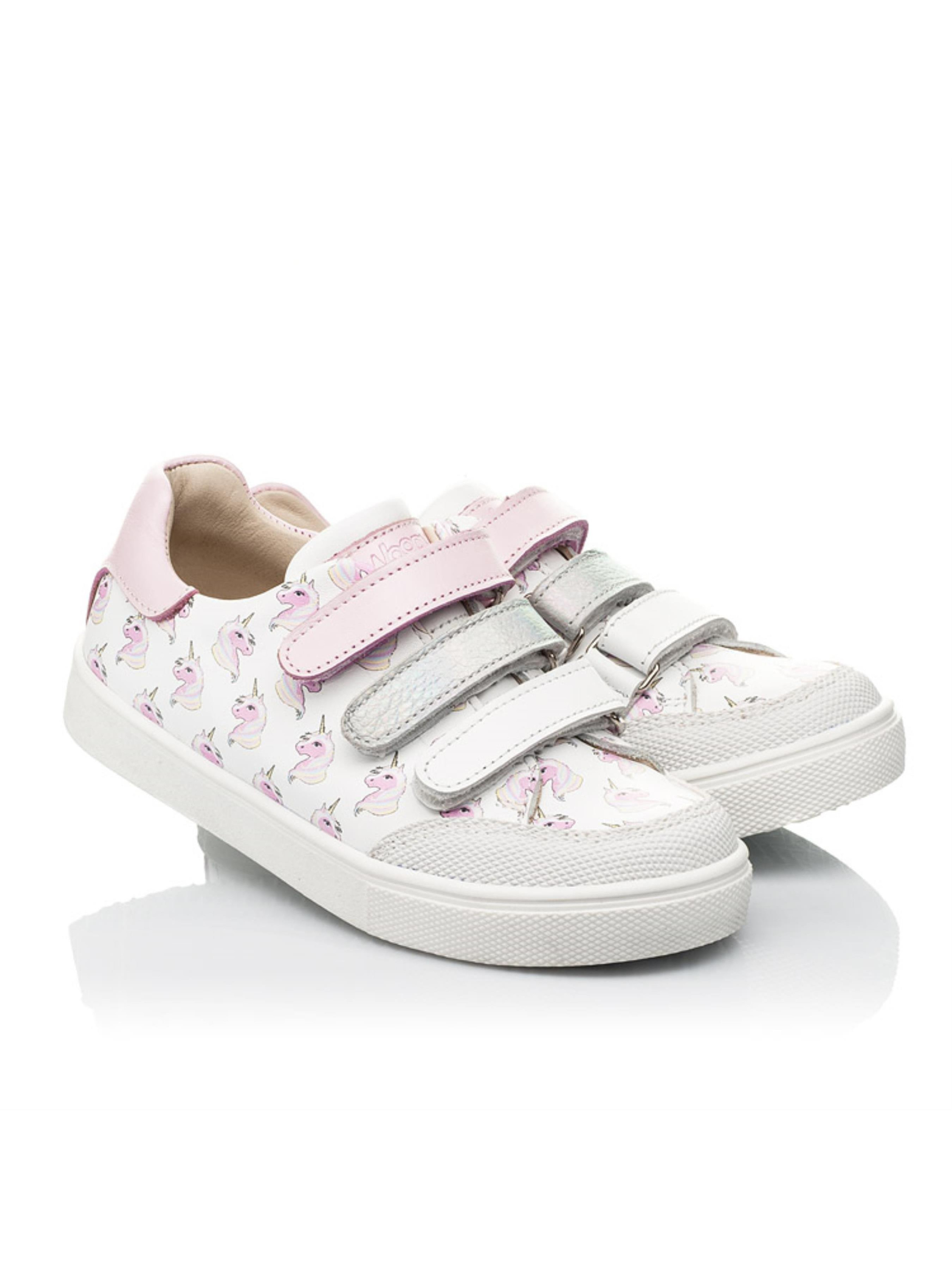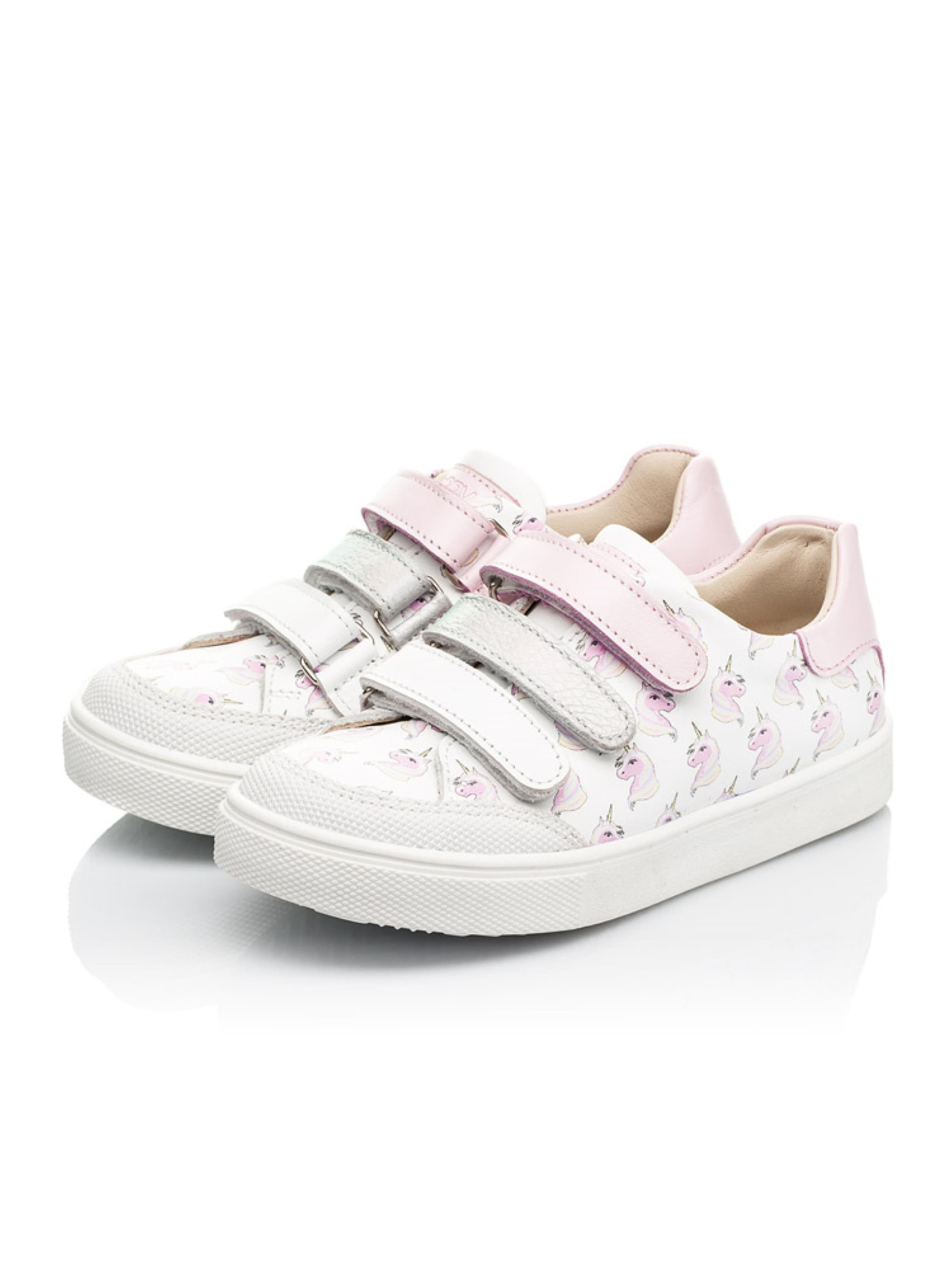 Ми не могли не повторити таку милу модель кед для дівчинки, але вже дещо в іншому виконанні. Дитячі кеди для дівчинки пошиті з натуральної шкіри білого кольору. Таку модель серед інших виділяє оригінальний дизайн з єдинорогами та контрастна вставка з натуральної шкіри рожевого кольору в п'яточній зоні. Матеріал підкладки та устілки - натуральна шкіра. Зручність взування забезпечать застібки липучки, які наші креативні дизайнери вирішили створити з натуральної шкіри різного кольору з переливом. Окрім стильного зовнішнього вигляду кеди вразять і комфортом, адже мають жорсткий задник та анатомічно правильну устілку з подушечкою під зведення стопи. Носова частина захищена спеціальною вставкою "неубивайкою"