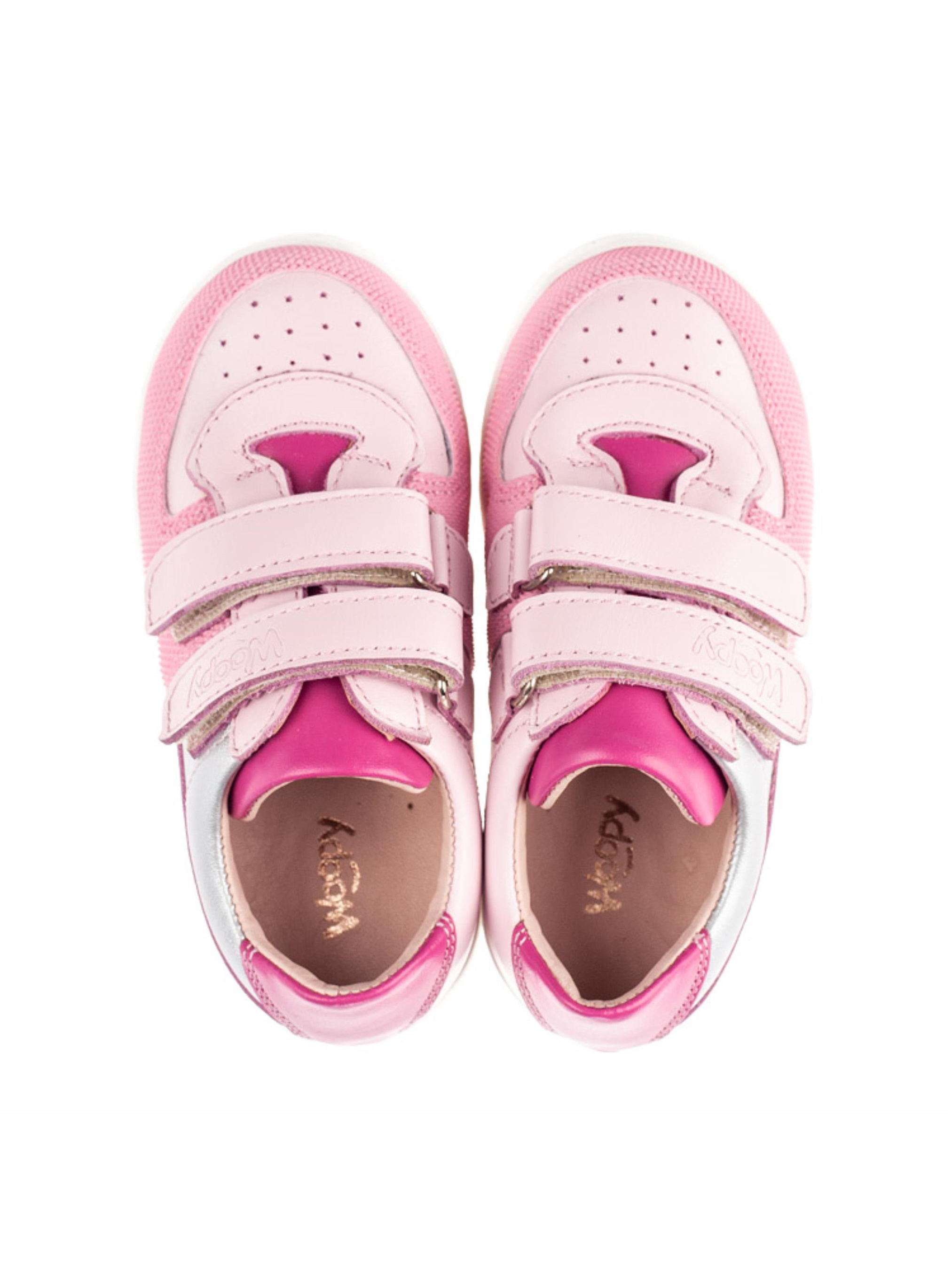 Мега милі та стильні кеди для дівчинки пошиті в неймовірній кольоровій гамі. Дитячі кеди для дівчинки пошиті з натуральної шкіри ніжного рожевого кольору, доповнені вставками з натуральної шкіри срібного та насиченого рожевого кольору. Матеріал підкладки та устілки - натуральна шкіра. В якості застібки в такій взуттєвій парі використовуються дві надійні липучки. Аби дитячим ніжкам було зручно кеди мають жорсткий задник, анатомічно правильну устілку з подушечкою під зведення стопи. Носова частина дитячого взуття захищена вставкою з сучасного штучного матеріалу "неубивайкою". Підошва в кедах по периметру прошита. Для створення фактури та невагомості на носочку застосовано перфорацію у вигляді декору.