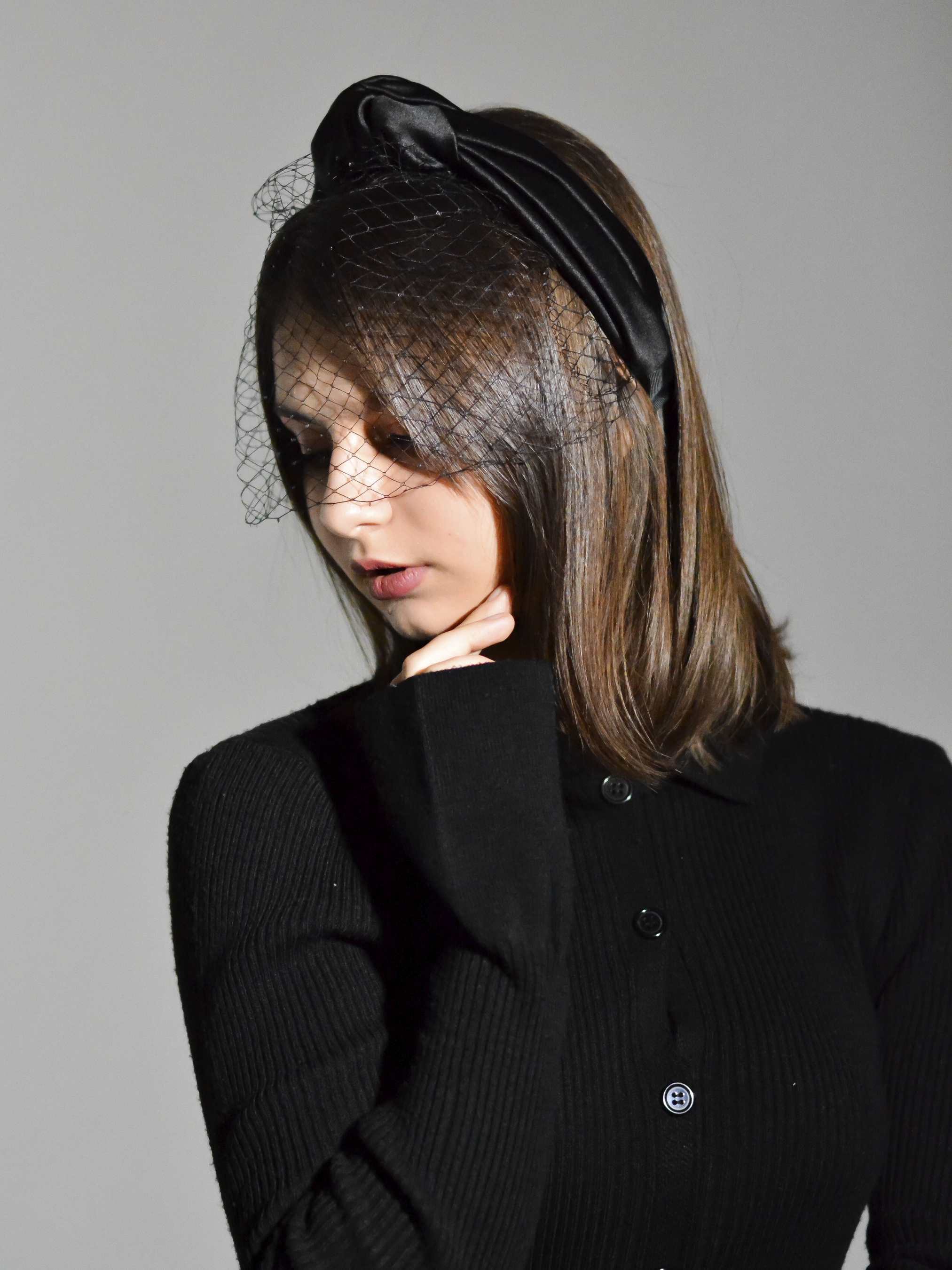 Обруч для волосся MyScarf чорний one size атлас з вузлом вгорі та сіткою MyScarf модель mp19616113