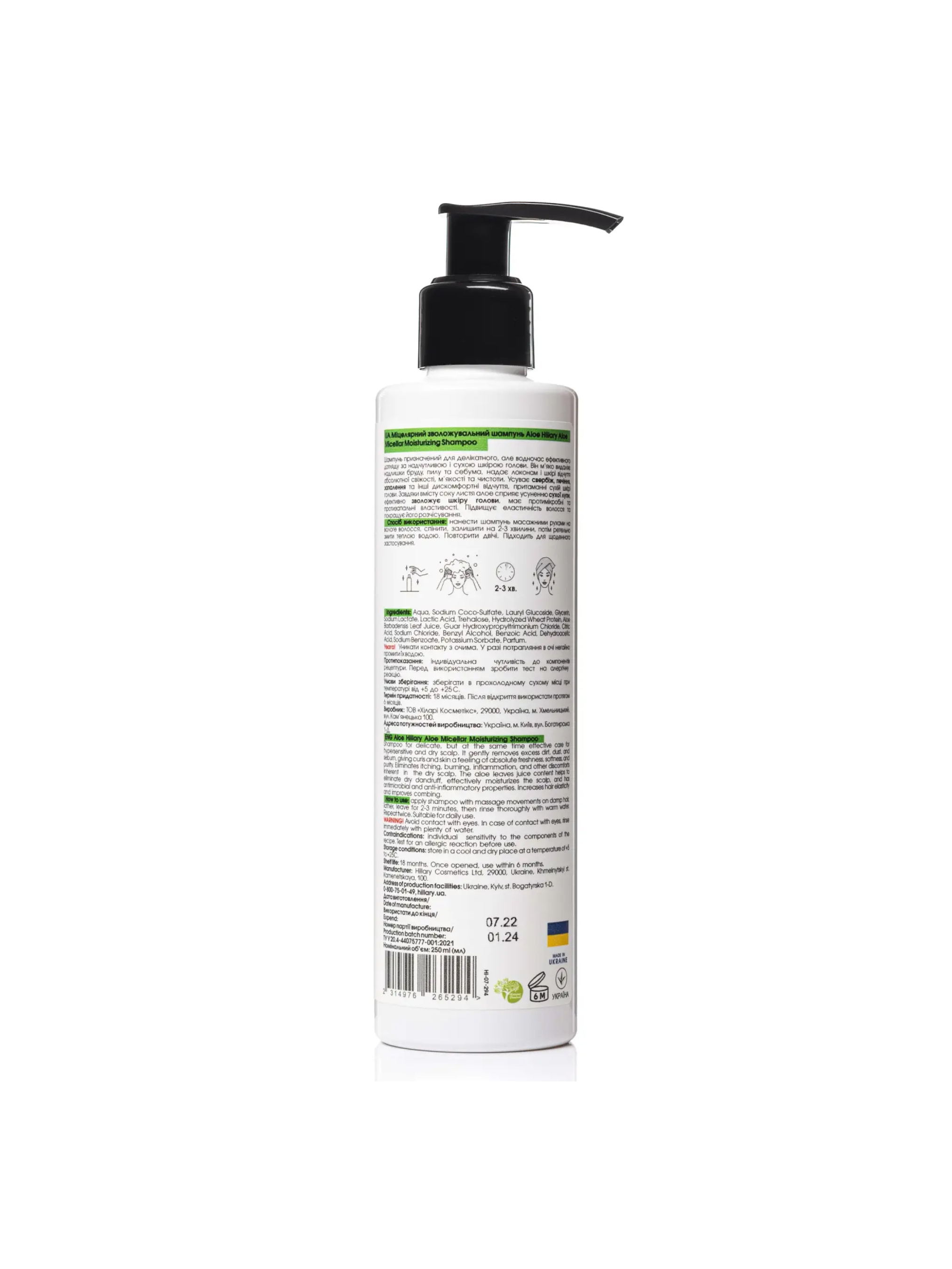 Міцелярний зволожувальний шампунь Hillary модель HI-07-294
