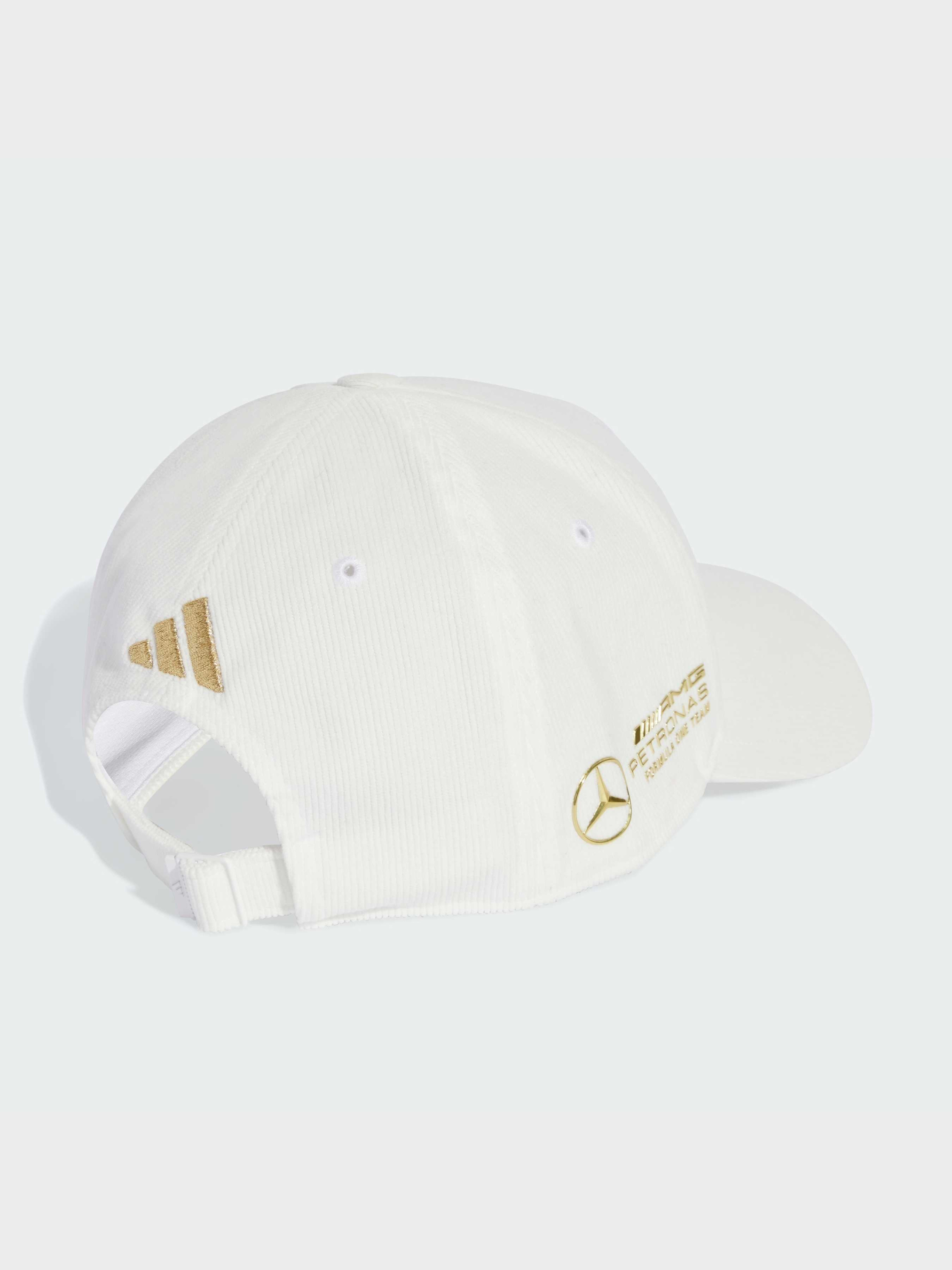 Характеристики 100% перероблений поліестер Брендинг Mercedes - AMG Petronas Formula One Team Універсальний розмір Опис Ця вельветова кепка від adidas Motorsport створена для справжніх фанатів перегонів, які цінують стиль. Класичний силует із плоским козирком і регульованим ремінцем ззаду роблять її ідеальним аксесуаром для повсякденного образу. Логотип Mercedes-AMG Petronas Formula One Team збоку та емблема Mercedes спереду додають автентичності та підкреслюють твою відданість команді.