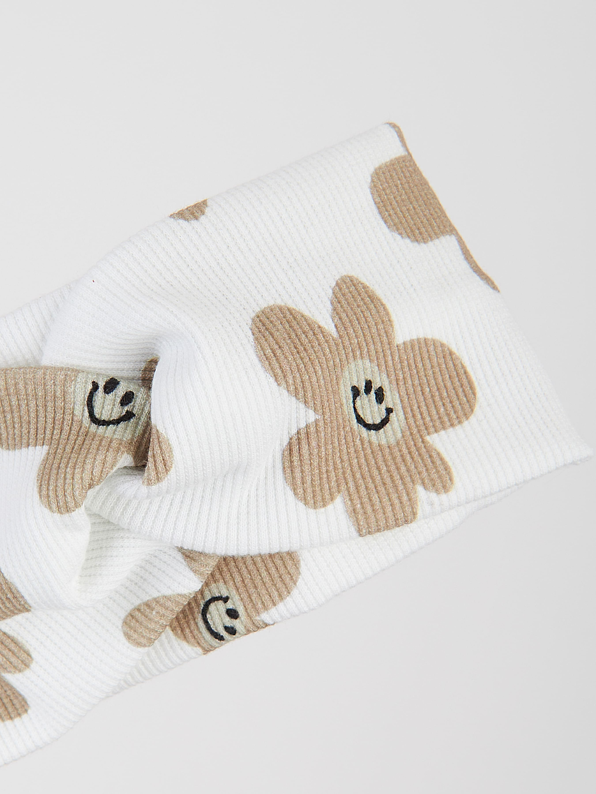 Молочна демісезонна пов'язка з квітковим принтом — ідеальний демісезонний аксесуар для маленької модниці. Виготовлена з м’якої та еластичної бавовни з додаванням еластану, вона зручно сідає по голові й не тисне. Широкий крій надійно прикриває вушка, захищаючи їх від вітру, тому така пов’язка стане чудовим вибором для прохолодних весняних або осінніх прогулянок. Стильний квітковий принт додає образу ніжності, а нейтральний молочний колір легко поєднується з будь-яким одягом. Пов'язка не лише тепла, а й чудово доповнює гардероб дівчинки як функціональний аксесуар. Ми використовуємо лише гіпоалергенні тканини, які мають сертифікат OEKO TEX Standard 100®. Матеріал — дихаючий, приємний до тіла та повністю безпечний для дітей. Обирайте якість, комфорт і красу — подаруйте вашій малечі стиль і затишок у кожній прогулянці. Сертифікат OEKO TEX Standard 100; Вид тканини: трикотажная резинка; Склад: 95% бавовна,5% еластан Колір основного полотна: білий; Принт: Бежеві ромашки