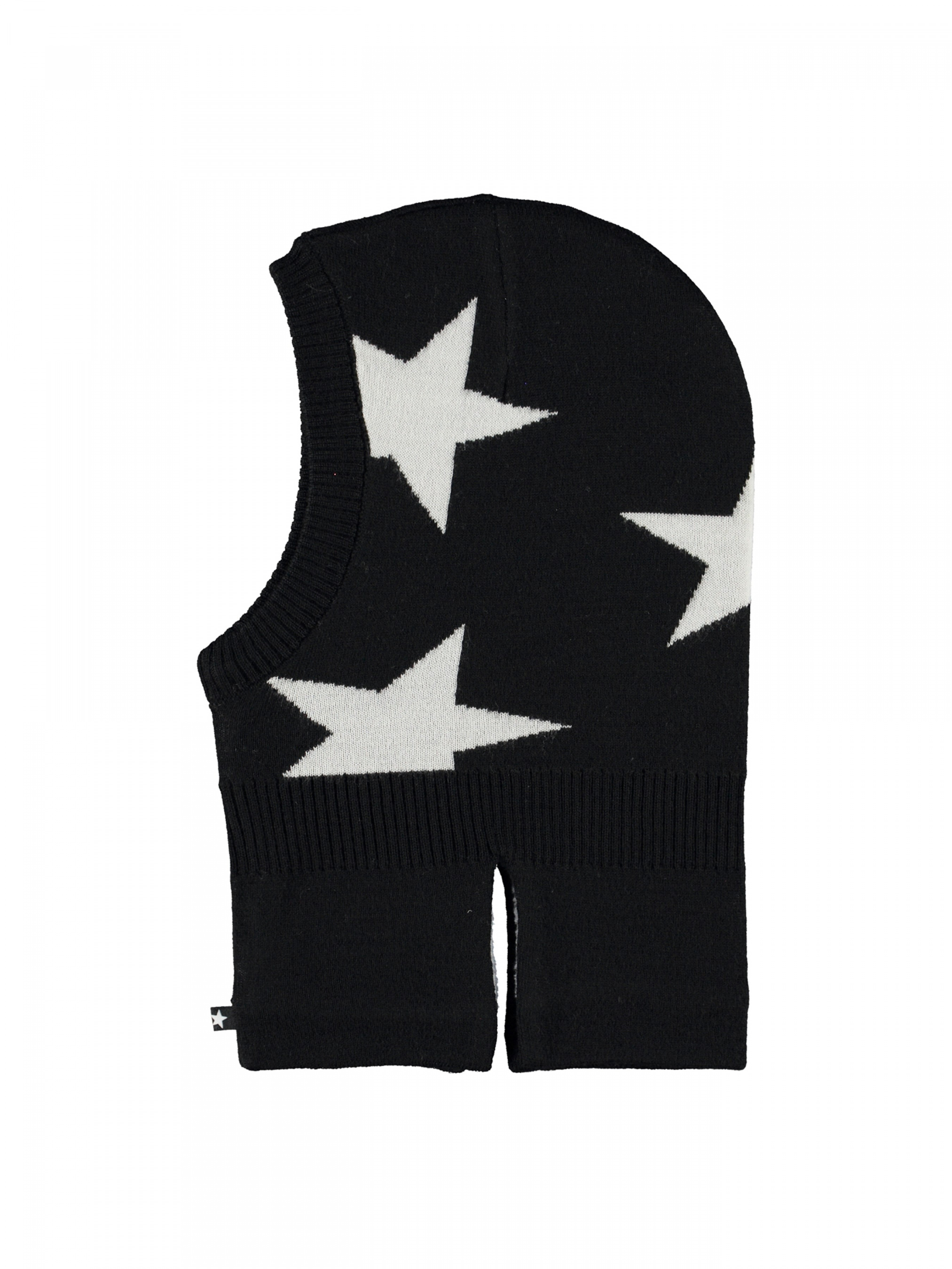 Molo – "Кращий міжнародний дитячий модний бренд" за версією журналу "Baby&MeStyle" в 2014 р, переможець премії "Earnie Award" від Earnshaw's у номінації "Кращий бренд одягу для хлопчиків" в 2019 р., володар премії "Best in Test" у 2018 р. і тричі "Кращий модний дитячий бренд Данії" за версією Copenhagen Fashion Week.Шапка-балаклава Molo "Snow Black" з флісовій підкладкою.Особливості: матеріал – шерсть і акрил; багатобарвна в'язка із зображенням великих зірок. Шапка щільно прилягає до грудей і плечей, забезпечуючи тепло і відчуття комфорту для дитини в холодних дні.