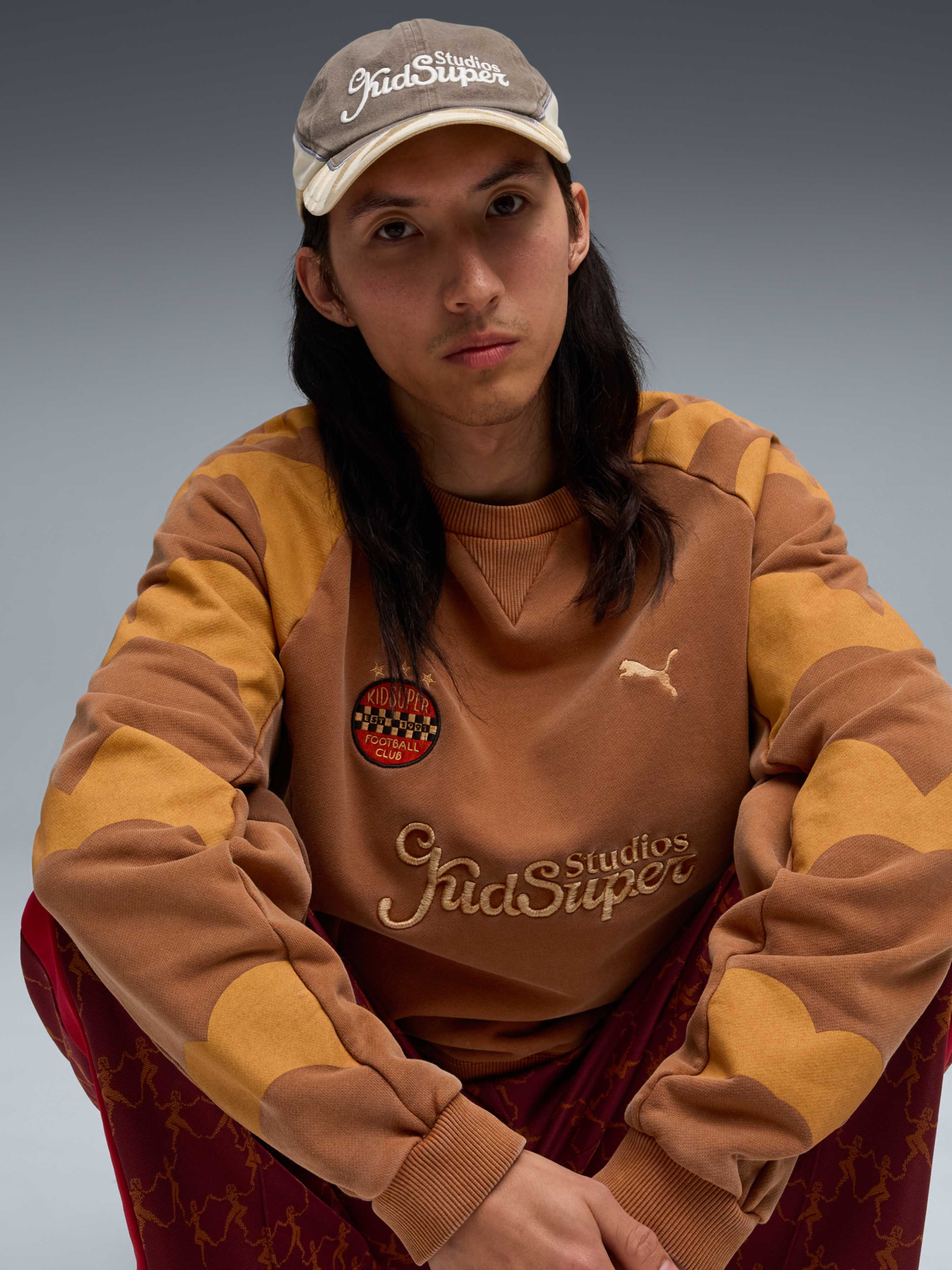 Цього сезону колаборація PUMA x KIDSUPER полягає у поєднанні мистецтва та спорту. Ця колекція містить еклектичне поєднання ретро-спортивних силуетів і сучасної художньої графіки. Зверни увагу на вінтажні воротарські футболки, пуховик із тонкою строчкою та футболки, прикрашені акварельними принтами.