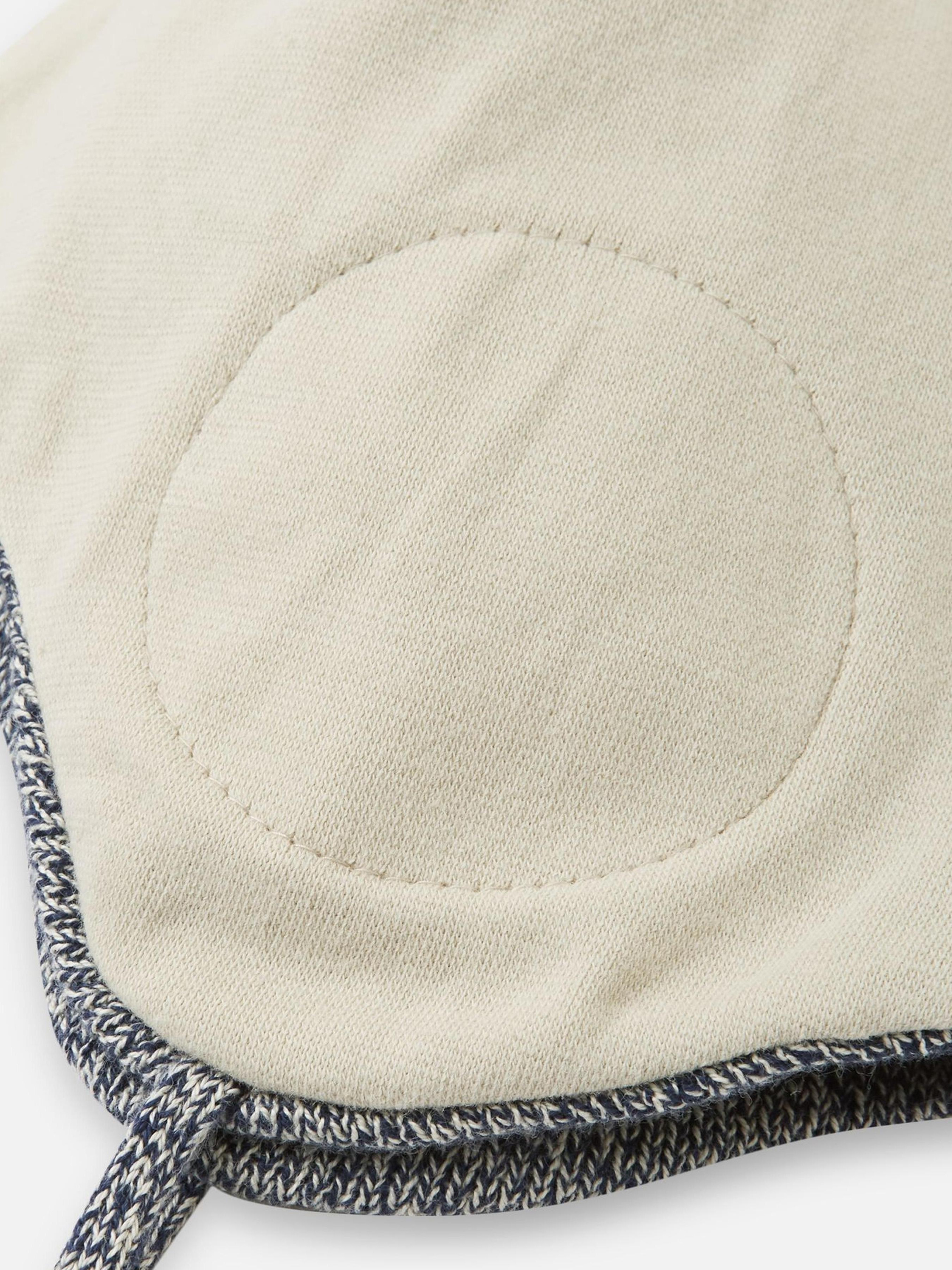 Склад: Organic cotton yarn GOTS: 100% органічна бавовна Матеріал: Organic cotton yarn GOTS Вітронепроникні вставки в зоні вух Органічна бавовна Вітрозахисні вставки в зоні вух|Зав'язки в усіх розмірах|Суцільна підкладка: зручний бавовняний трикотаж з еластаном|Органічний продукт, сертифікований Control Union CU1060618 Догляд : Прати окремо, вивернувши навиворіт. Не використовувати кондиціонер для білизни. Перед сушінням надати початкову форму. Можливе усадження 5%. Тримайте вушка вашого малюка в теплі та комфорті з дитячою шапочкою Latvat. Ця м'яка бавовняна трикотажна шапочка має вітрозахисні вставки в зоні вух для додаткового захисту від холодного вітру. Вона має шнурки-зав'язки у всіх розмірах, щоб забезпечити щільне прилягання. Крім того, її суцільна підкладка із бавовняного трикотажу з еластаном забезпечує комфортне носіння, що робить її ідеальним вибором для активних малюків.
