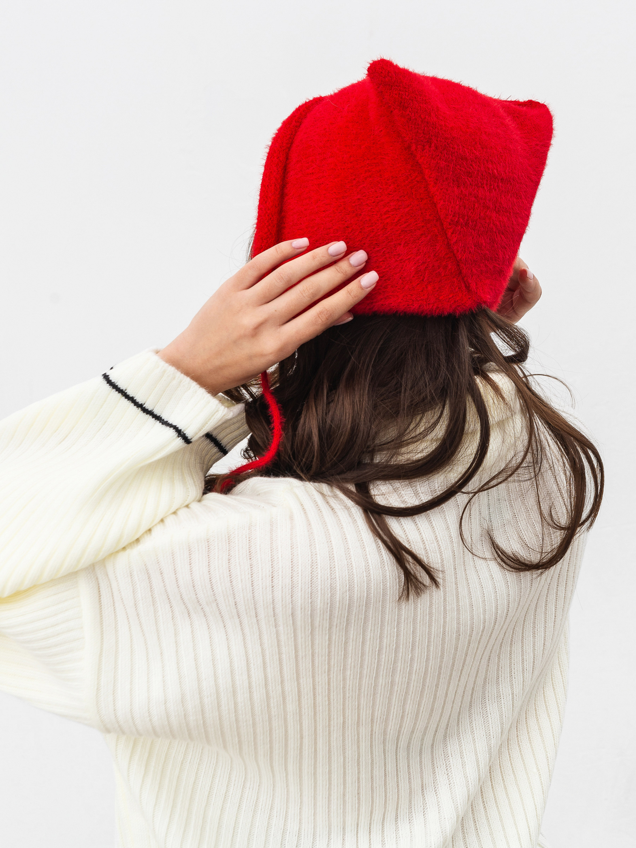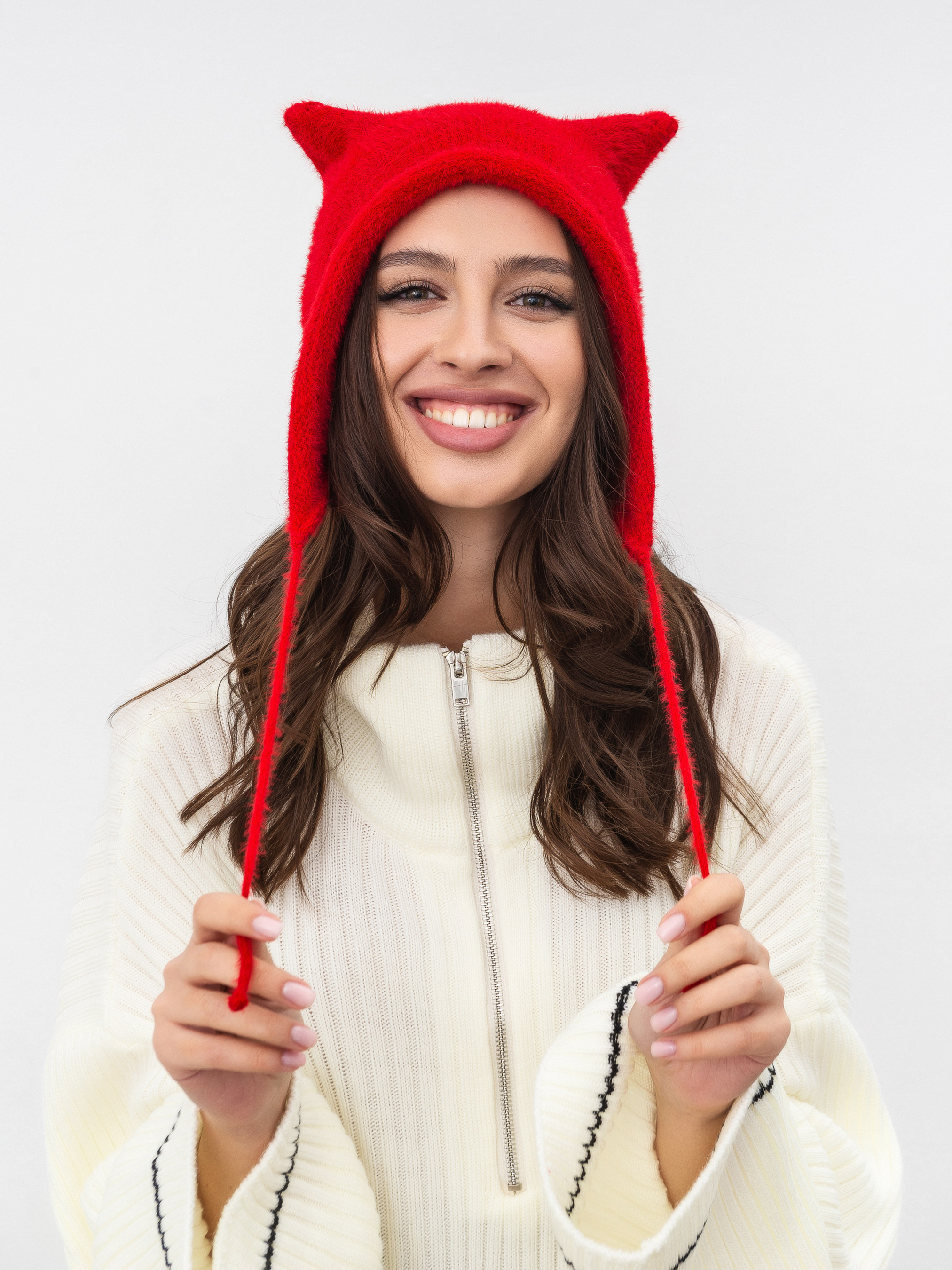 Чепчик на зав'язках з приємної в`язки змішаної ангори. Чепчик має цікавий дизайн у вигляді міні вушок. Цікава річ, щоб зробити акцент в образі. Довжина аксесуару: 24 см Ширина аксесуару: 48 см