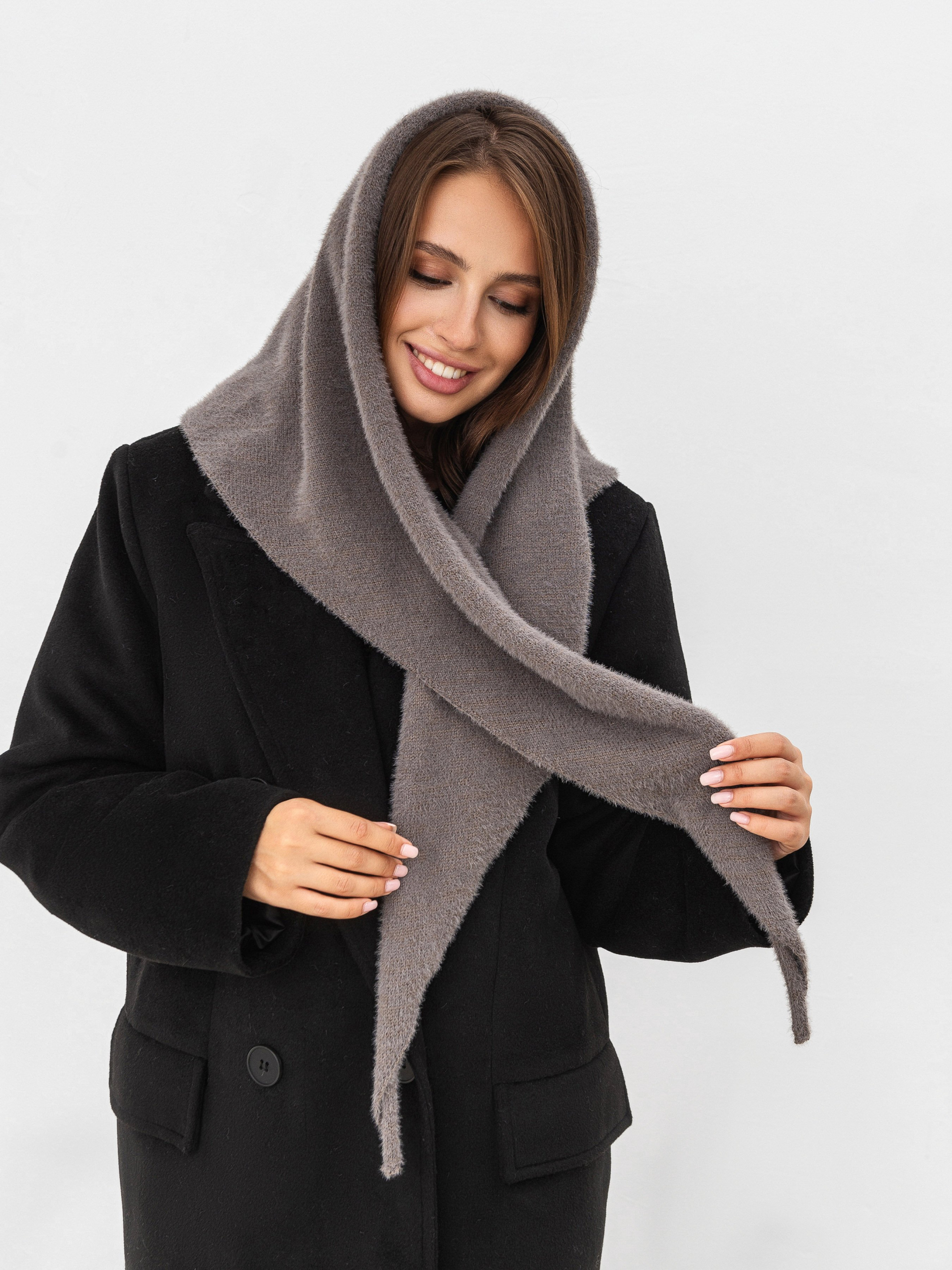 Трендова косинка на голову для прохолодної погоди. Косинка виготовлена з приємної на дотик в язки з нитки ангори. Вона максимально приємно відчувається на тілі, не кусається та не подразнює шкіру. Також косинка легка, тому не відчуватиметься важко при носінні. Її можна поєднувати в повсякденних образах, комбінуючи зі светром у колір або шкарпетками, роблячи акцент на них. 50% ангора, 50% поліестер. Довжина аксесуару: 151 см Ширина аксесуару: 54 см