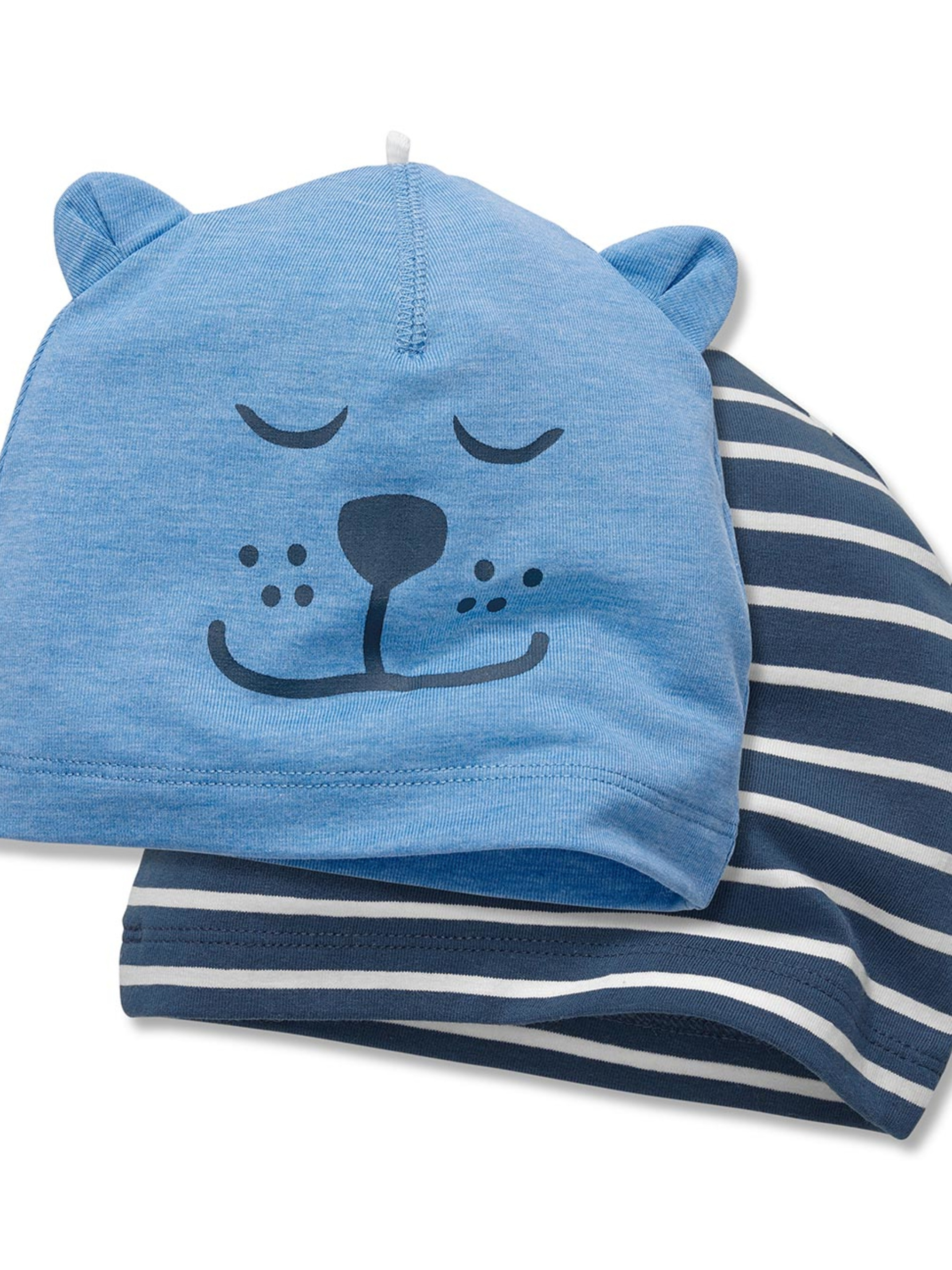 Комплект шапок. Ці шапки симпатичні та веселі, бавовна-стрейч – якість, що тримають маленькі головки в затишку і теплі. Вони виготовлені з високим вмістом GOTS сертифікованої органічної бавовни і еластану, а також мають ідеальну посадку та високий рівень комфорту. Склад: 95% бавовна (органічна), 5% еластан. Розмір 16: Напівобхват голови: 16 см, Висота: 12 см – відмінно тягнеться. Розмір 19.5: Напівобхват голови: 19,5 см, Висота: 13 см – відмінно тягнеться. Виміри можуть мати похибку вимірювання ± 1/2 см. Шановні покупці! Одяг бренду TCM Tchibo практично весь без паперових етикеток, за рідкісним винятком, і зі зрізаними частково або повністю внутрішніми бірками і ярликами зі складом тканини та іншими даними.
