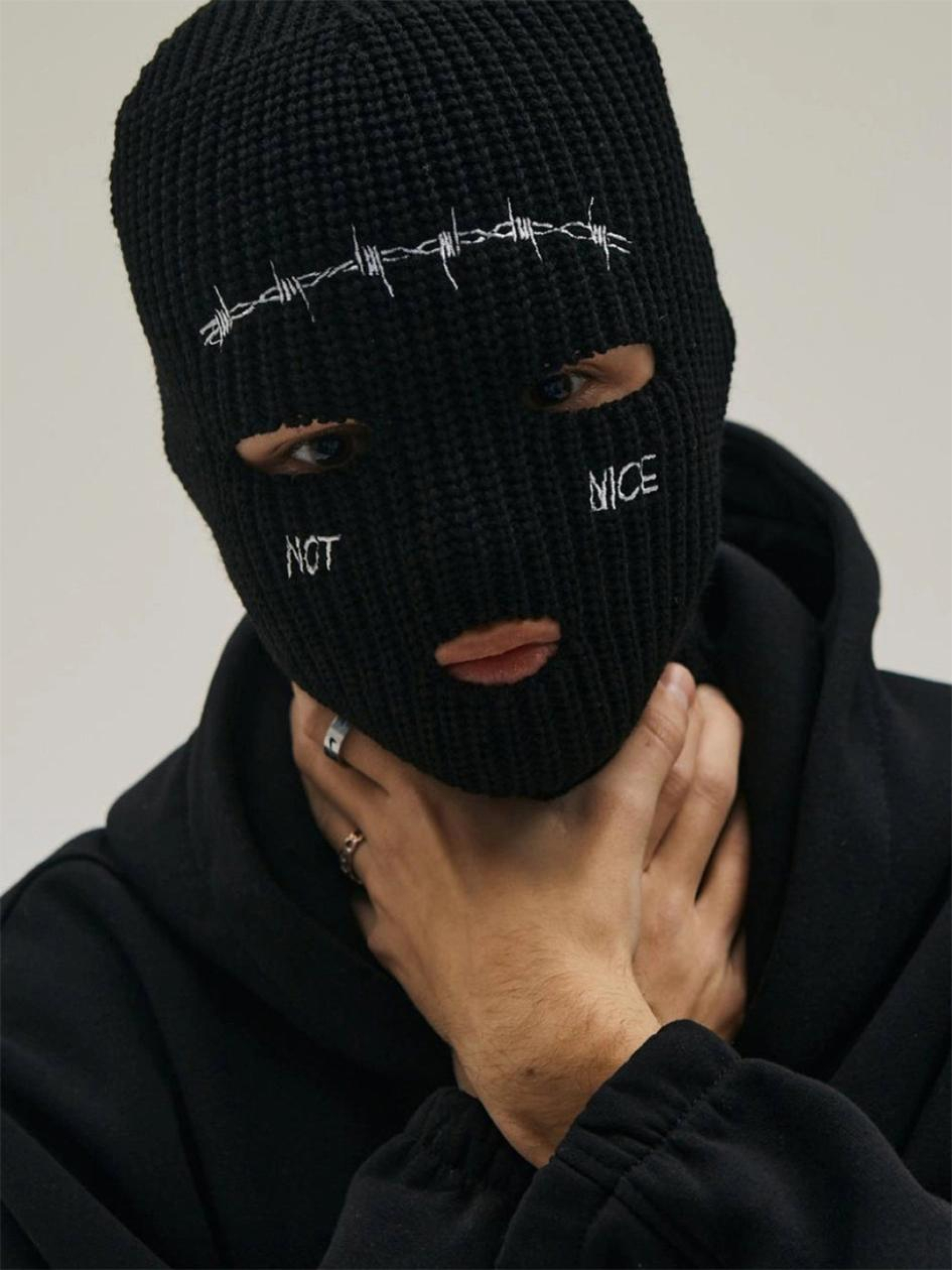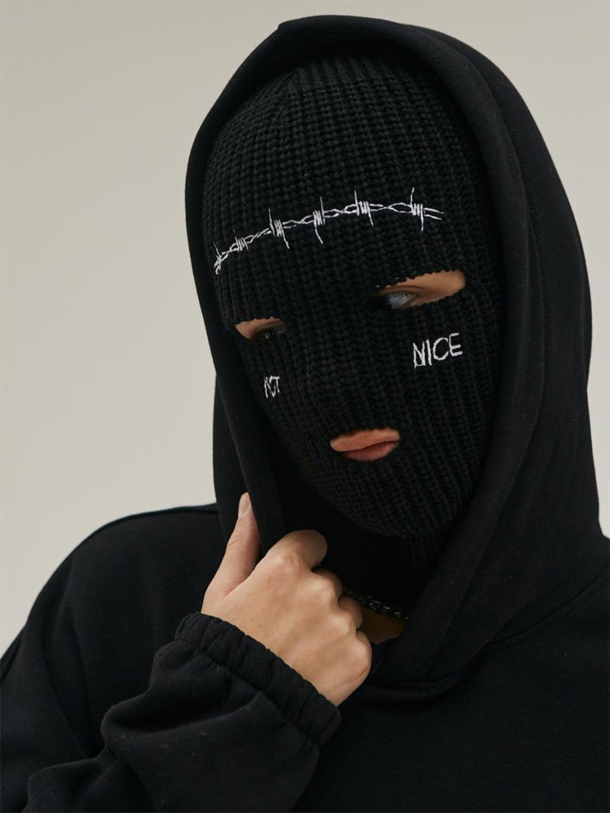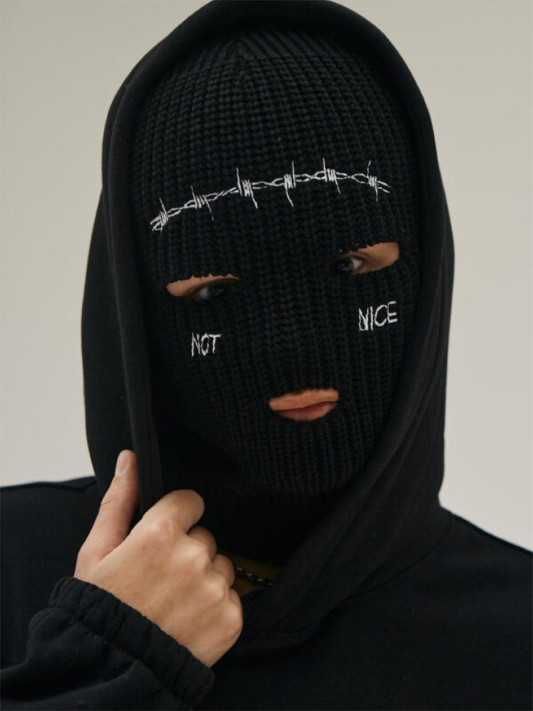 Опис матеріалів та фурнітури: Склад тканини: 50% акрил, 50% бавовна Ключові особливості моделі: Балаклава з еластичної бавовни, добре тянеться. Малюнок - вишивка. Рекомендації по догляду: Ручне прання при макс. 30 ºC Не можна використовувати лужні засоби / відбілювач Не прасувати Хімчистка заборонена Не використовувати сушарку
