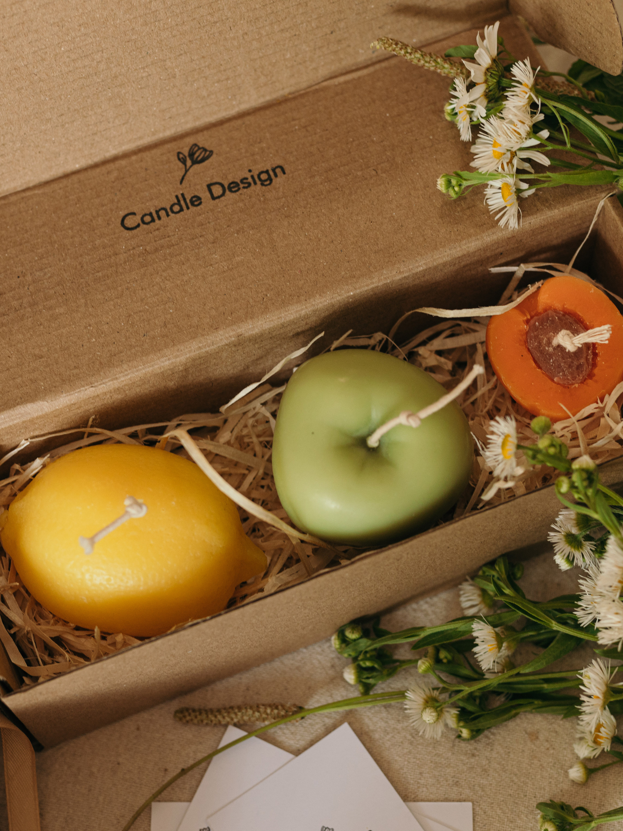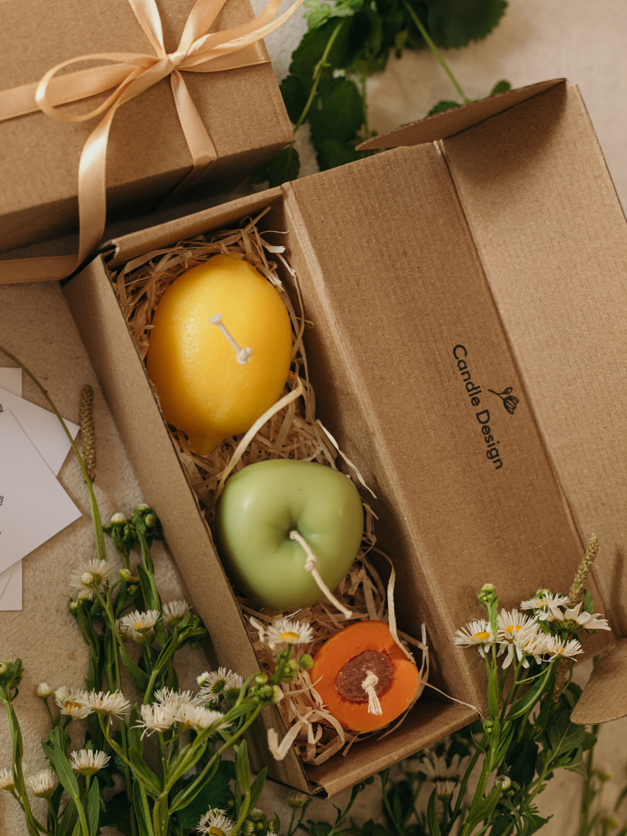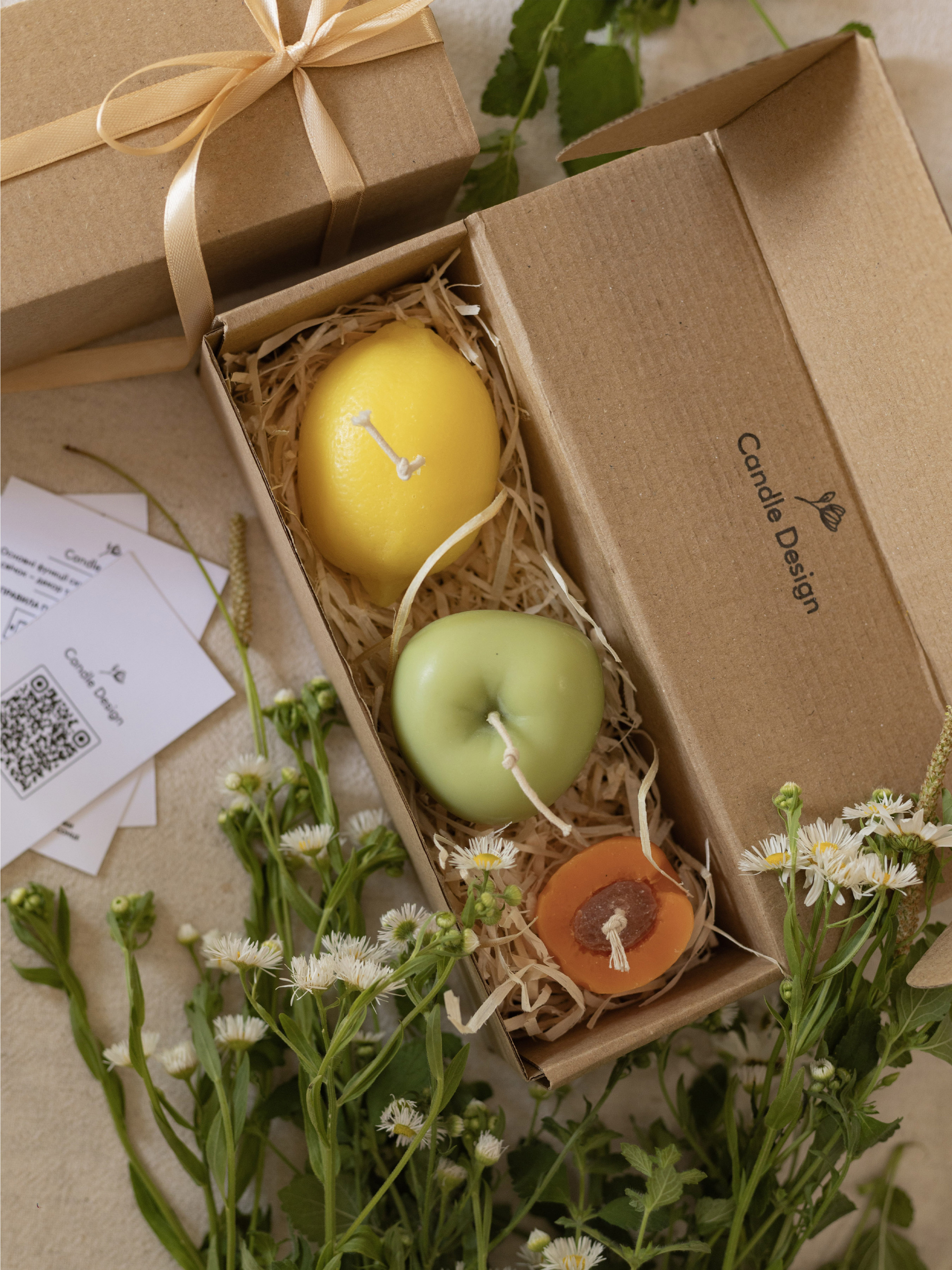 Набір ароматичних свічок "Фруктовий коктейль" з натурального бджолиного воску – подарункова колекція фруктових ароматів Набір ароматичних свічок ручної роботи у формі соковитих фруктів — це гармонійне поєднання натуральності, краси та свіжості. У комплект входять три унікальні свічки з натурального бджолиного воску, які вражають реалістичним дизайном і приголомшливими ароматами. Ідеально підходять як декор для дому, весняний подарунок, ароматерапія чи свічки для фотозони. Цей набір – справжня насолода для поціновувачів екосвічок ручної роботи, які шукають натуральність, вишуканість і функціональність в одному. У наборі: Ароматична свічка "Лимон" – 1 шт Аромат: Лемонграсс і лайм Верхні ноти – лемонграсс, лайм Середні ноти – чорна смородина, шавлія, чебрець Базові ноти – пачулі, світлий мускус Розміри: 55×80×60 мм Вага: 130 г Ароматична свічка "Яблуко" – 1 шт Аромат: Яблуко Макінтош Верхні ноти – зелене листя, груша Середні ноти – яблуко Базові ноти – ваніль, кедр Розміри: висота 60 мм, діаметр 70 мм Вага: 125 г Ароматична свічка "Абрикос" – 1 шт Аромат: Абрикосовий гай Верхні ноти – груша Середні ноти – жасмин, нектарин, абрикос Базові ноти – ваніль, пачулі, ветивер Розміри: 27×45×40 мм Вага: 25 г Упаковка: Набір постачається в подарунковій коробочці зі стрічкою, що робить його готовим до вручення без додаткового пакування. Матеріали: Віск: 100% натуральний бджолиний віск Ґніт: бавовняний, екологічний Ручна робота, виготовлено в Україні Ідеально підходять для: весняного або літнього декору подарункових наборів ароматизації приміщення фотозон, стилізованих зйомок поціновувачів свічок ручної роботи та натуральних ароматів Правила використання Основні функції скульптурних ароматичних свічок декор та ароматизація простору став свічку на підставку подалі від легкозаймистих речей перед використанням підріж гніт (до 0,5 см) перше запалювання: пали свічку до країв не залишай без нагляду свічку, коли вона горить не підпускай до свічок маленьких дітей та тварин не став свічки на протяг чи сонце "Candle Design" - довершена гармонія природи стилю і аромату.