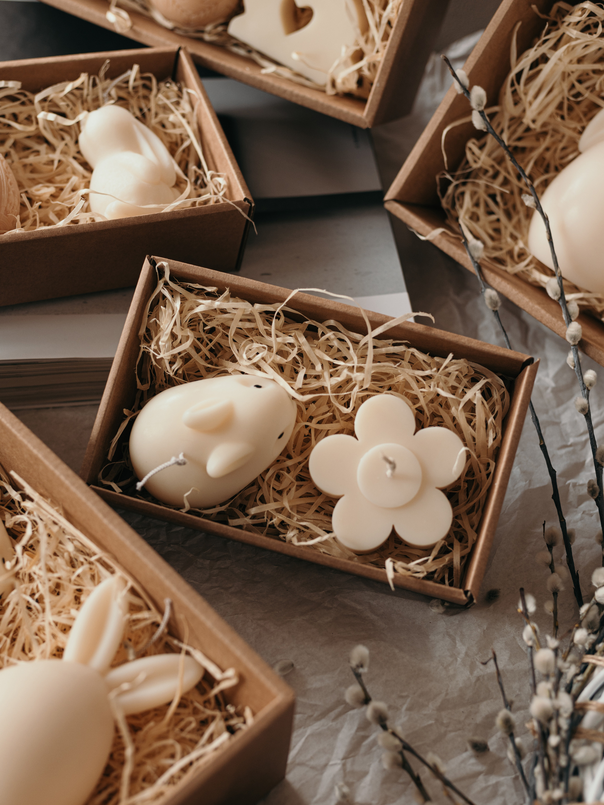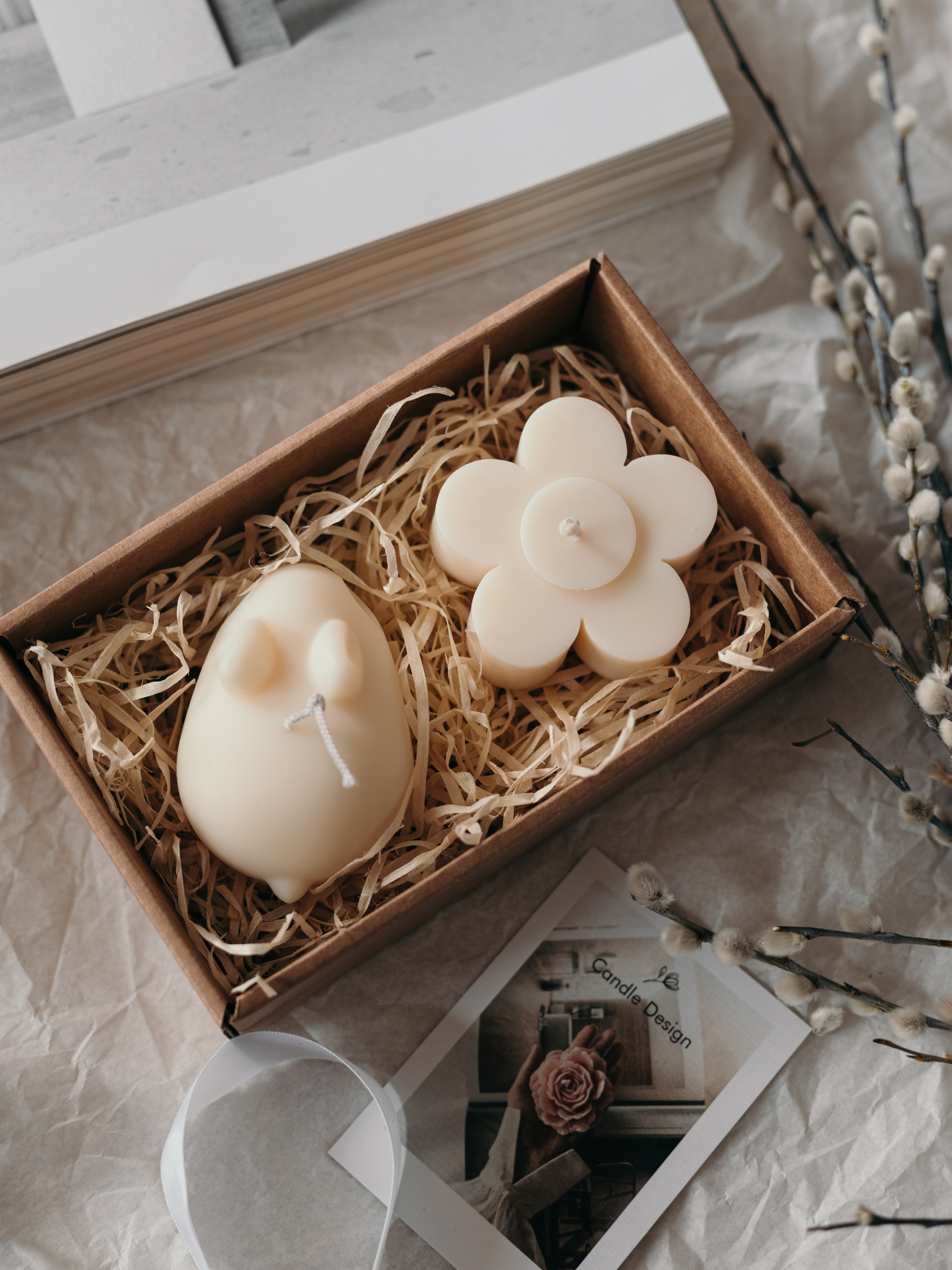 Цей набір поєднує два символи весни – ніжну ромашку та грайливого кролика, наповнюючи простір ароматами природи та домашнього затишку. Свічка "Ромашка мала" Аромат: "Англійський садок" Верхні ноти: конвалія, зелене листя, груша Середні ноти: троянда, жасмин, бузок Базові ноти: ваніль, гвоздика Характеристики: Матеріал: натуральний оливковий віск Ґніт: бавовняний Висота: 40 мм Діаметр: 90 мм Вага: 90 г Свічка "Кролик" Аромат: "Banana Bread" (Банановий хліб) Верхні ноти: банан, горіх, лимон Середні ноти: мускат, цукор Базові ноти: тонка, масло, ваніль Характеристики: Матеріал: натуральний оливковий віск Ґніт: бавовняний Висота: 70 мм Довжина: 120 мм Вага: 95 г Подарункове пакування: набір у стильній коробці зі святковою стрічкою. Набір "Весняна ніжність" стане чудовим подарунком для поціновувачів витончених ароматів, весняного тепла та природної краси! Правила використання Основні функції скульптурних ароматичних свічок декор та ароматизація простору став свічку на підставку подалі від легкозаймистих речей перед використанням підріж гніт (до 0,5 см) перше запалювання: пали свічку до країв не залишай без нагляду свічку, коли вона горить не підпускай до свічок маленьких дітей та тварин не став свічки на протяг чи сонце "Candle Design" - довершена гармонія природи стилю і аромату.