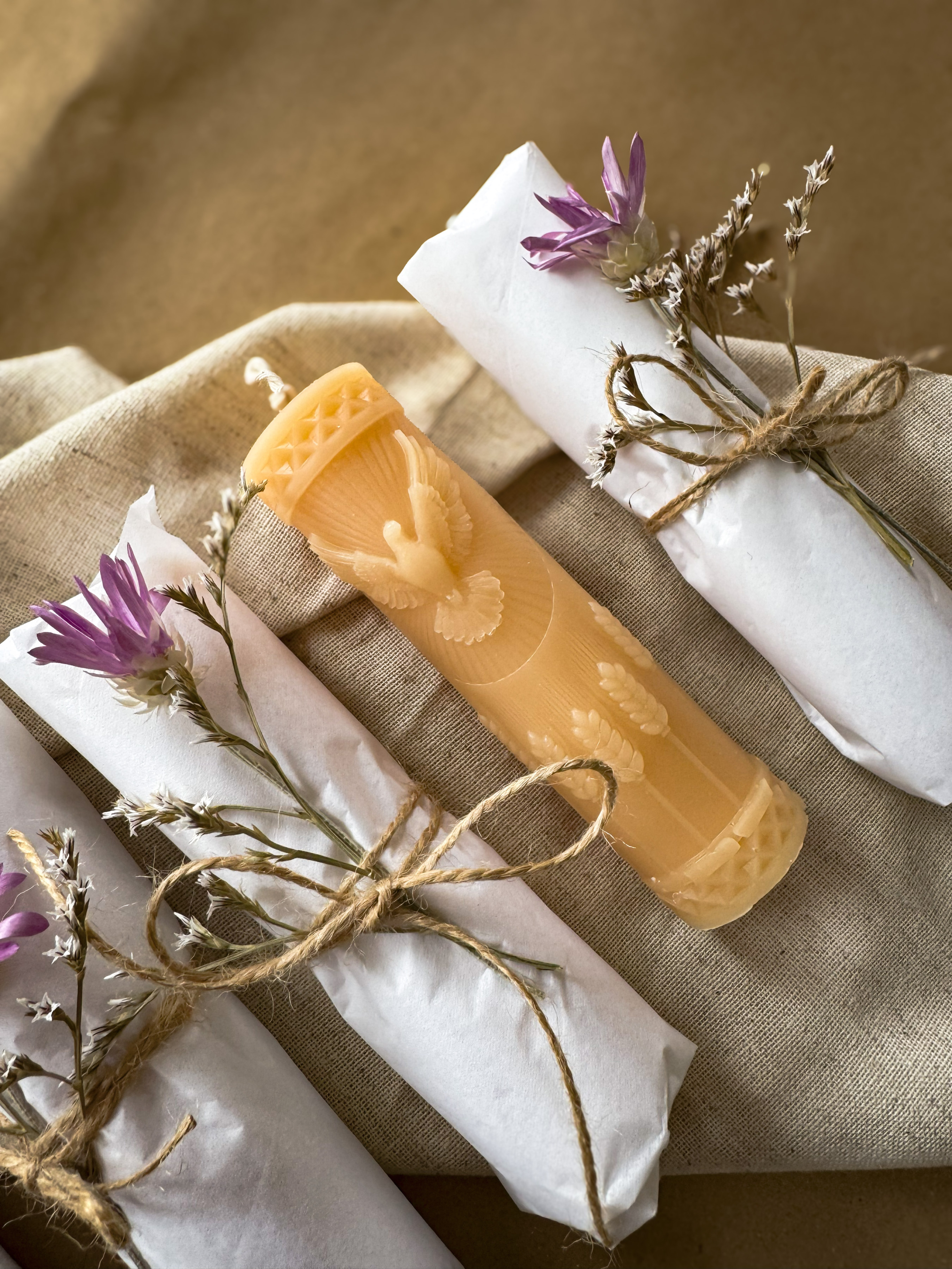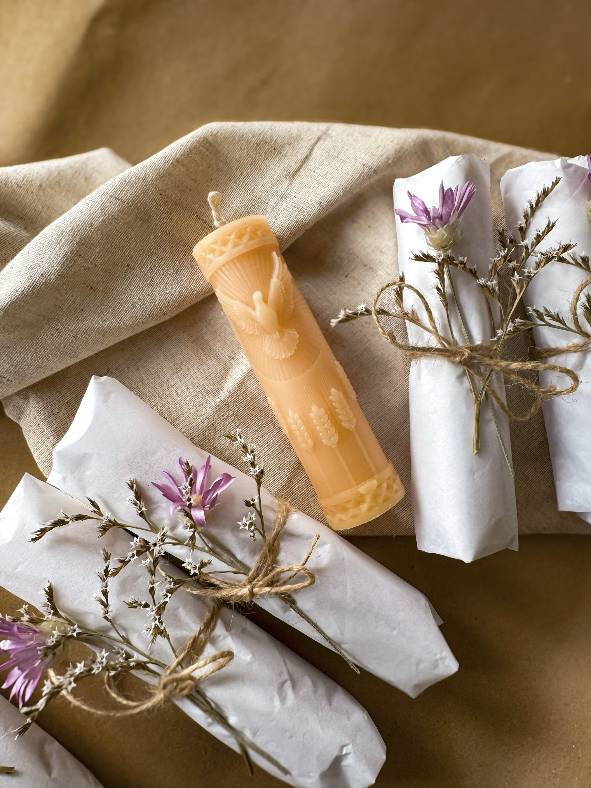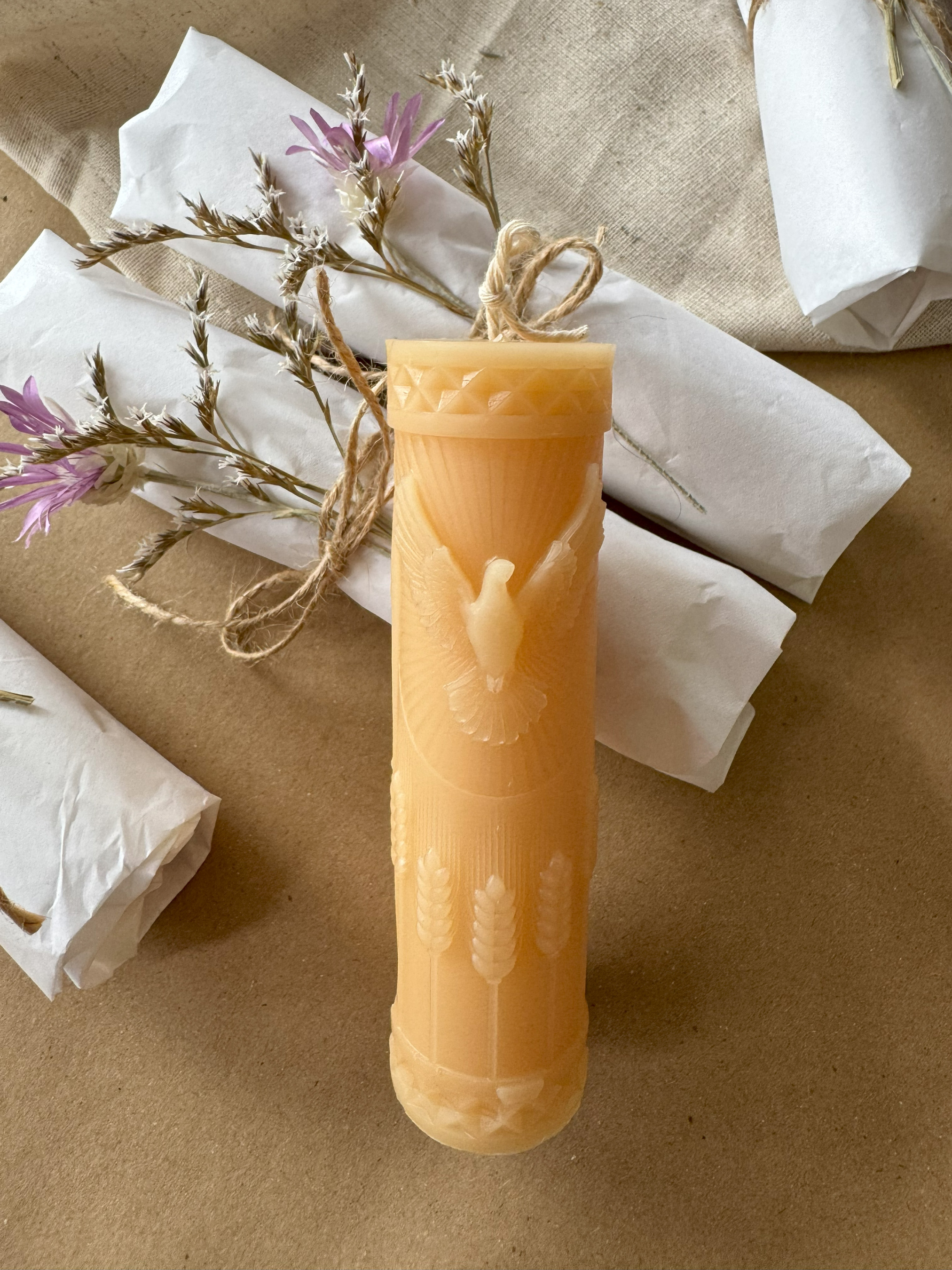 Великодня ароматична свічка "Циліндр з пташкою", аромат - Секвої та мох, з натурального бджолиного воску Candle Design модель 110.2024
